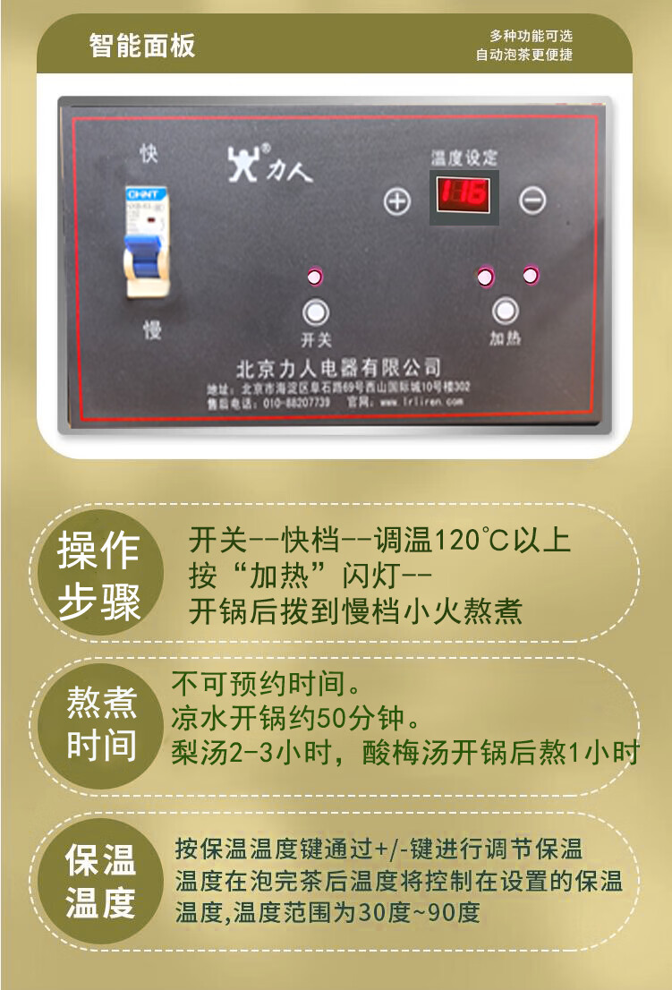力人小吊梨汤机商用酸梅汤机饮料机火锅店茶饮机烤梨店专用热饮机中药花茶炖煮机 20L(37*37*65cm高2000瓦) 37*37*65