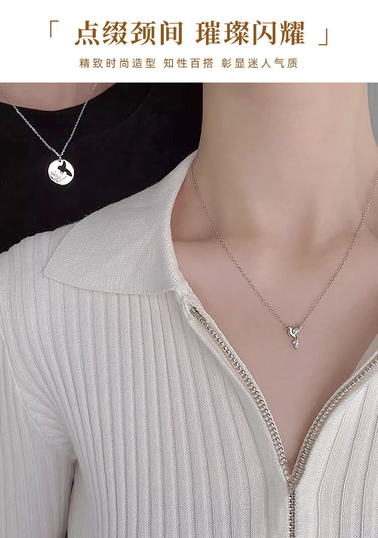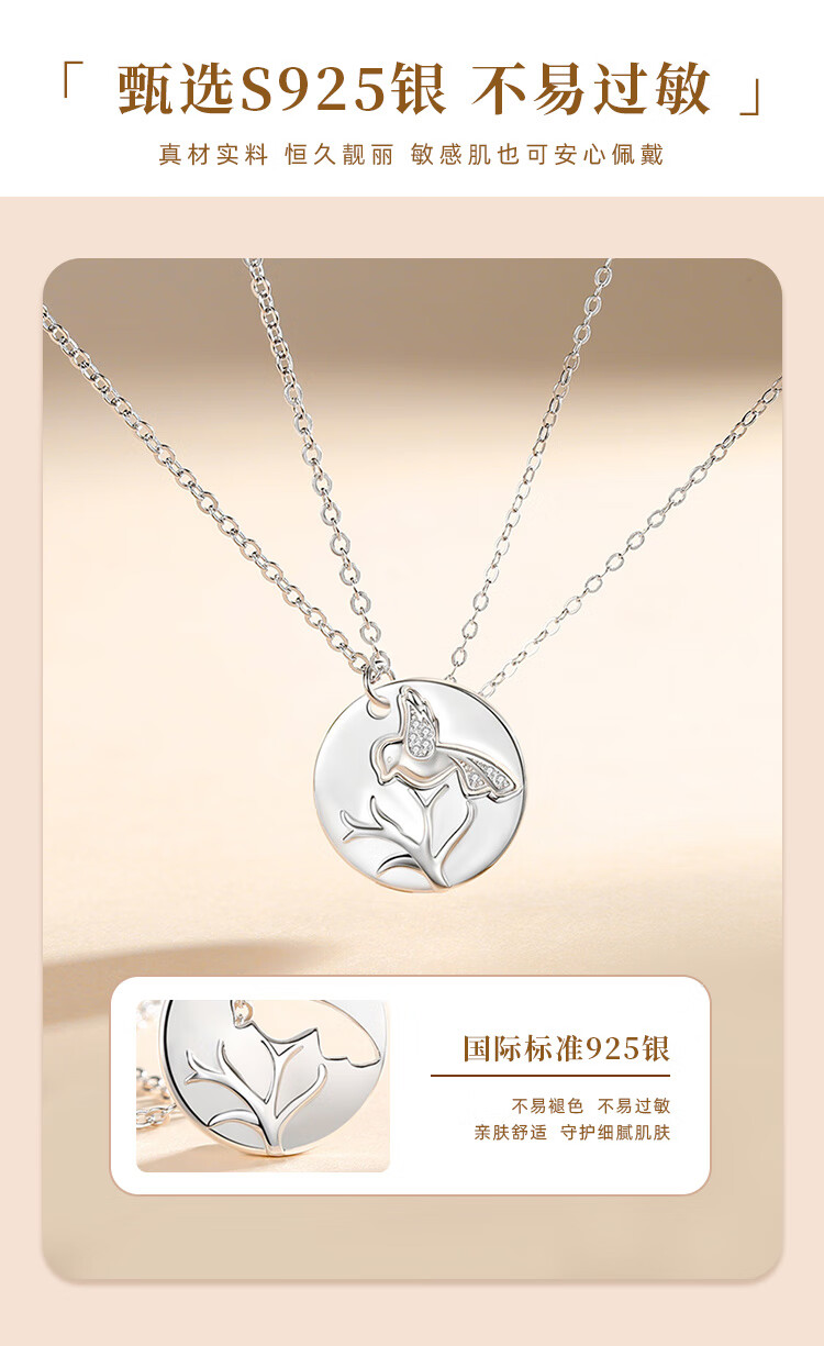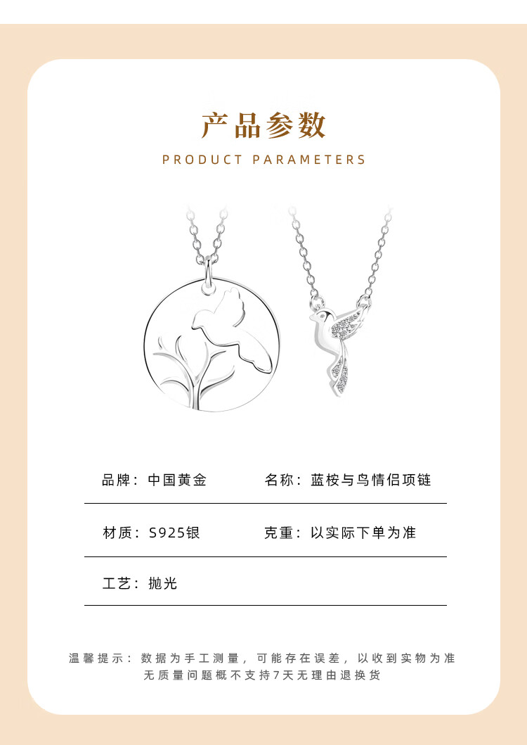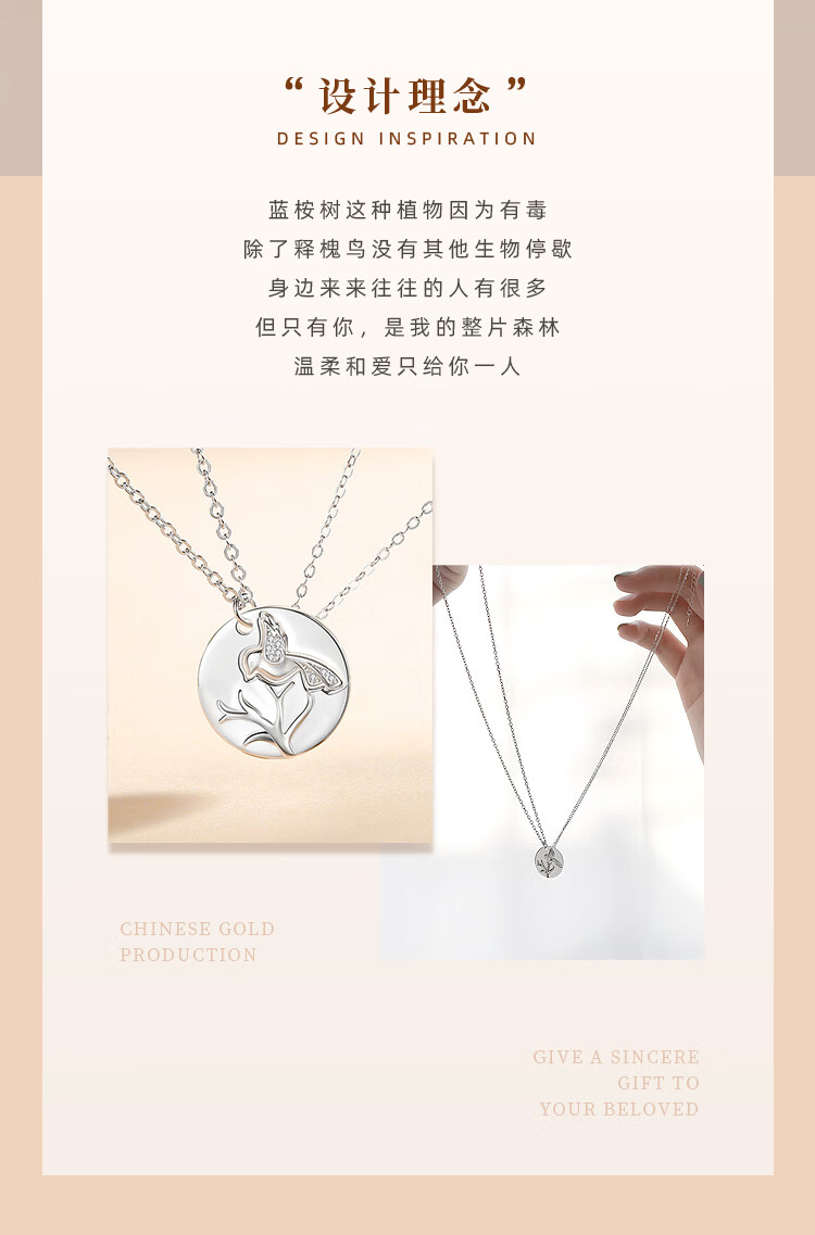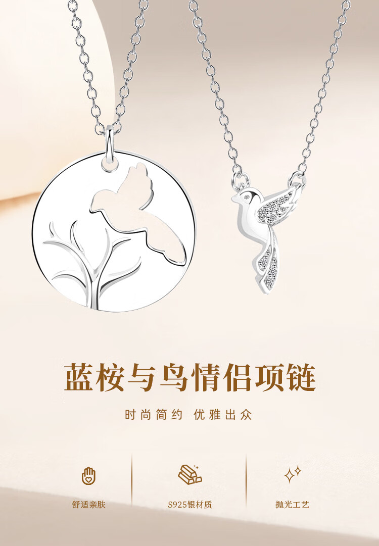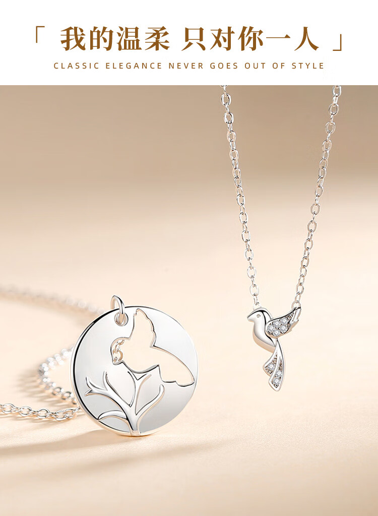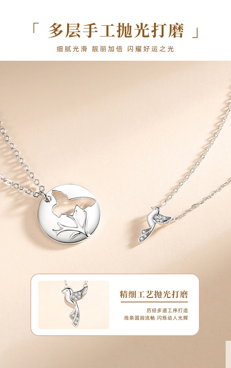 China Gold (CHINA GOLD) S925 Silver Eucalyptus and Bird Couple Necklace for Men and Women Pendant Memorial Day Valentine's Day Birthday Gift for Girlfriend Eucalyptus and Bird Couple Necklace Pair