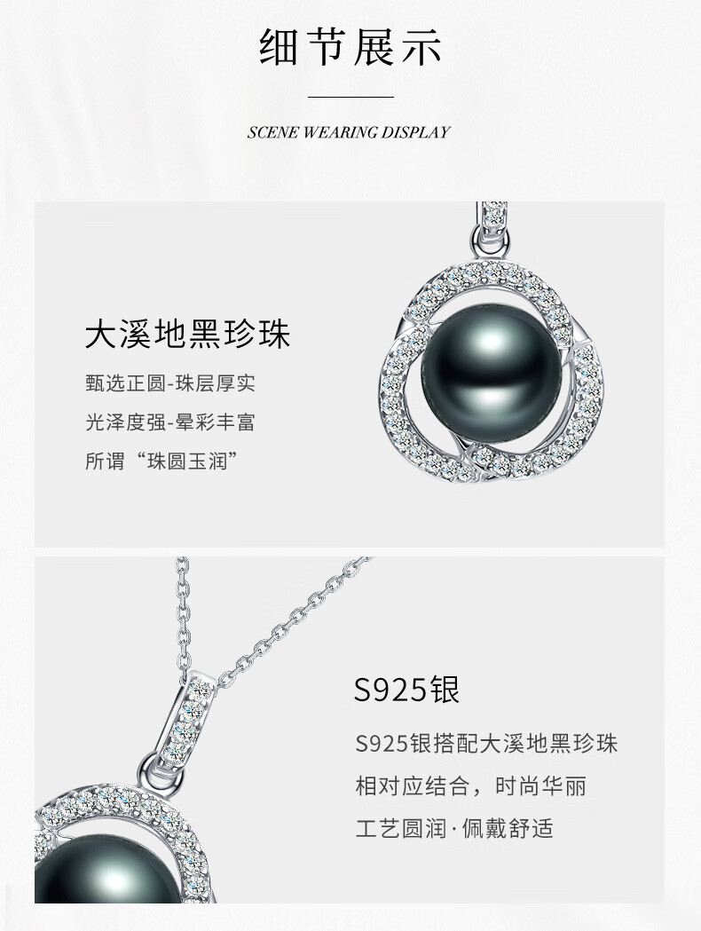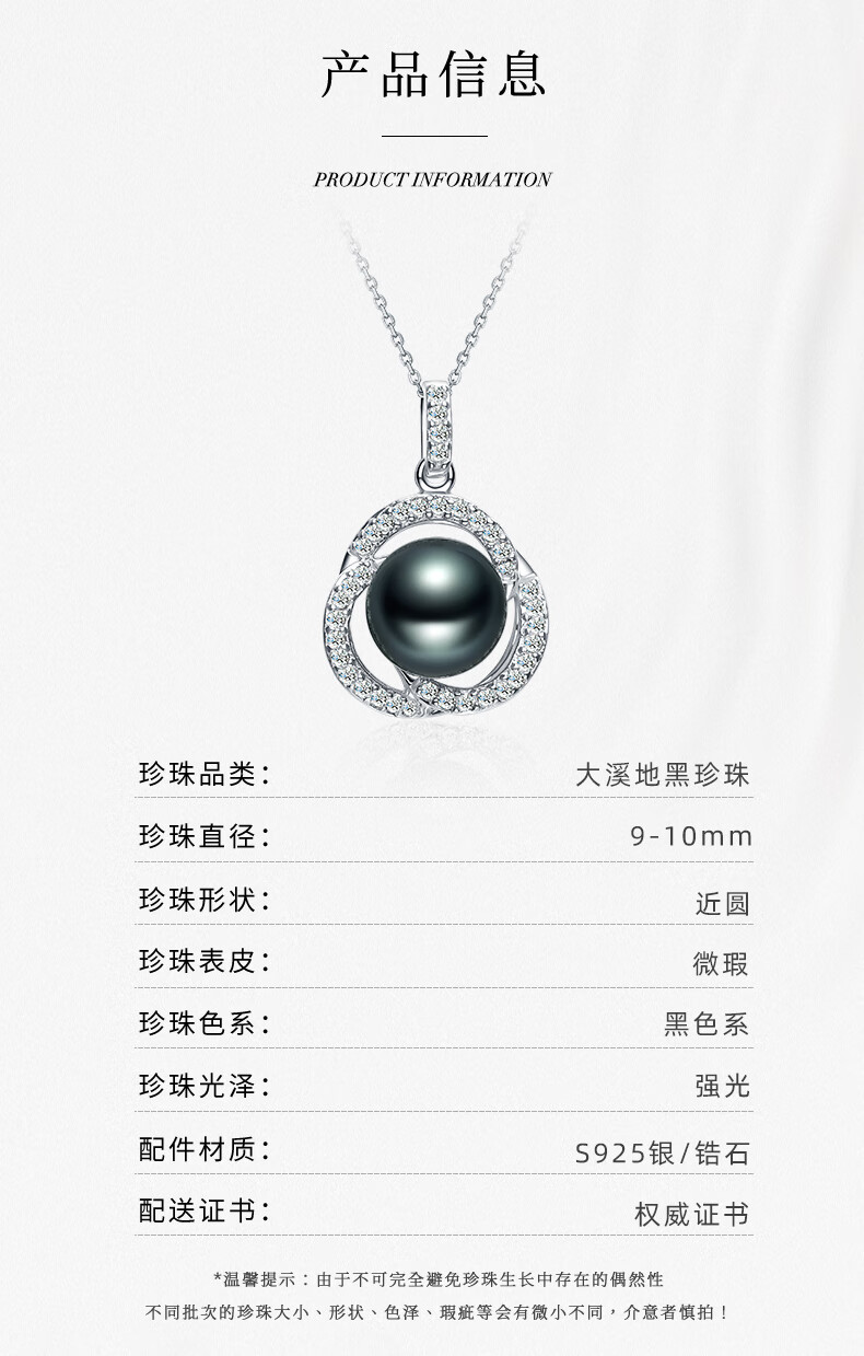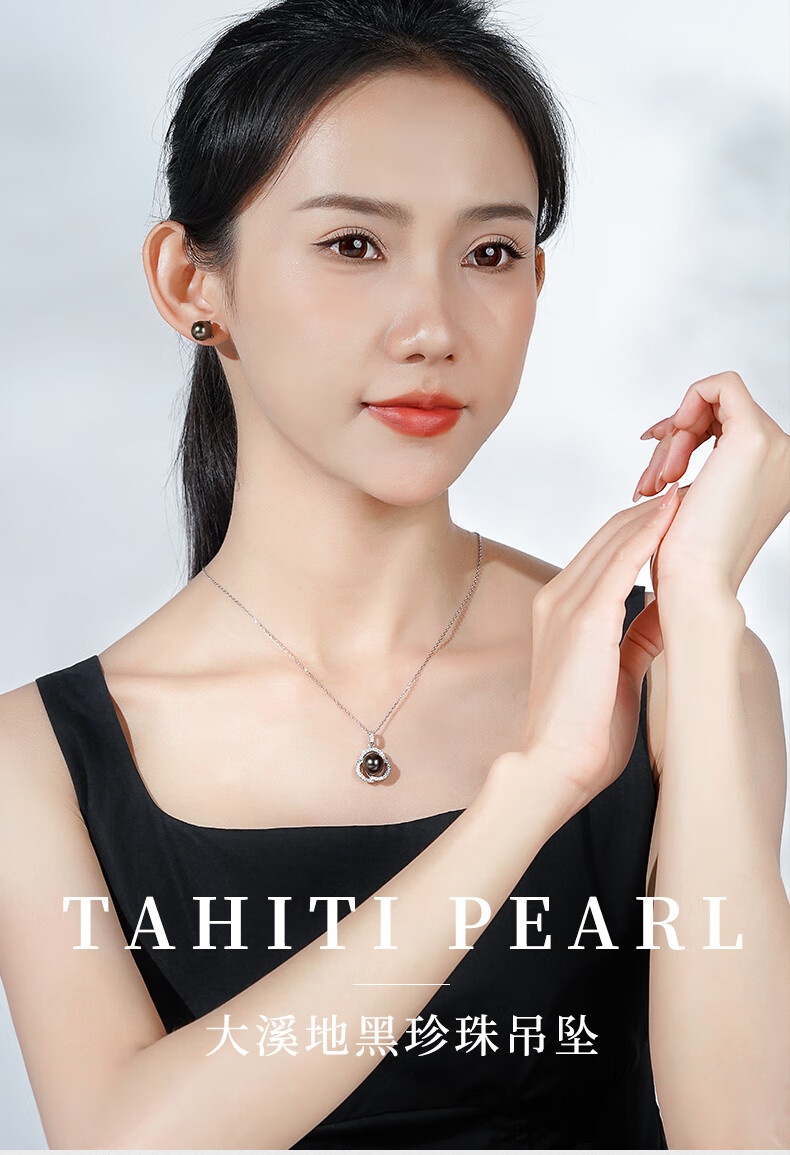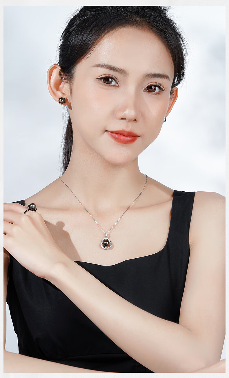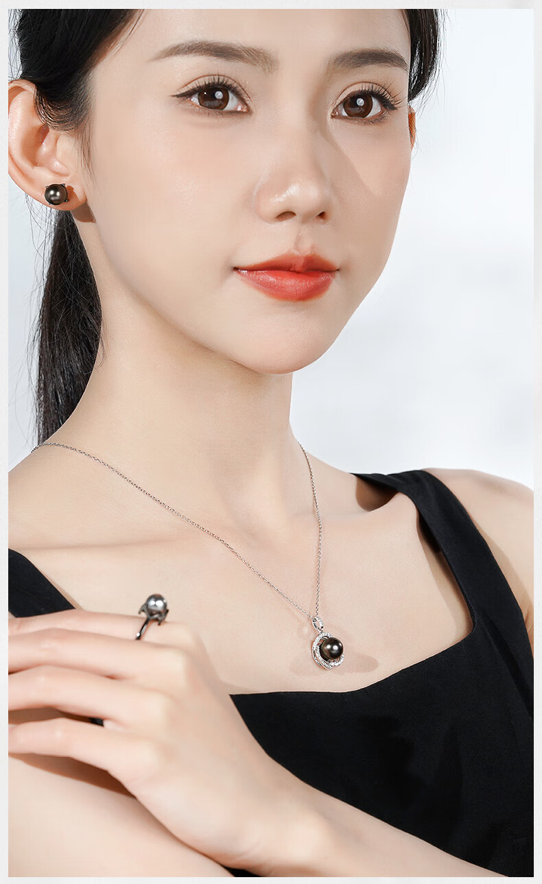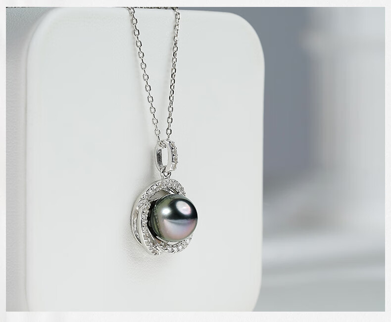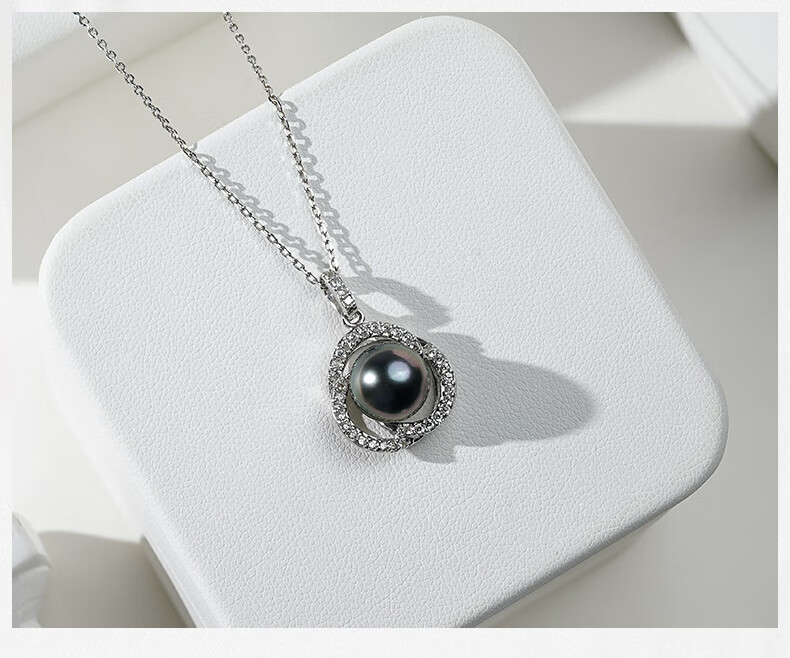 Tahitian black pearl pendant S925 silver high-gloss seawater pearl necklace neck gift for girlfriend and mother B grade/black pearl 9-10mm+925 silver chain