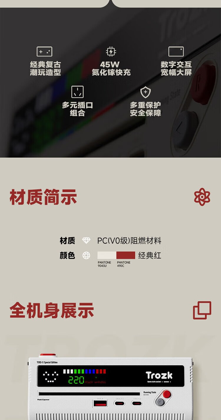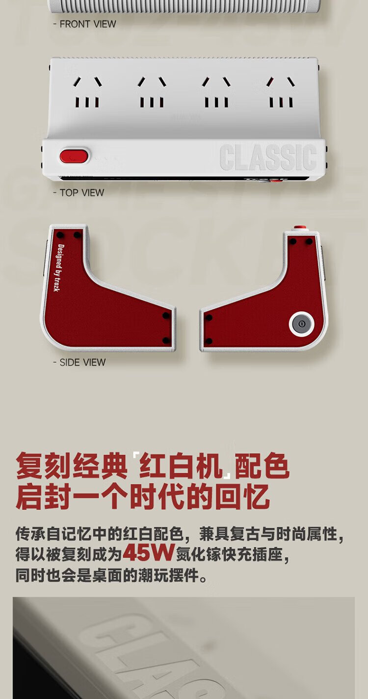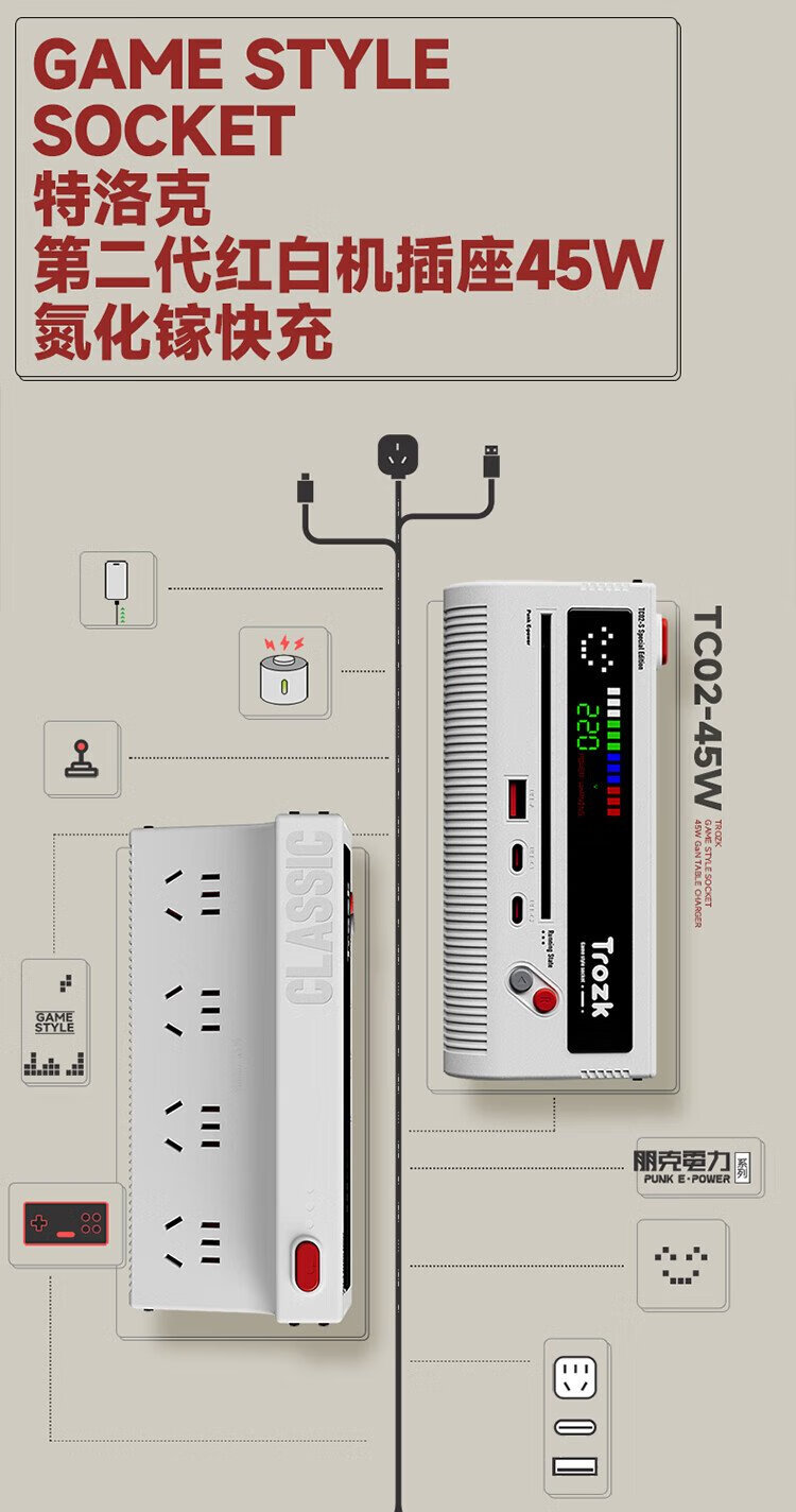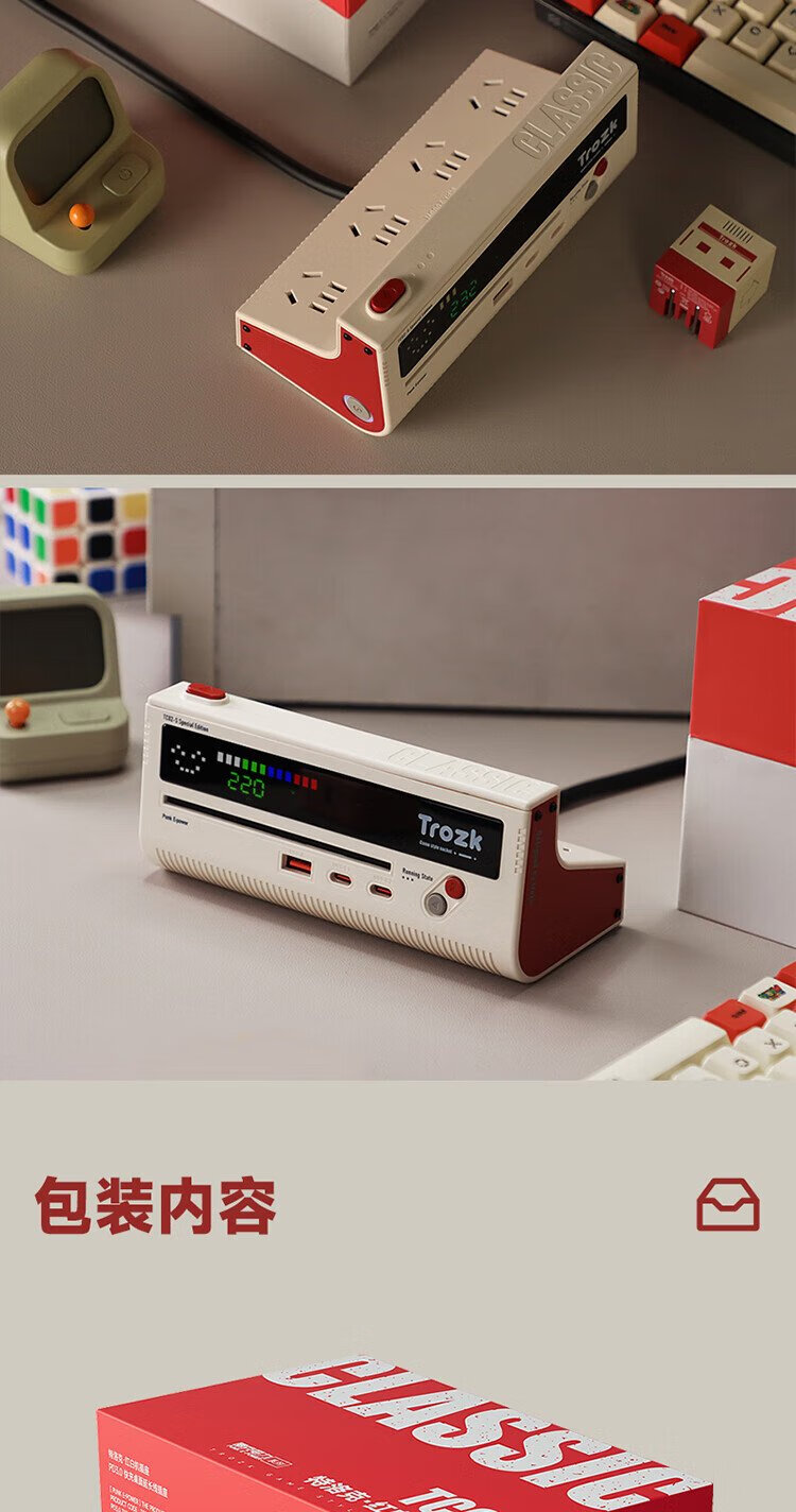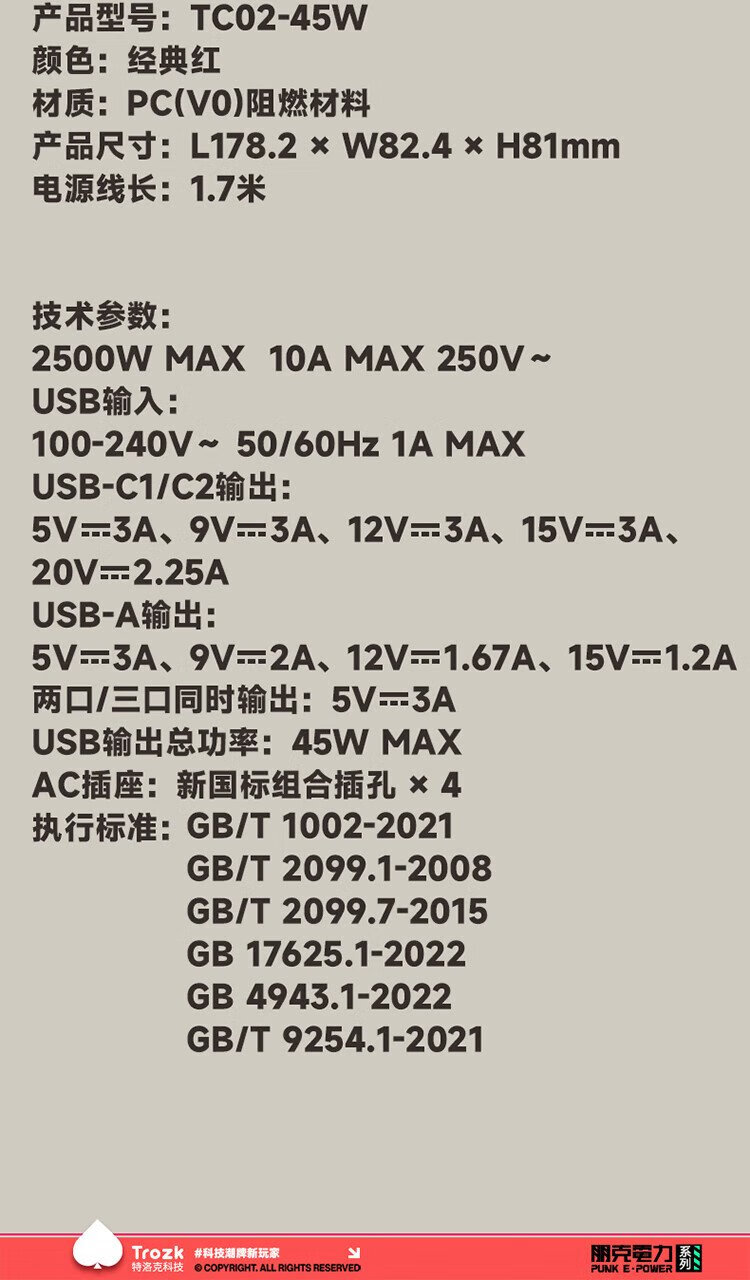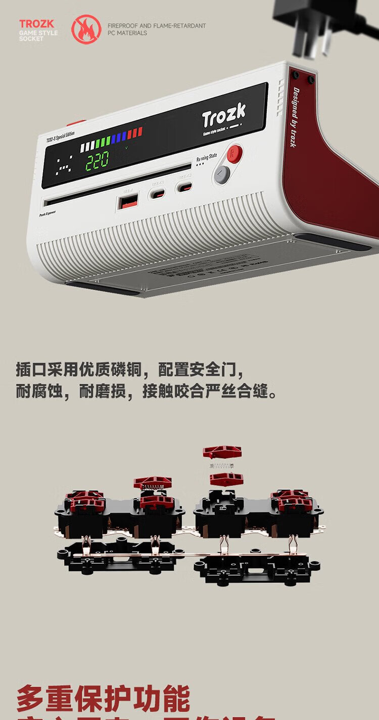 Trozk Trozk punk power red and white machine socket anti-surge multi-functional dormitory desktop wiring board fast charging plug board USB converter drag line board classic red (45W) second generation