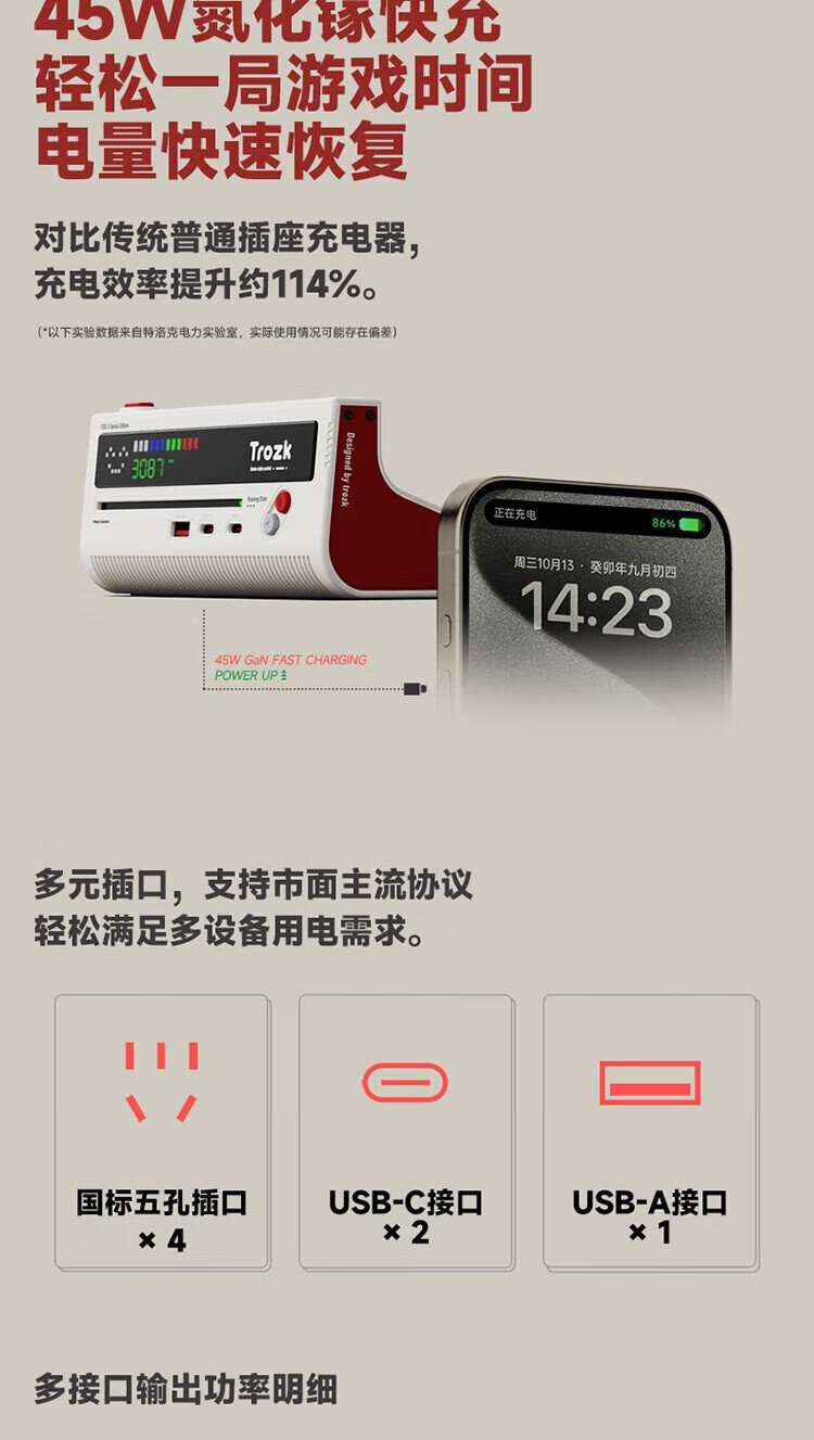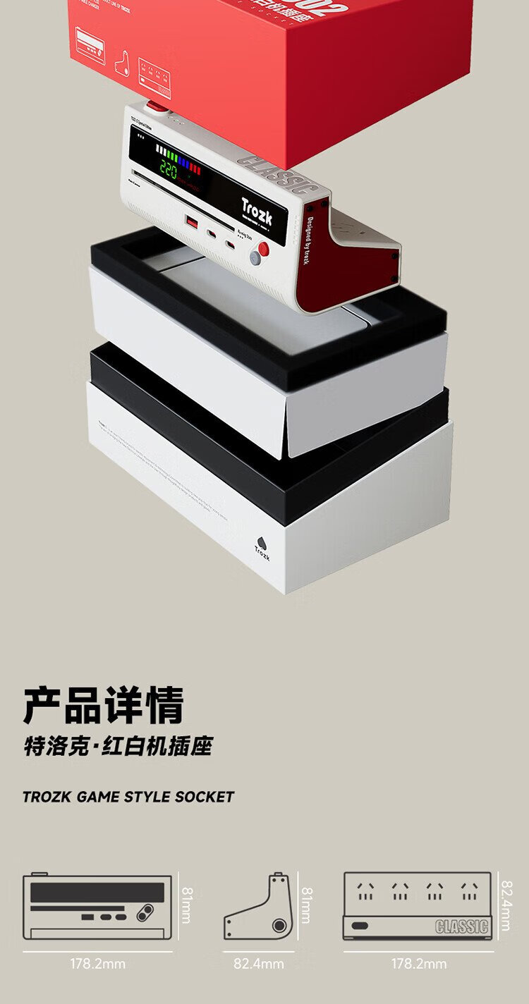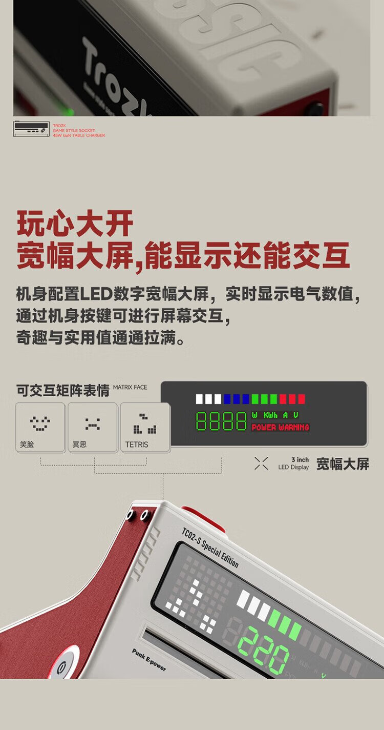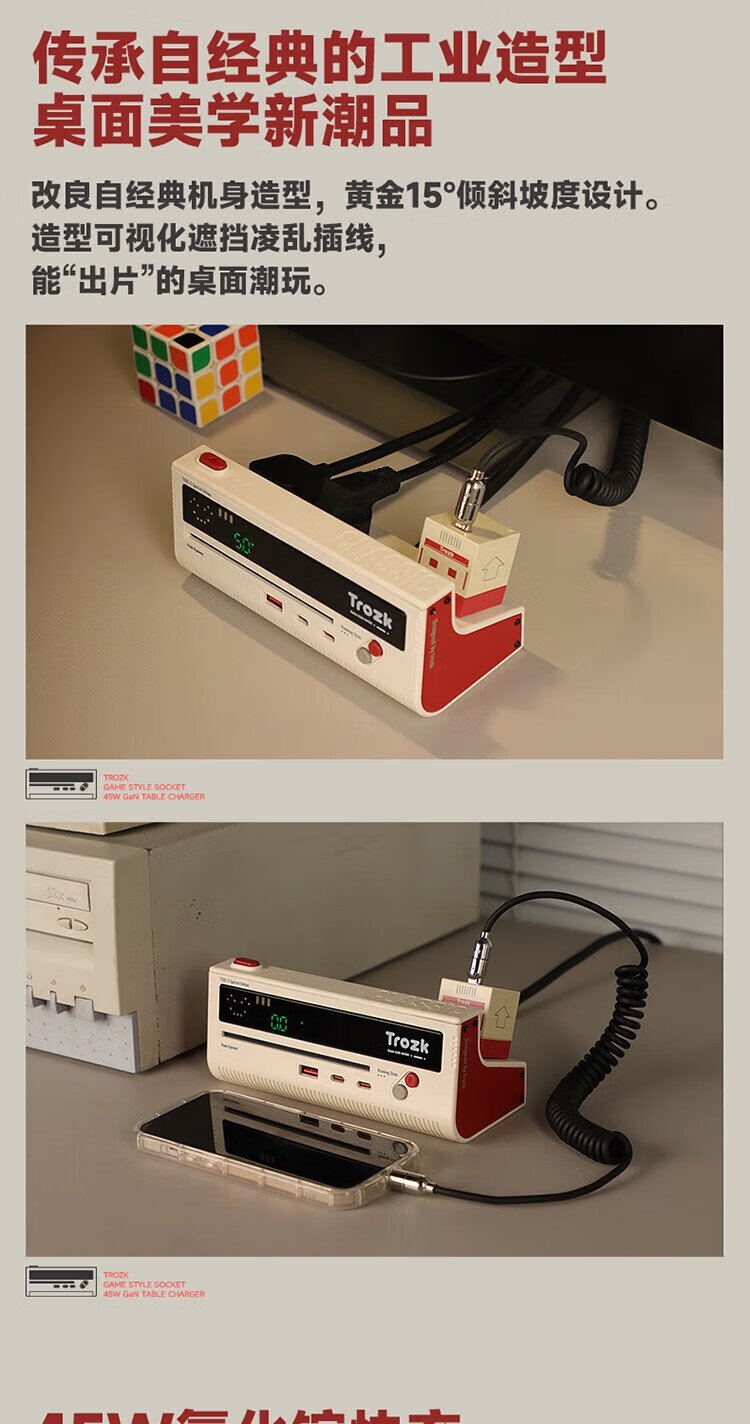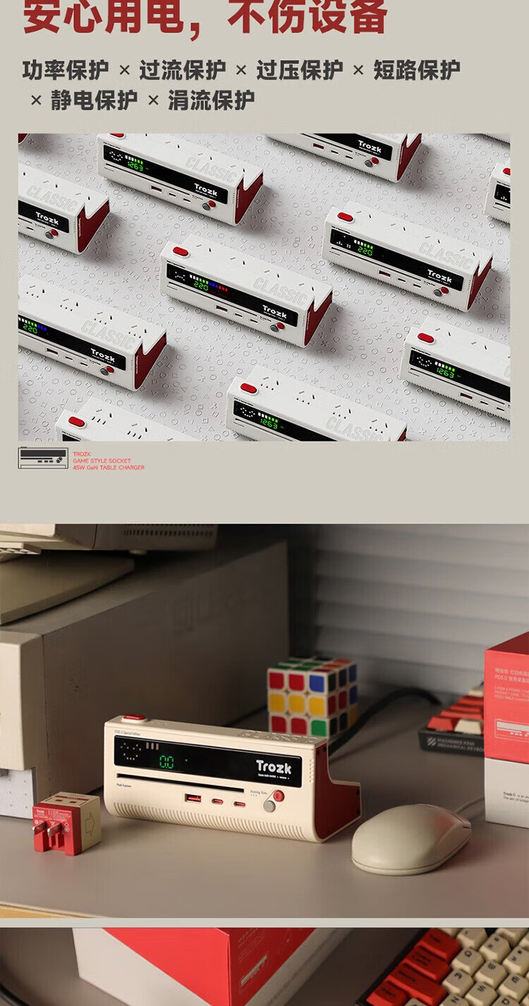 Trozk Trozk punk power red and white machine socket anti-surge multi-functional dormitory desktop wiring board fast charging plug board USB converter drag line board classic red (45W) second generation