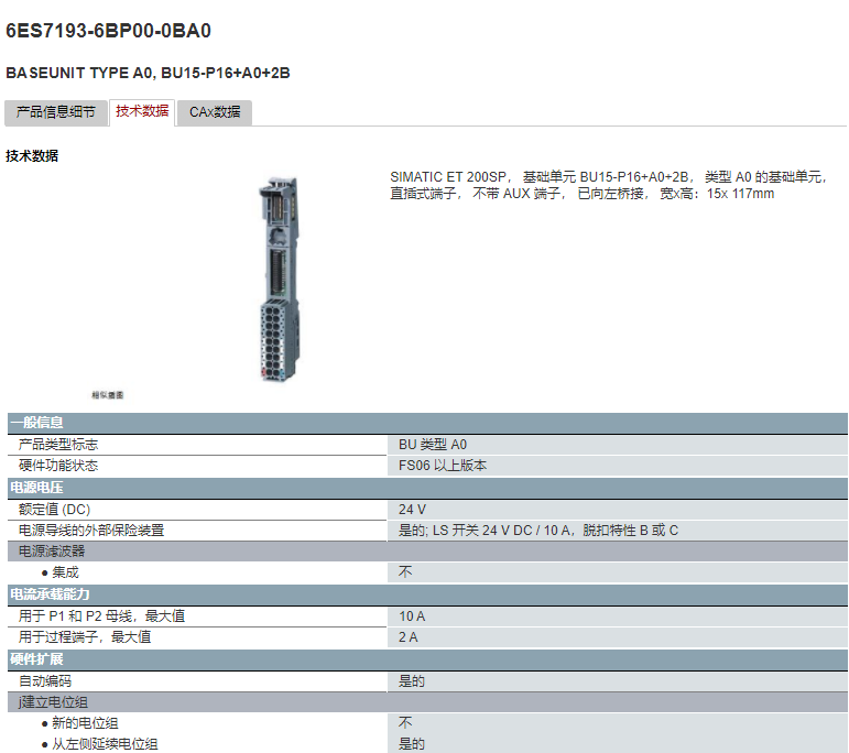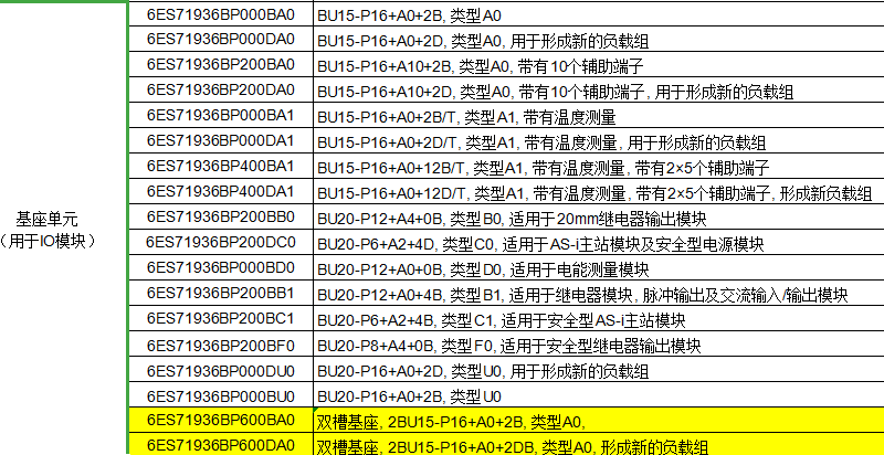 ET200SP base A0 base terminal 6ES7 193-6BP00/6BP20/60-0DA0/0BA0 6ES7193-6BP20-0BB1