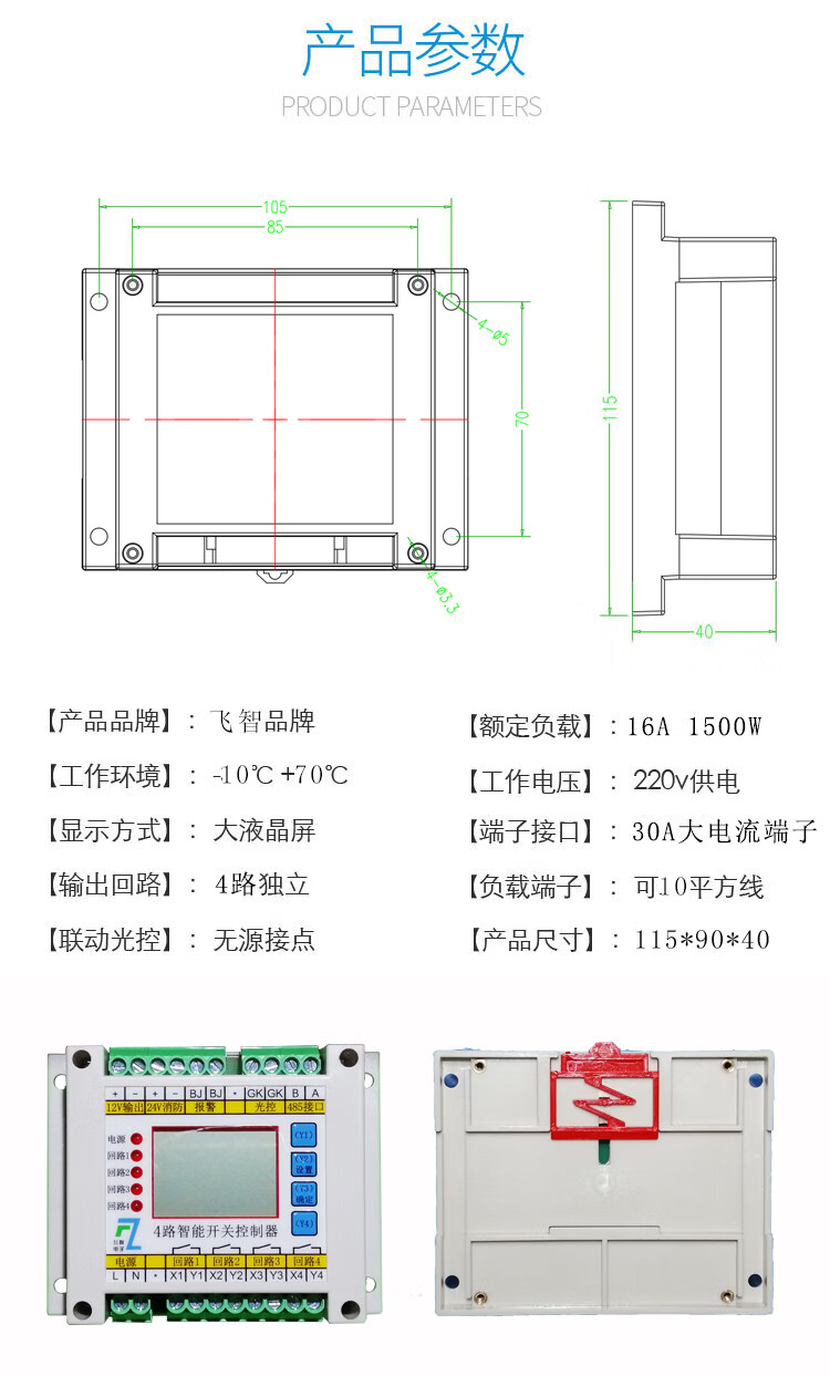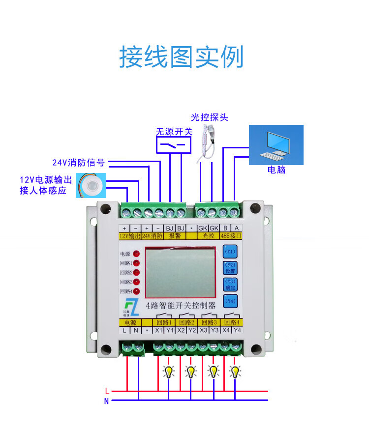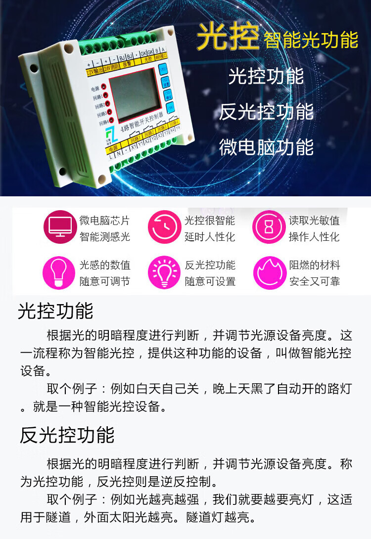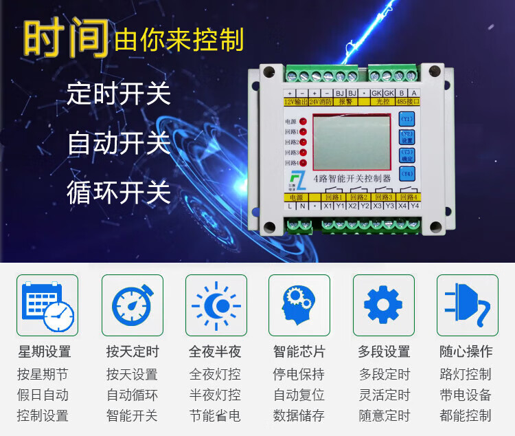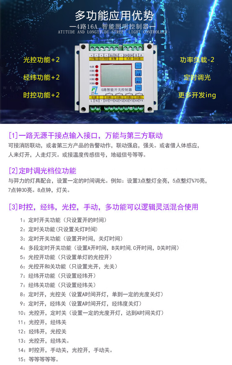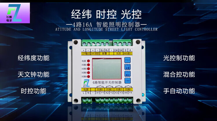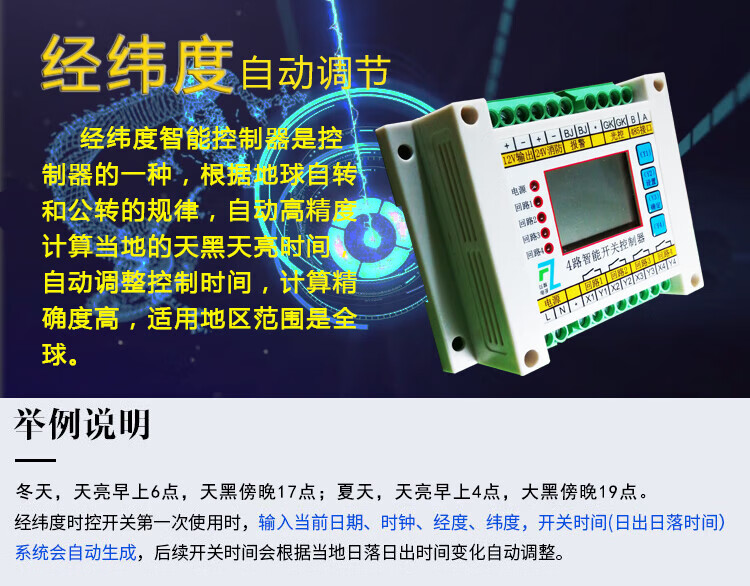4-way time-controlled light-controlled loop switch intelligent lighting module longitude and latitude street light controller fire emergency switch 10A controller can carry 200W load
