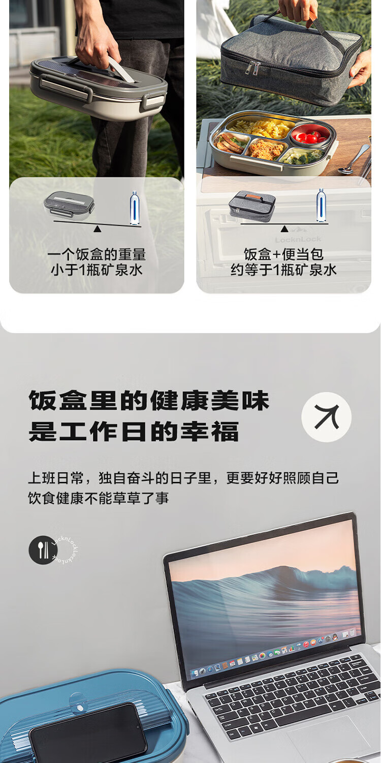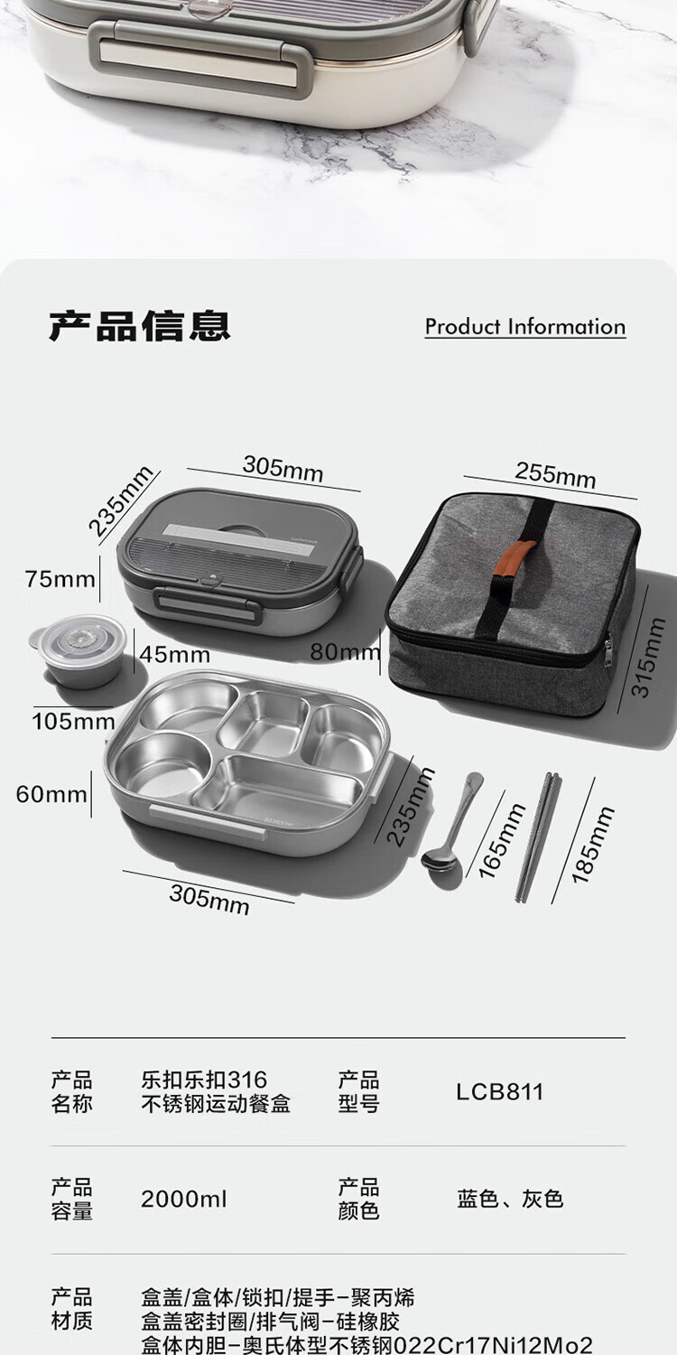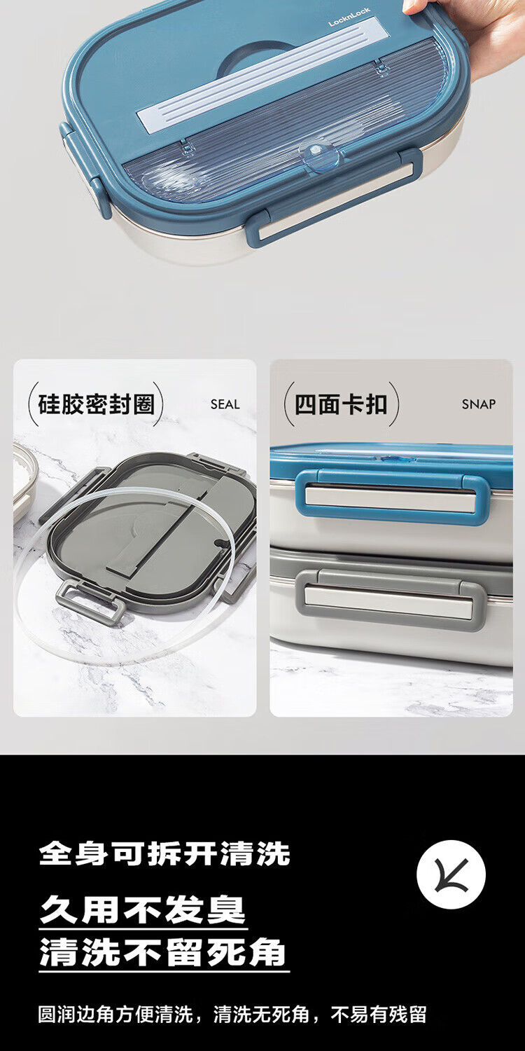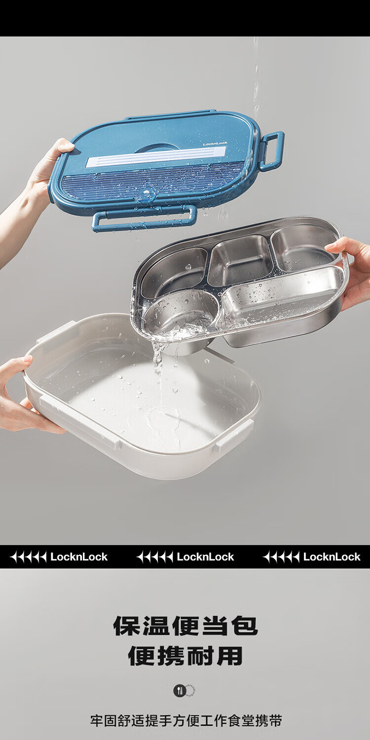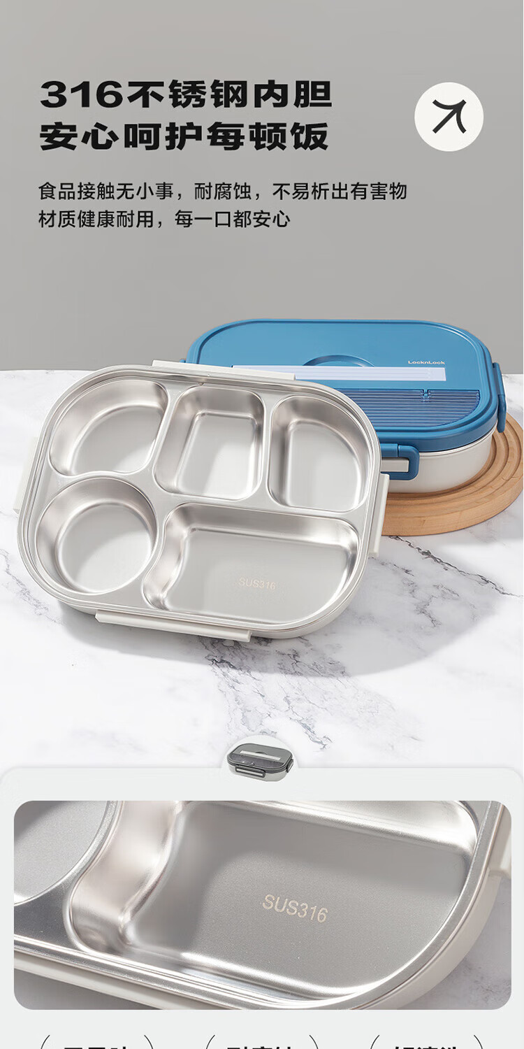 LOCK & LOCK 316 stainless steel dinner plate for office workers lunch box with large compartments, large capacity for adults, 5 compartments) 1 layer