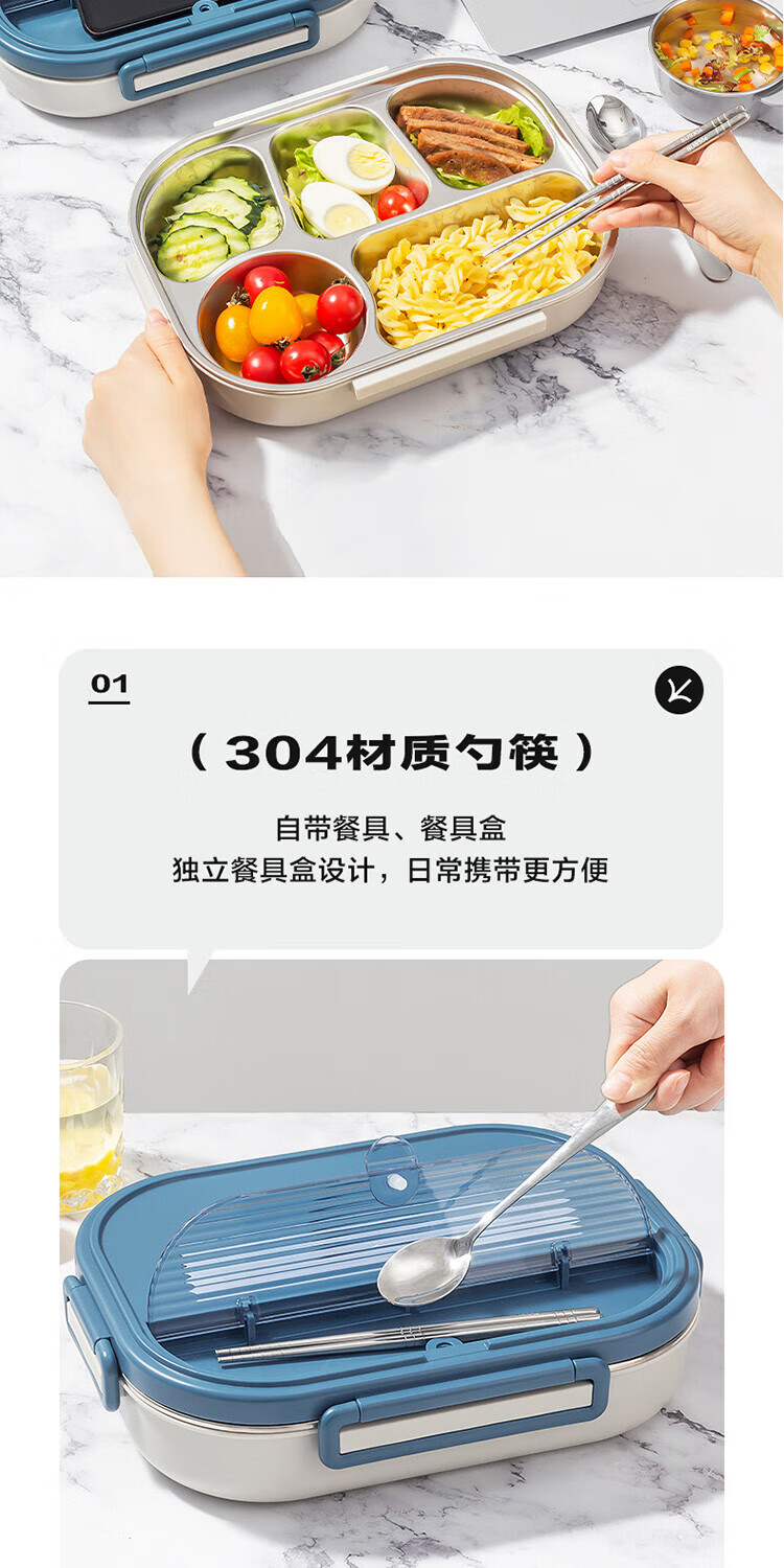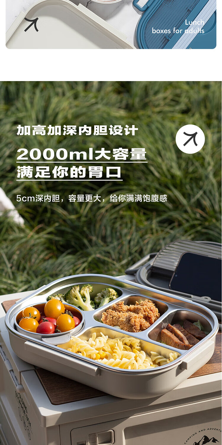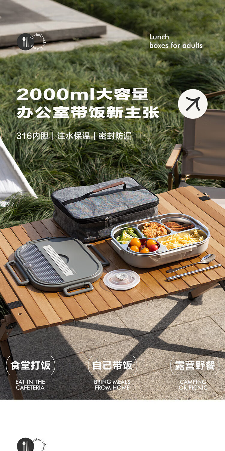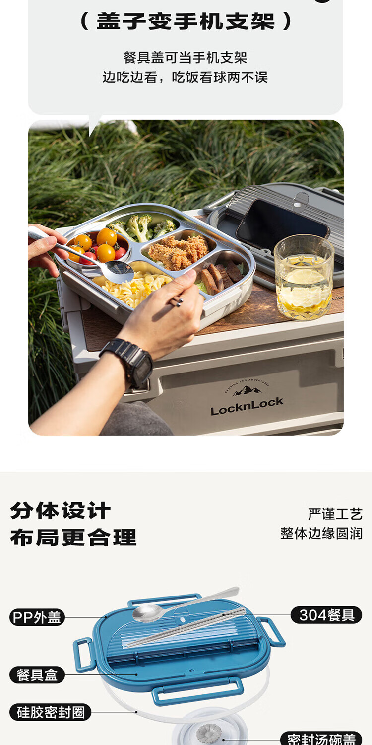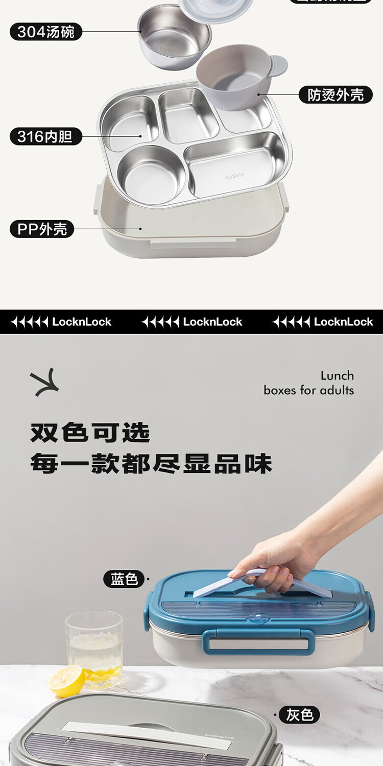 LOCK & LOCK 316 stainless steel dinner plate for office workers lunch box with large compartments, large capacity for adults, 5 compartments) 1 layer