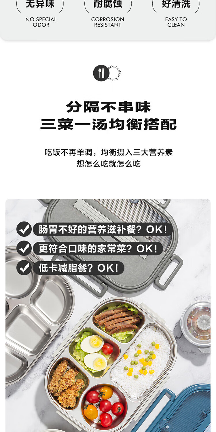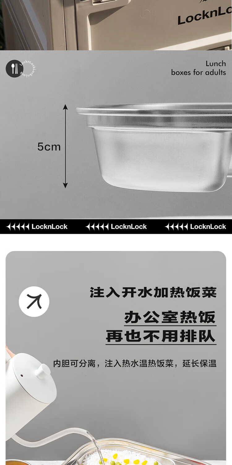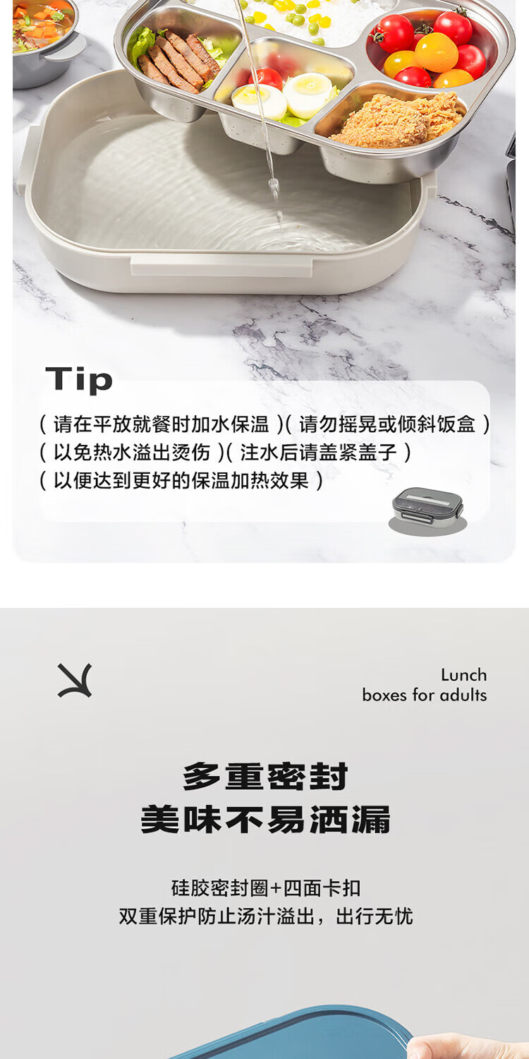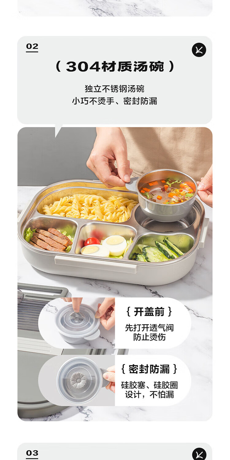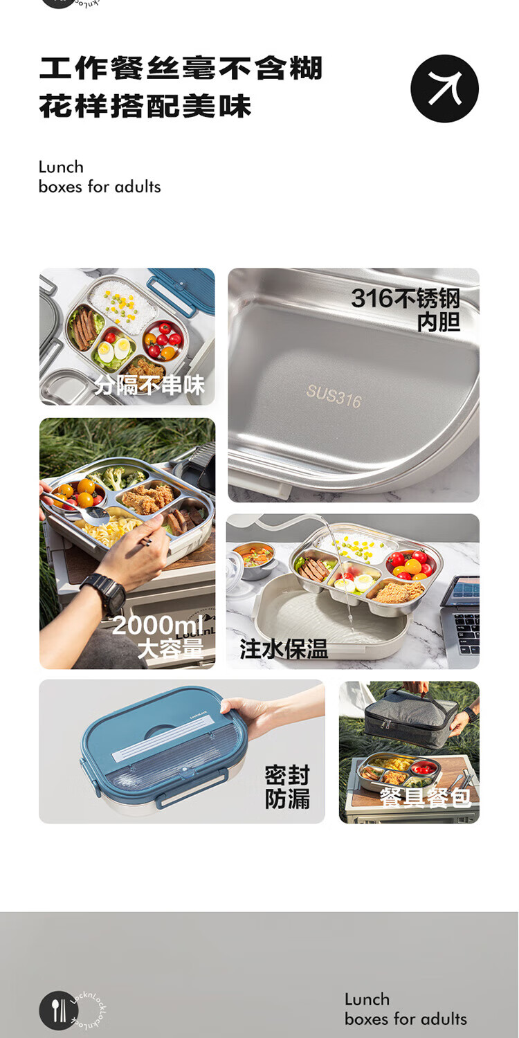 LOCK & LOCK 316 stainless steel dinner plate for office workers lunch box with large compartments, large capacity for adults, 5 compartments) 1 layer
