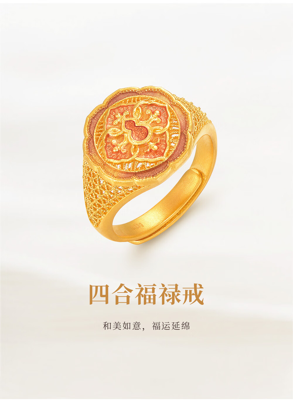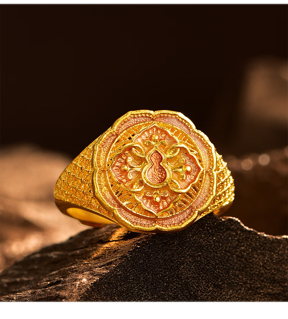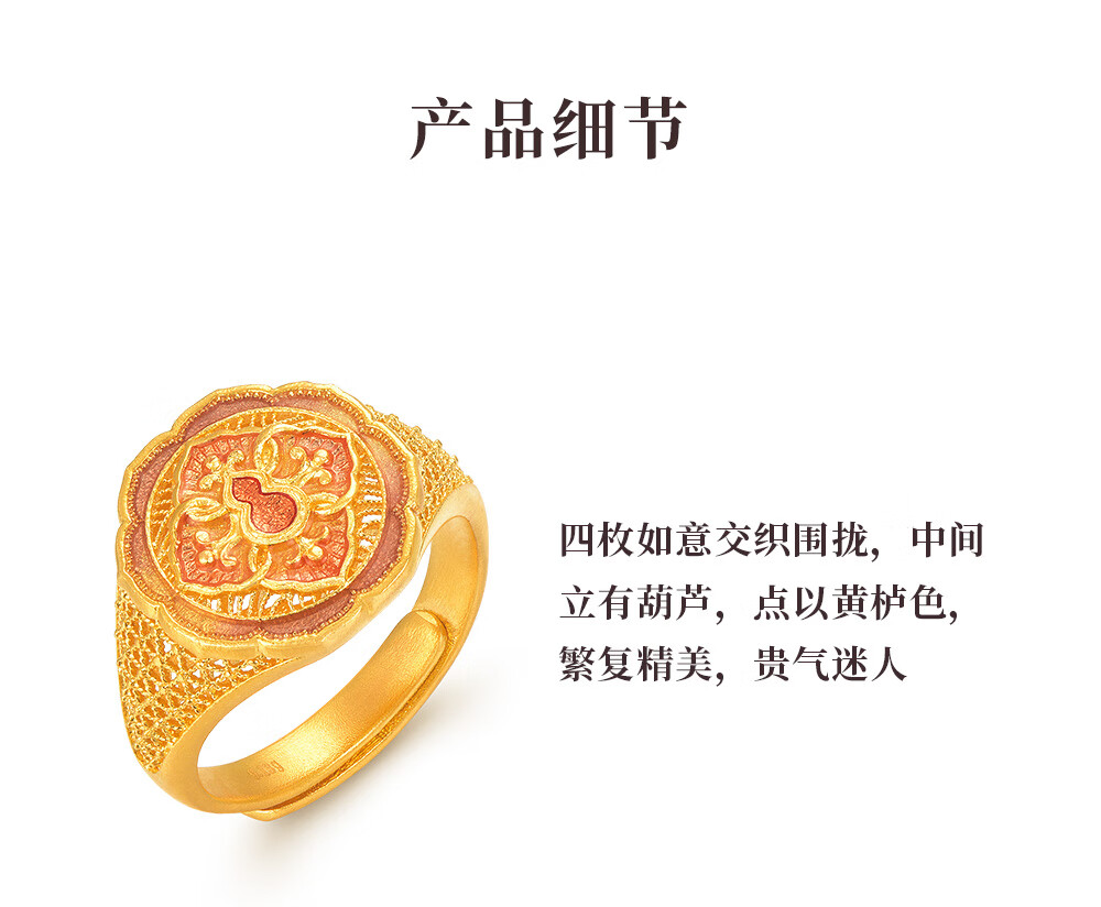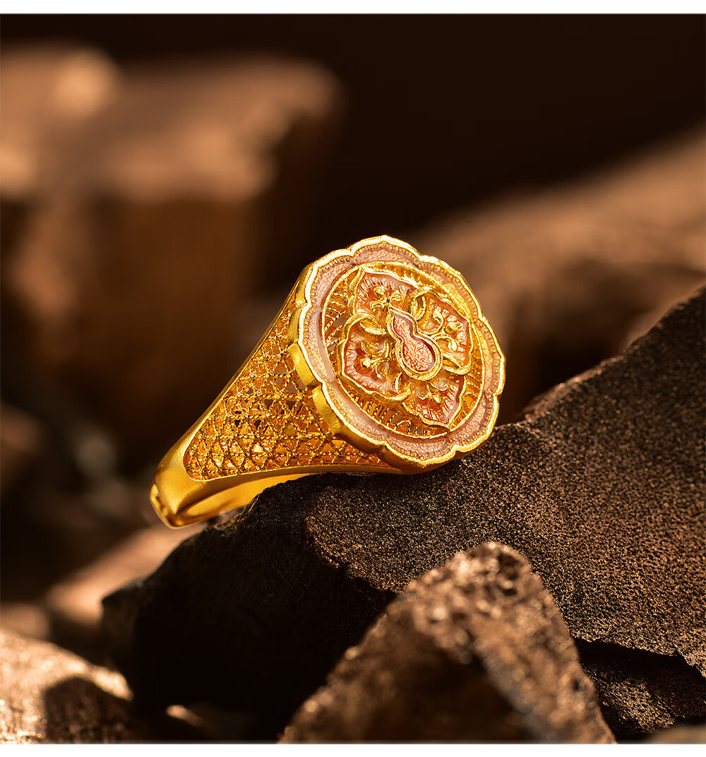 Ming brand jewelry pure gold ancient method gold four-in-one Fulu Ruyi gourd ring AFM0319 labor cost 1100 pure gold ring about 9.54 grams