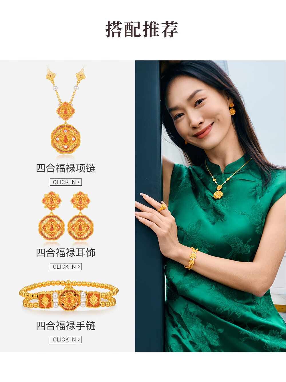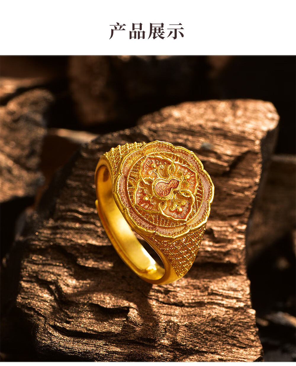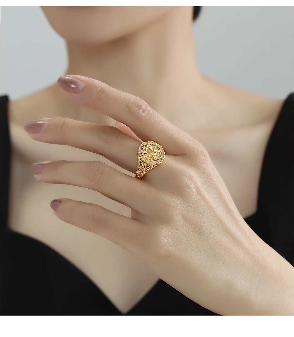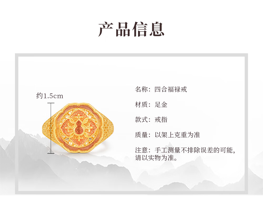 Ming brand jewelry pure gold ancient method gold four-in-one Fulu Ruyi gourd ring AFM0319 labor cost 1100 pure gold ring about 9.54 grams