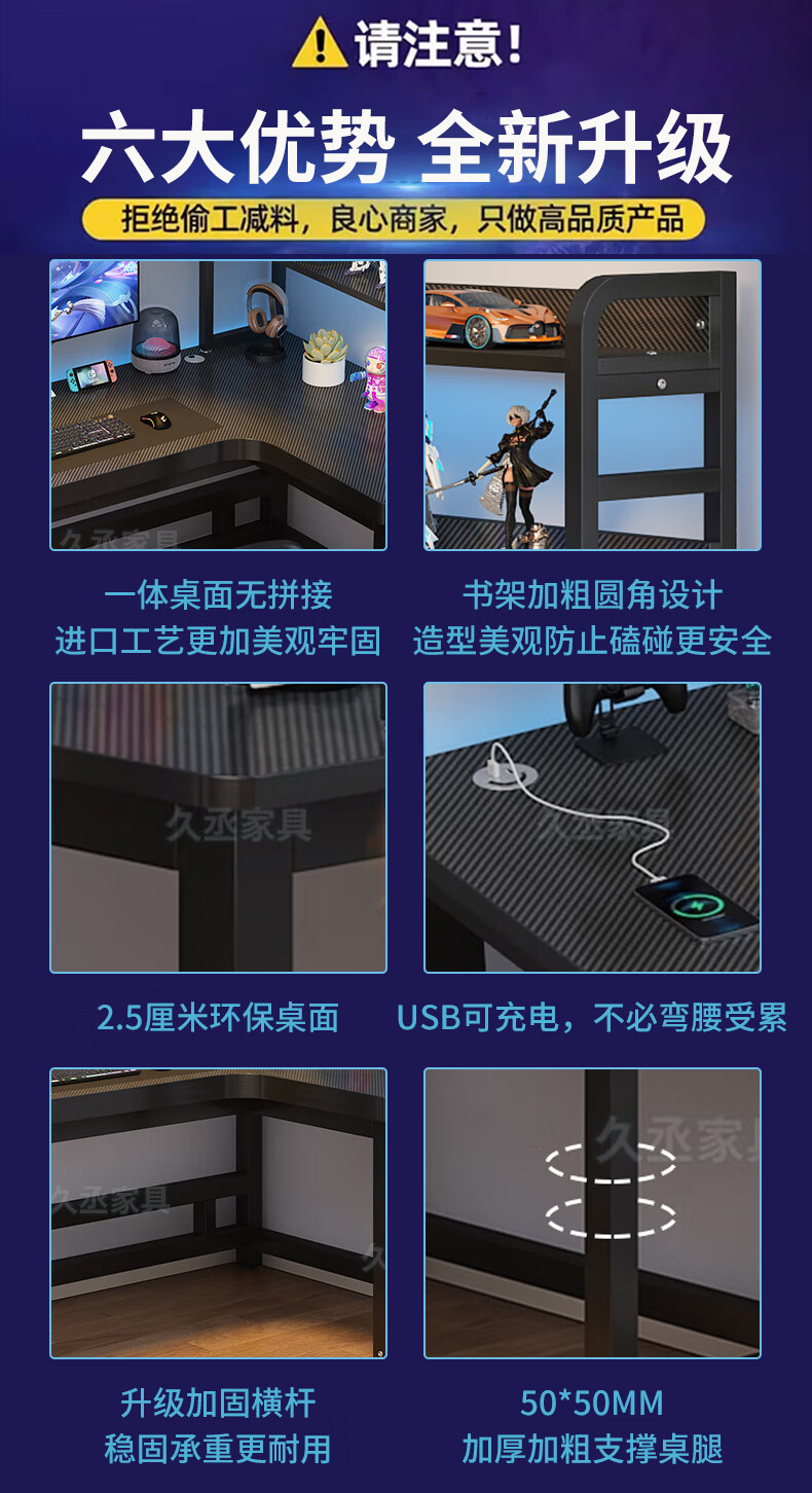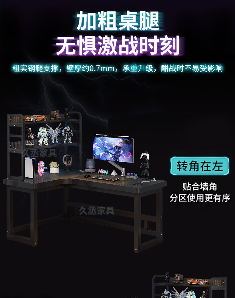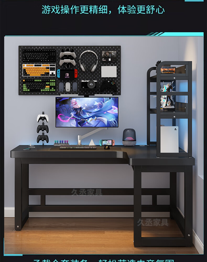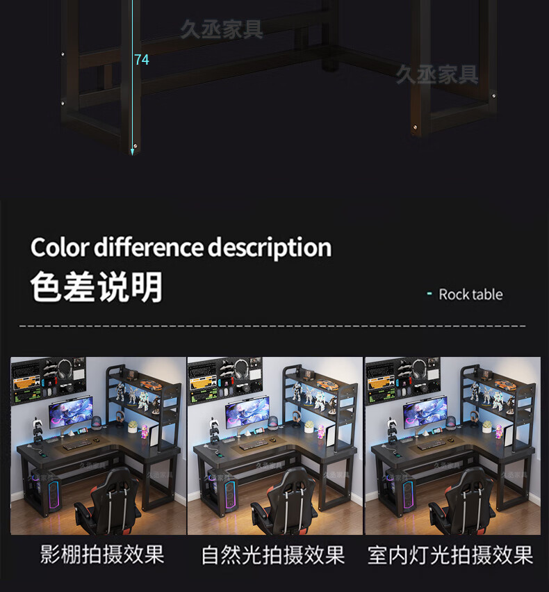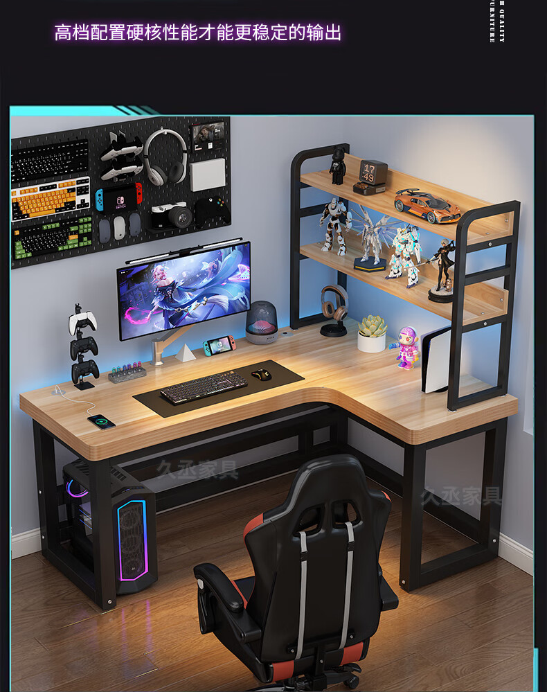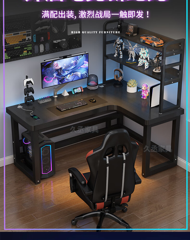 Jiucheng Furniture Corner Computer Table Home E-Sports Bookshelf Combination Table Bedroom L-Shaped Table Extra Thick 25mm Desktop Black Left Corner 140x100x74cm