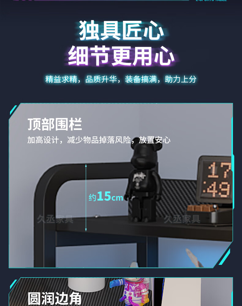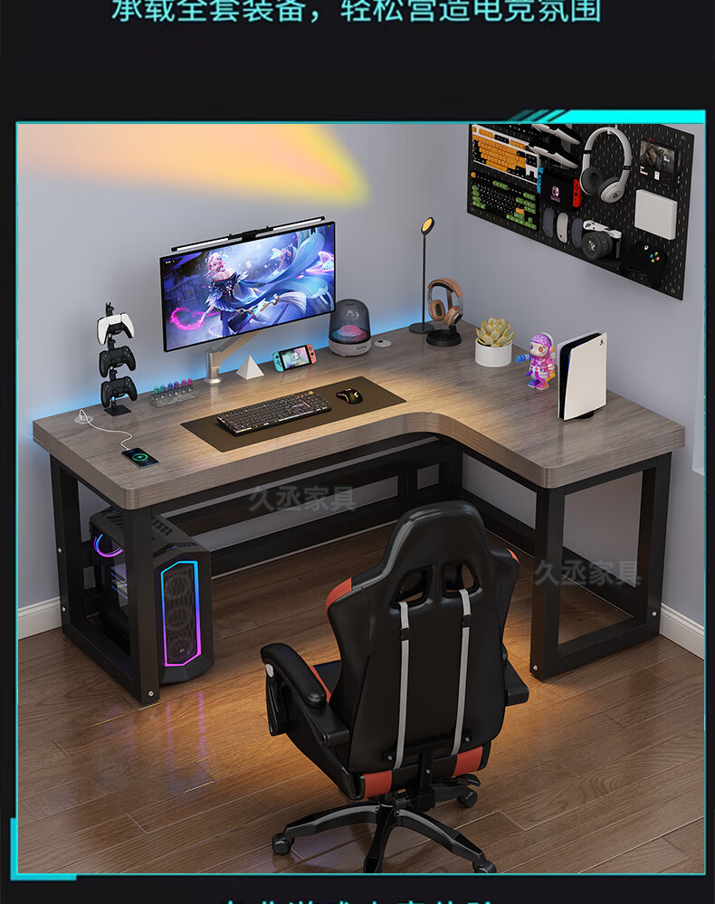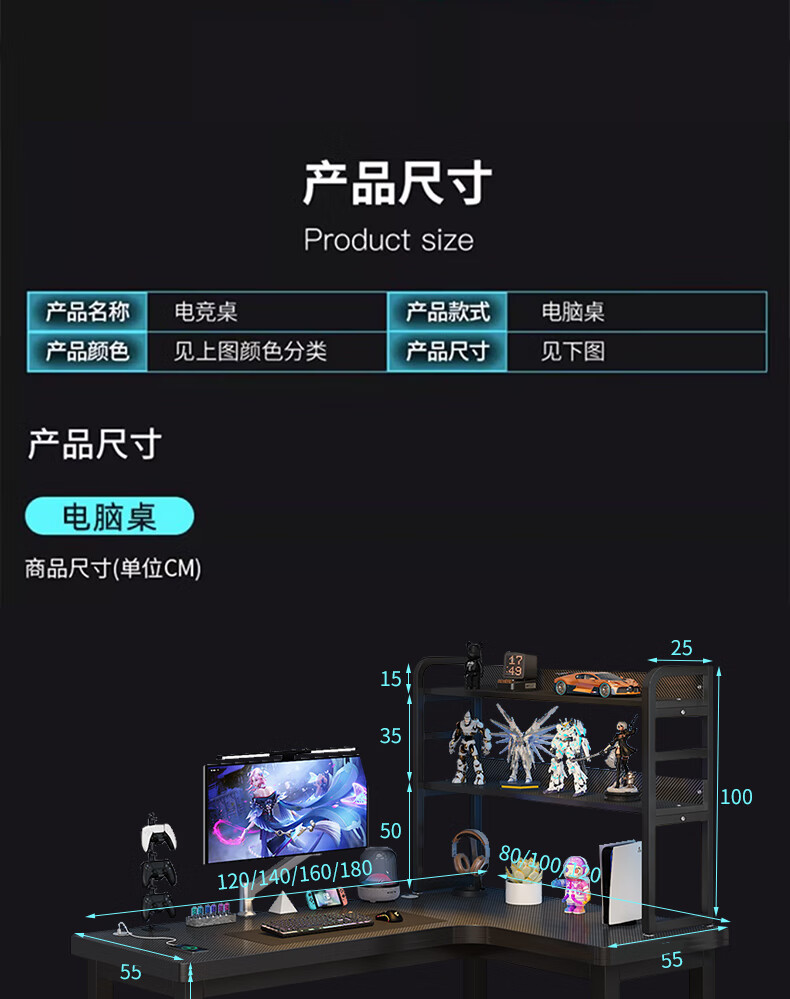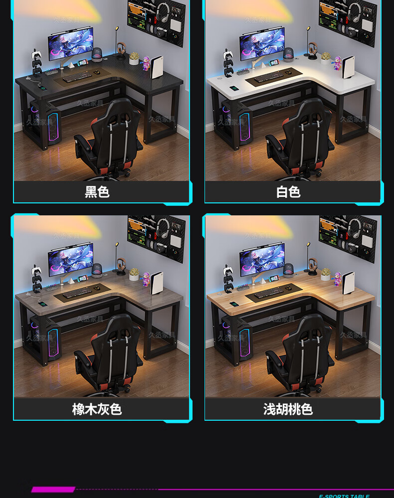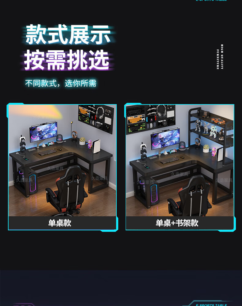 Jiucheng Furniture Corner Computer Table Home E-Sports Bookshelf Combination Table Bedroom L-Shaped Table Extra Thick 25mm Desktop Black Left Corner 140x100x74cm