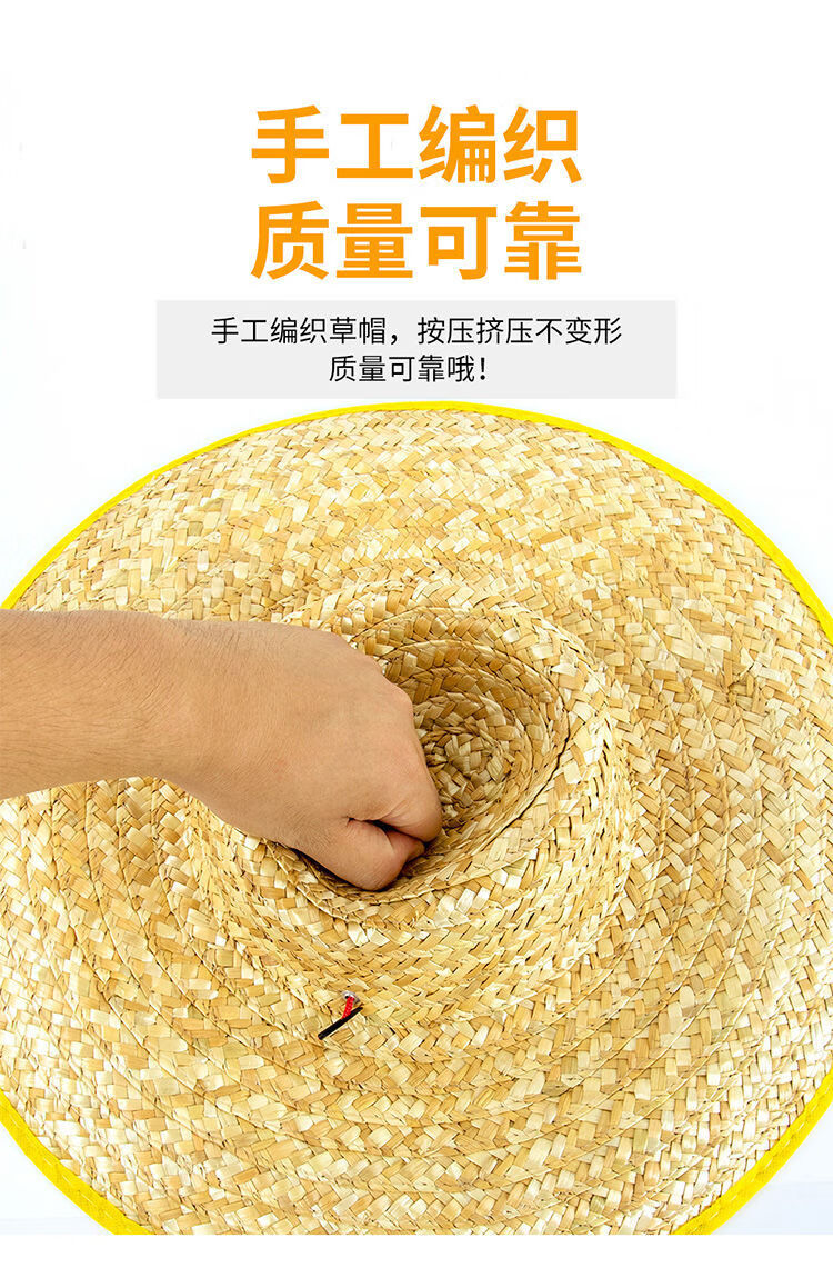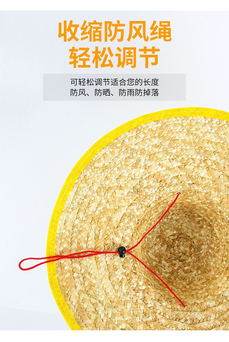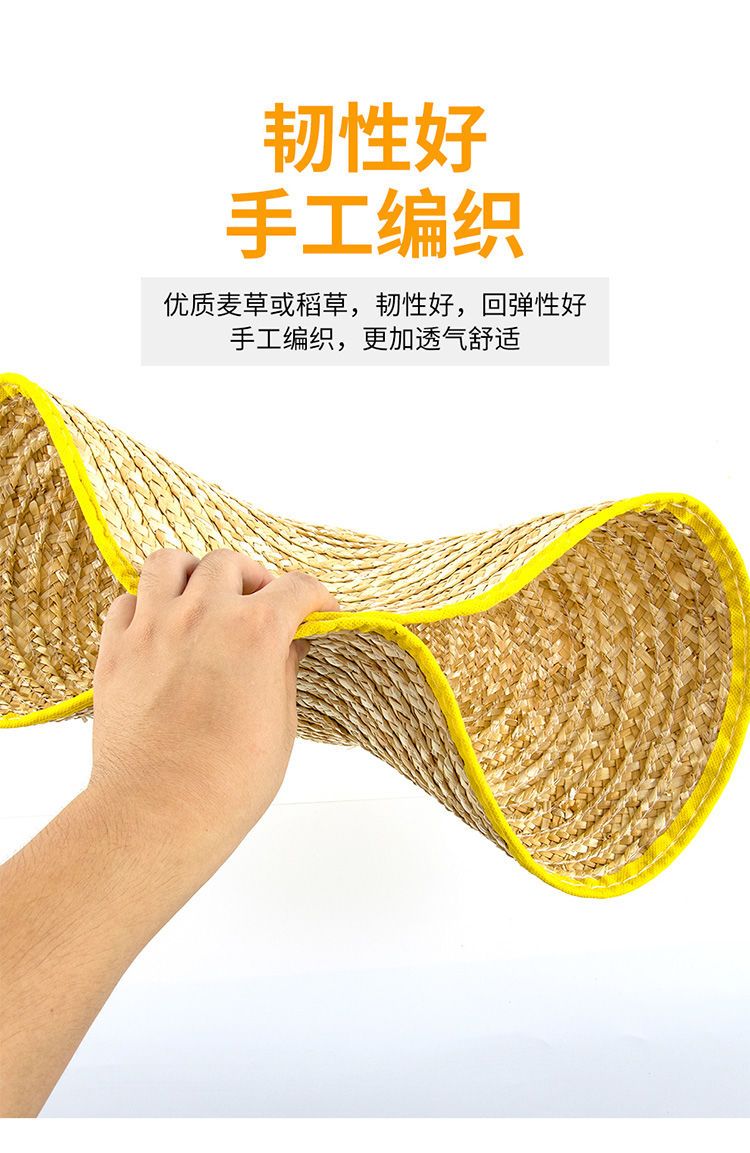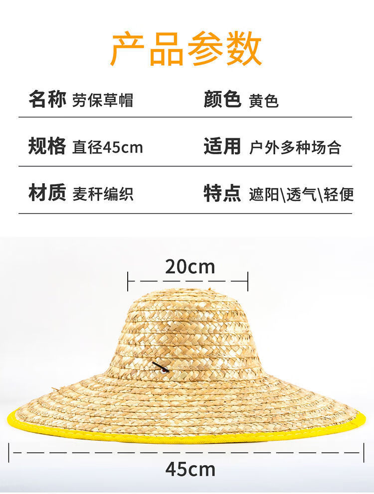 Labor protection straw hat, wheat straw braided sun protection, agricultural construction site open-air sunshade hat, fishing beach, large universal type, 45 cm hemmed one, free adjustable hat strap, adult universal type