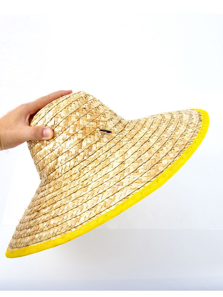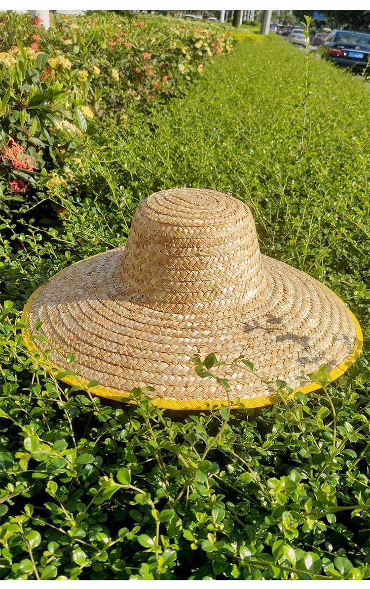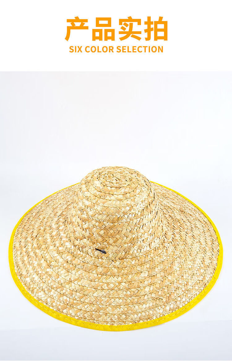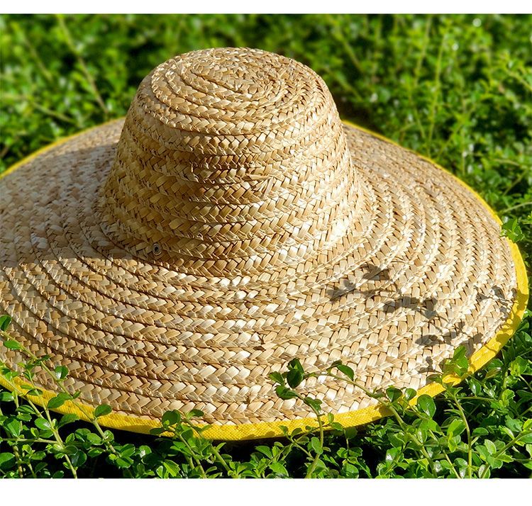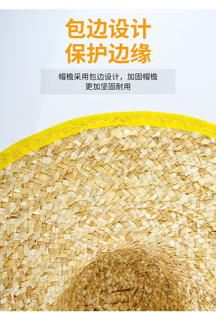 Labor protection straw hat, wheat straw braided sun protection, agricultural construction site open-air sunshade hat, fishing beach, large universal type, 45 cm hemmed one, free adjustable hat strap, adult universal type