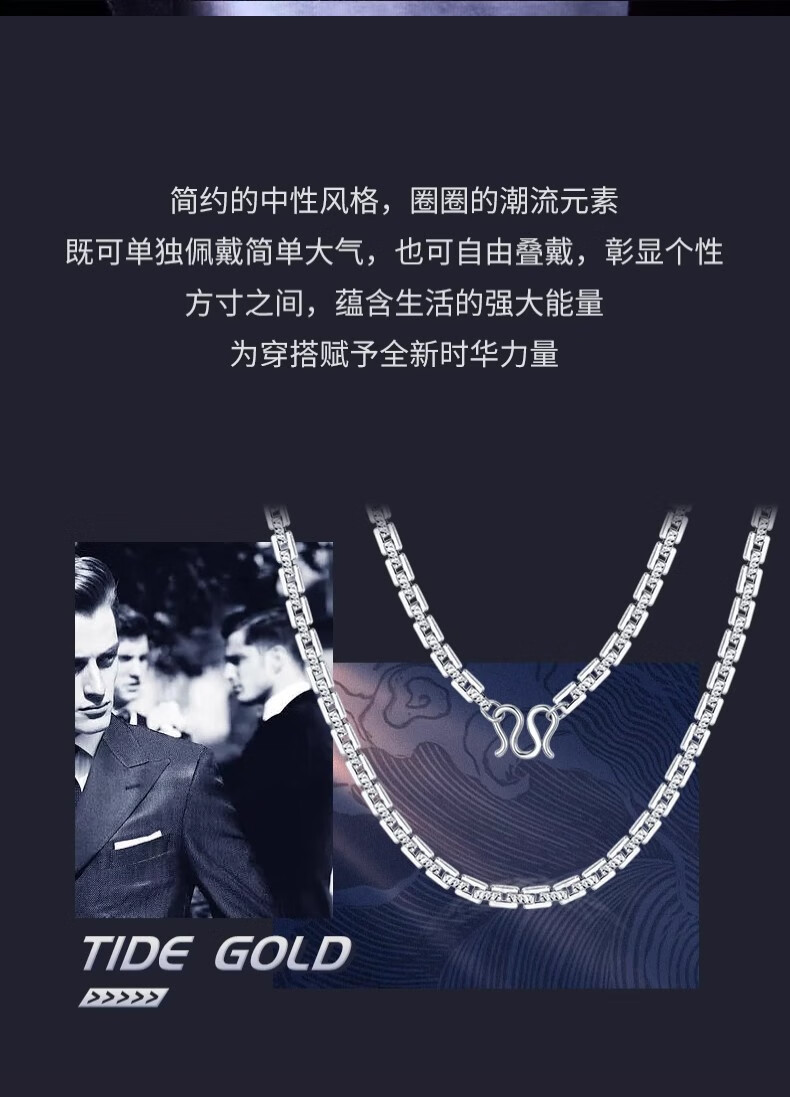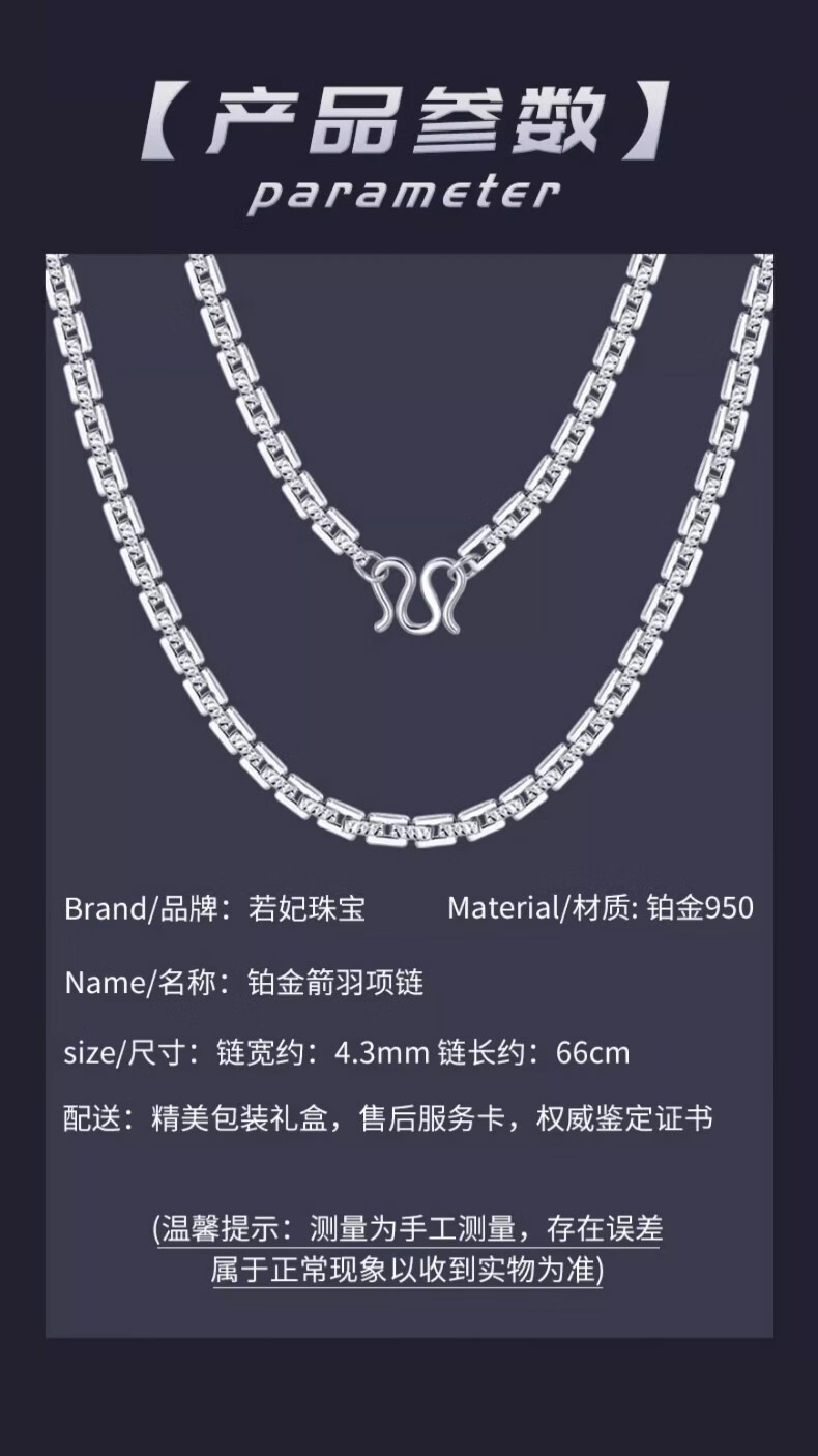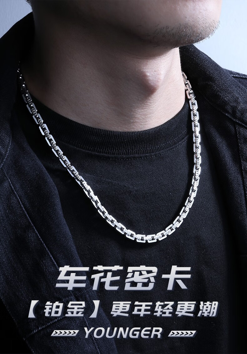 Ruofei platinum necklace men's pt950 platinum necklace simple and personalized platinum men's chain thick carving dense card necklace platinum 950 61 cm 50.68 g about 4.0mm