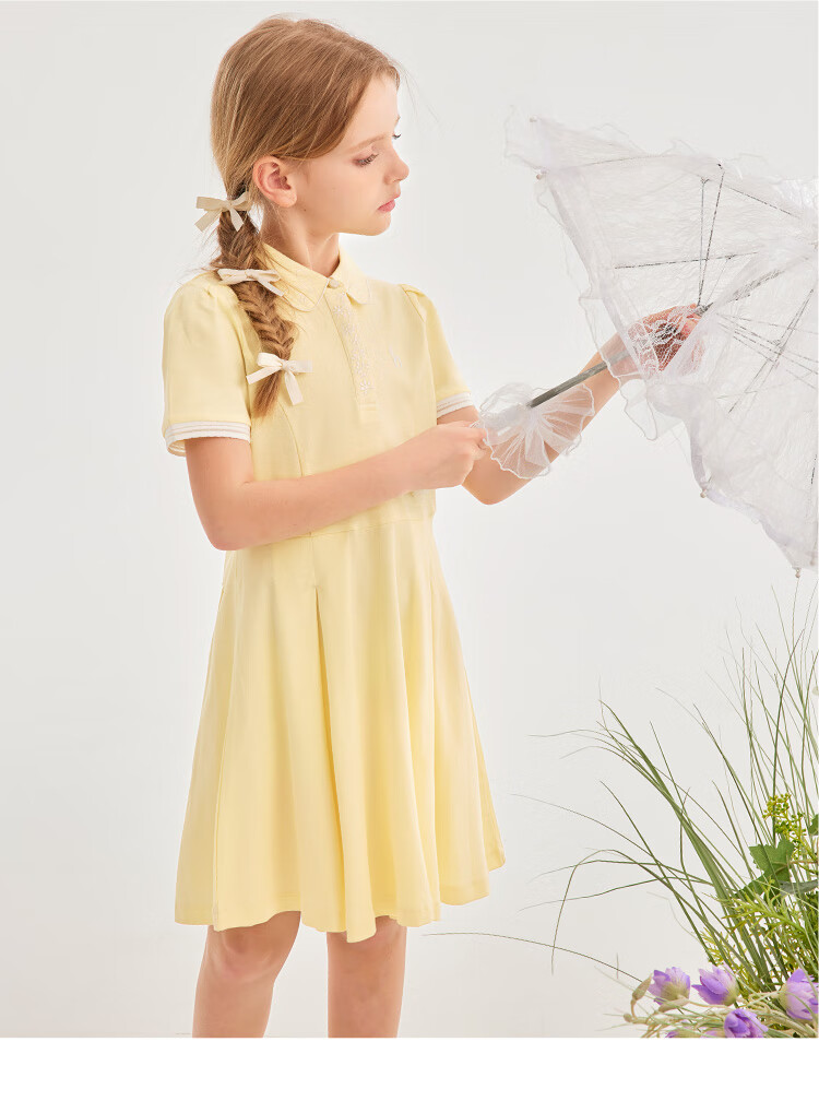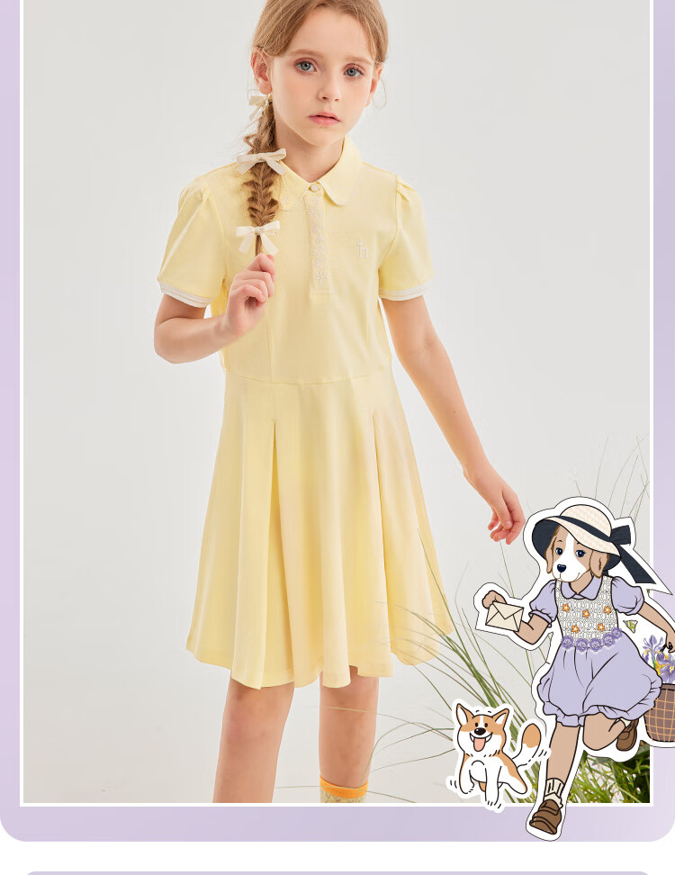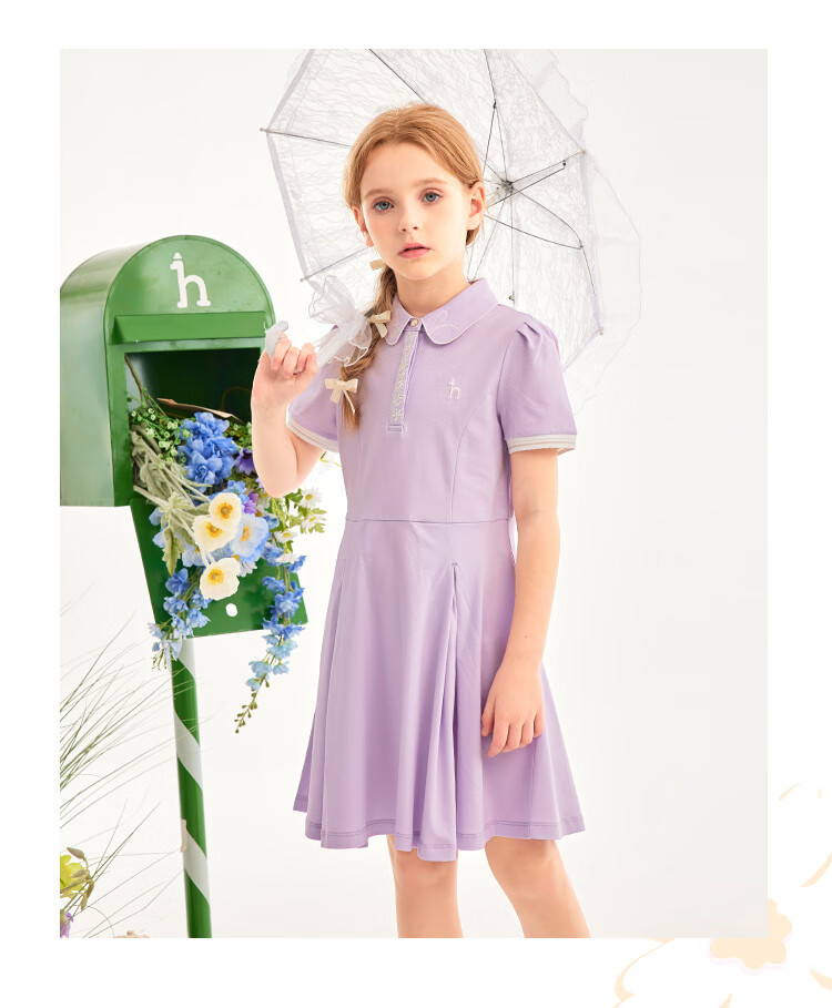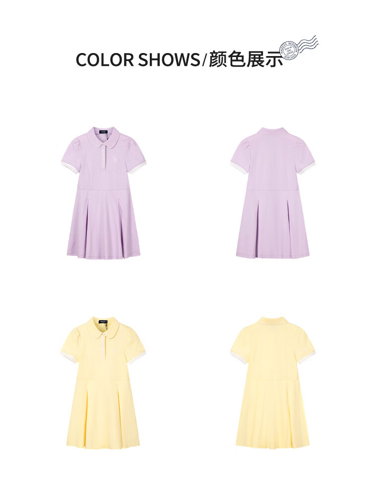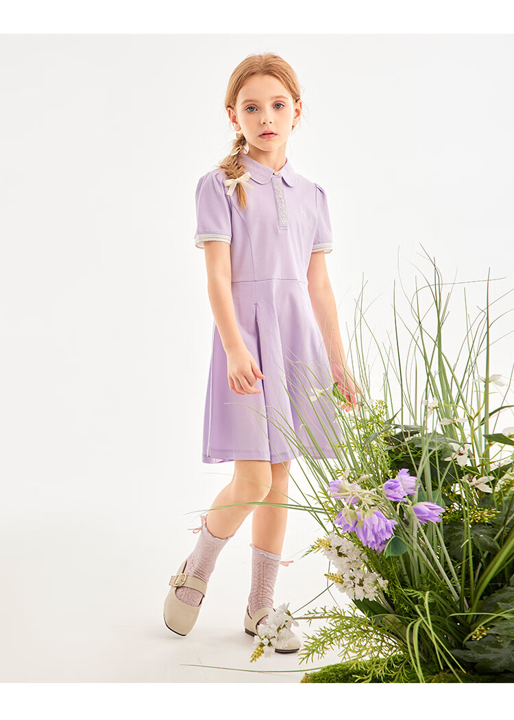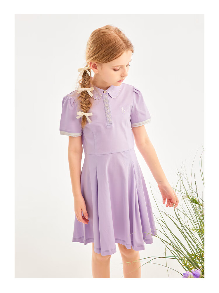 Haggis (HAZZYS) brand children's clothing girls dress new summer style comfortable thin elastic college style short-sleeved POLO skirt Ningxiang Purple 120