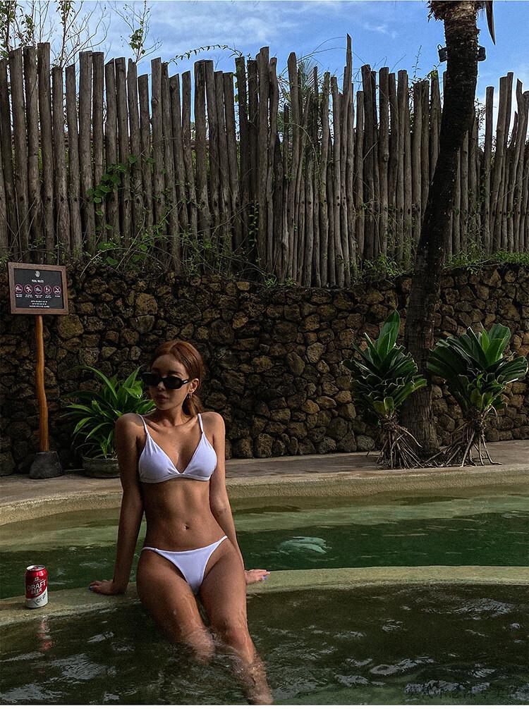 Modal swimsuit for women, super sexy revealing three-point bikini bikini, simple and high-end hot spring vacation wear, gray L