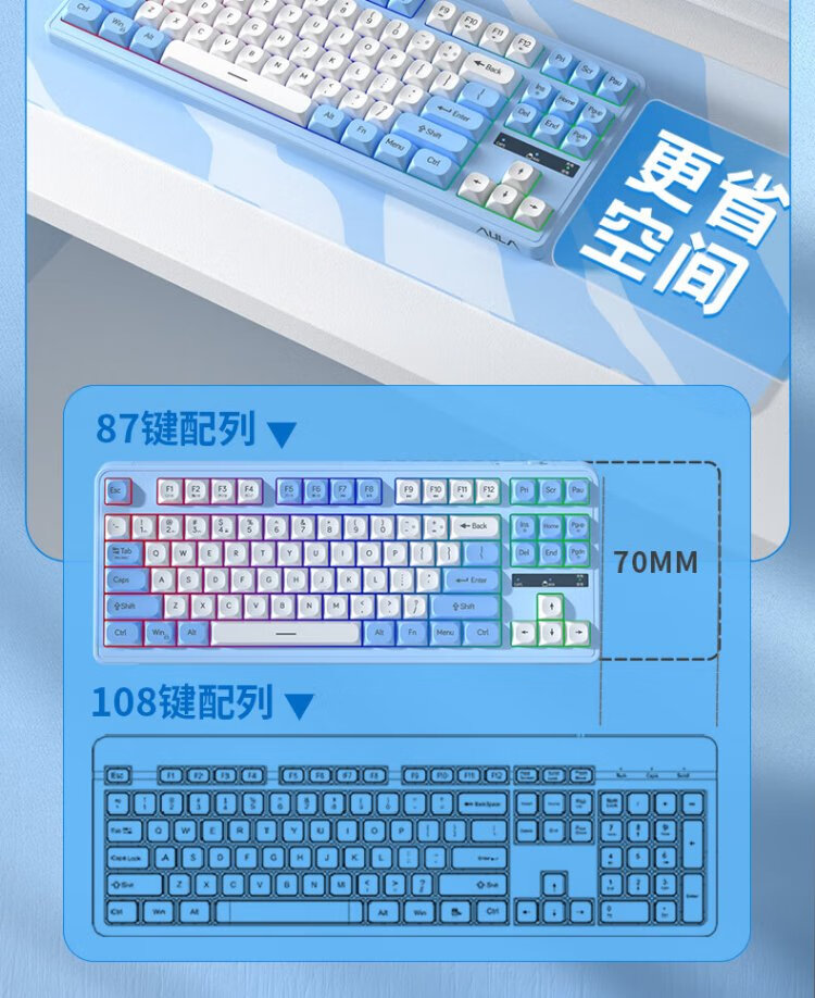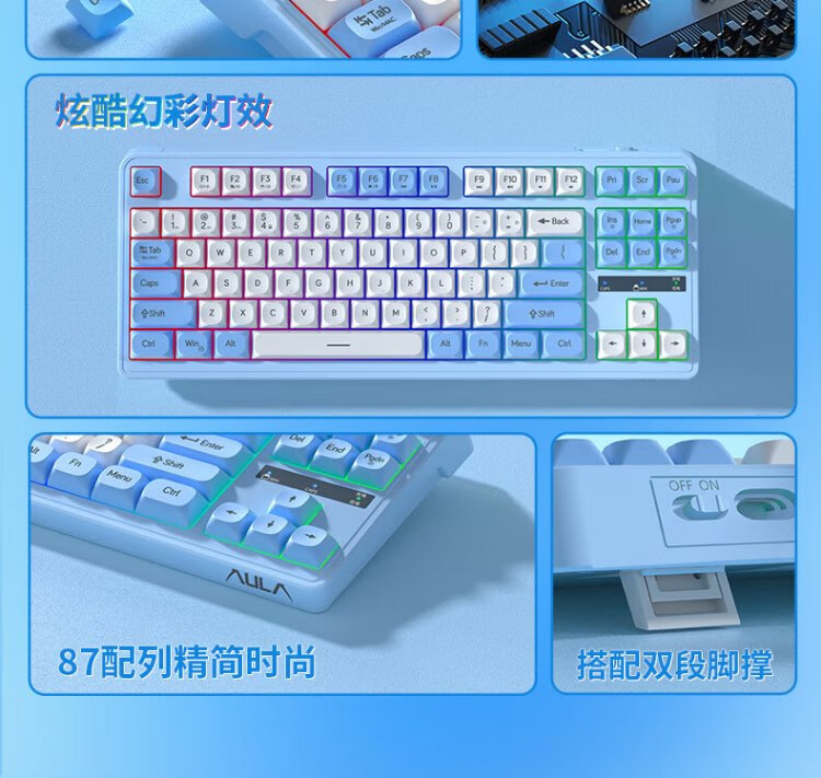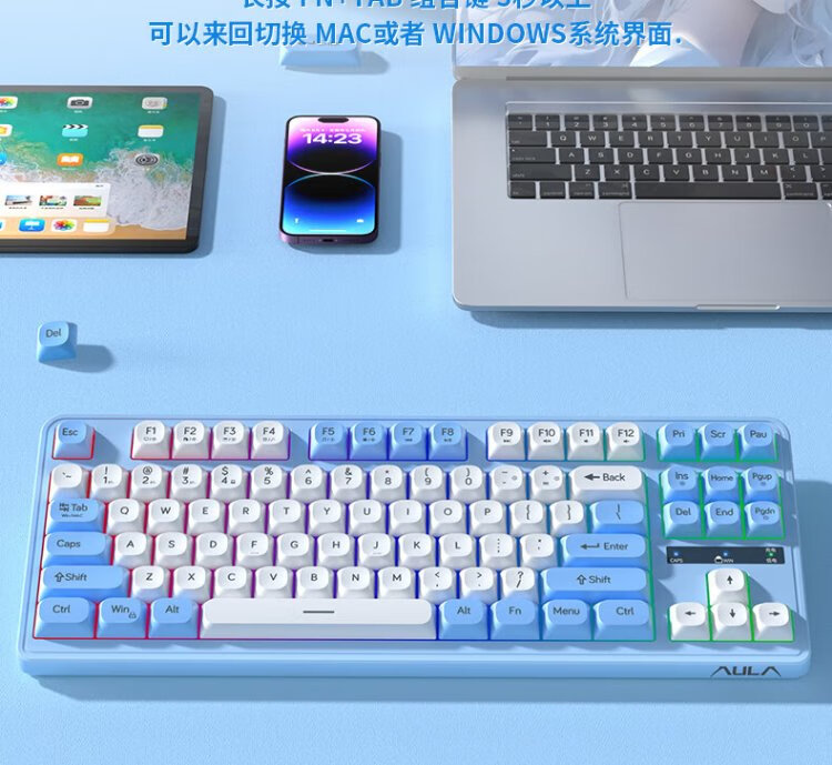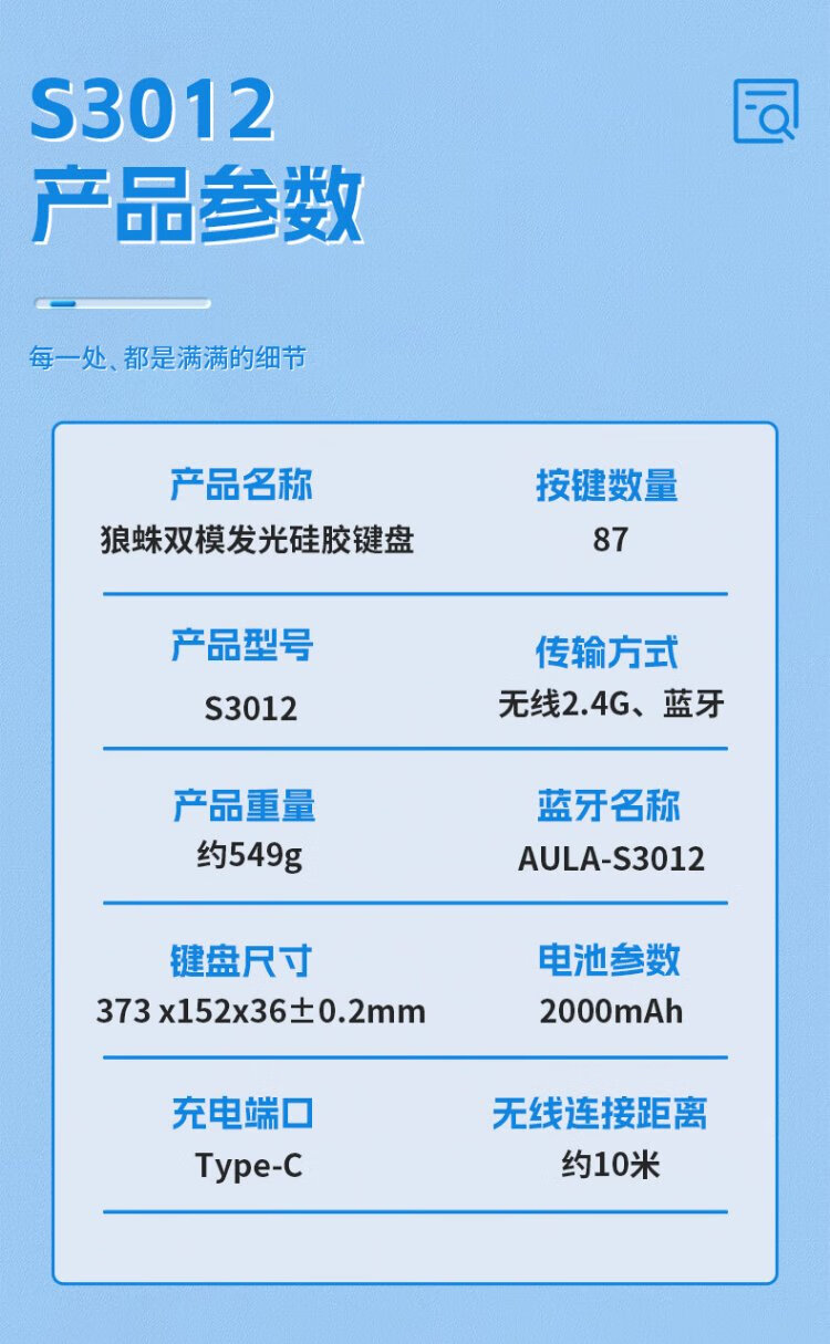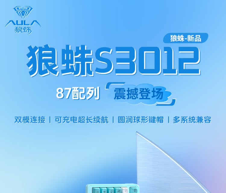 Wolf Spider (AULA) S3012 Wireless Bluetooth Dual Mode Keyboard Mechanical Feel RGB Backlight Silent 87 Key Mac Computer Keyboard Mouse Set Taoyaofen-Wireless Keyboard