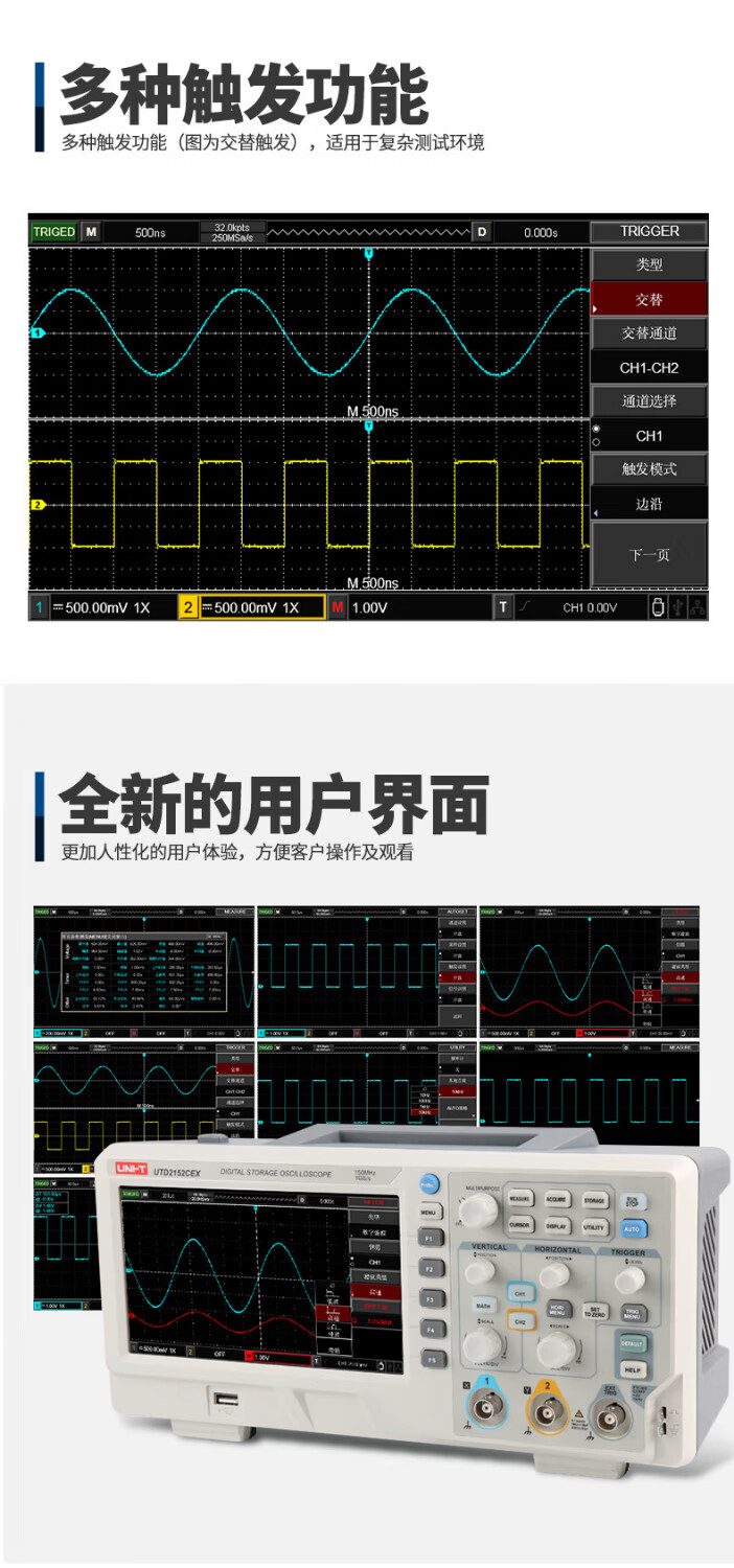 Uliide UTD2202CEX+ oscilloscope dual-channel bandwidth digital oscilloscope USB storage multi-function smart UTD2202CEX+