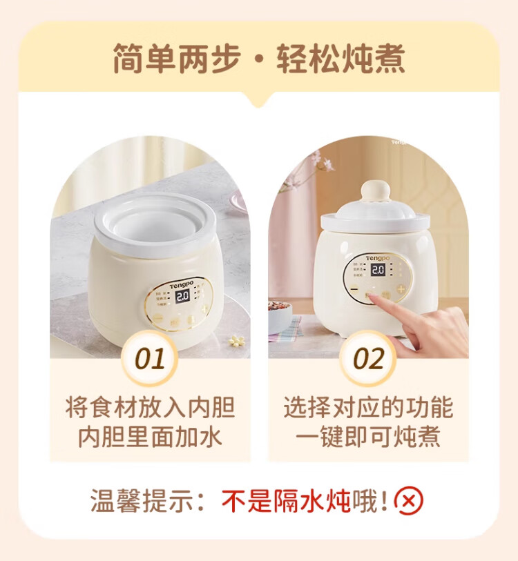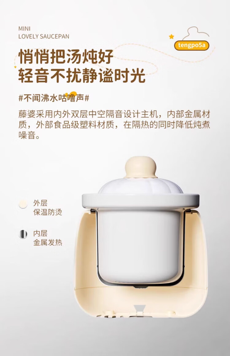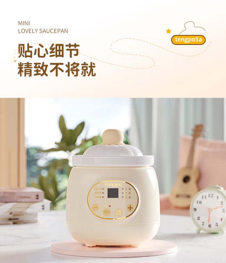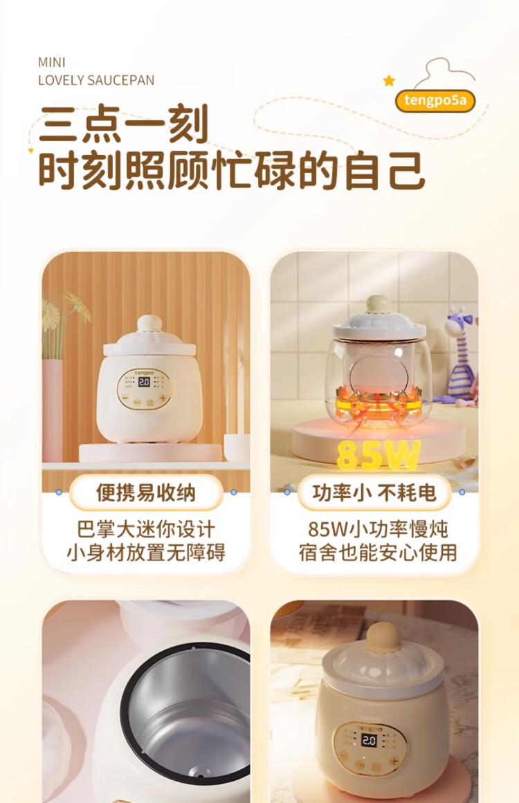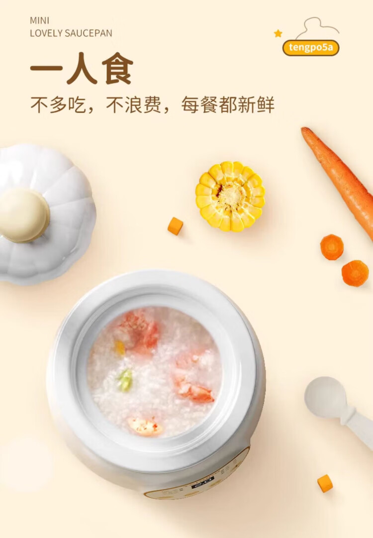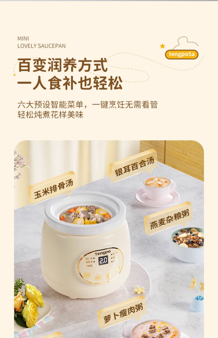 Tengpo (tengpo) mini electric stew pot, electric stew pot, one-person pot, ceramic bird's nest, small porridge cooker, one-person health care household soup pot 0.5L small capacity fully automatic electric pot, six functions, suitable for one person 0.5L
