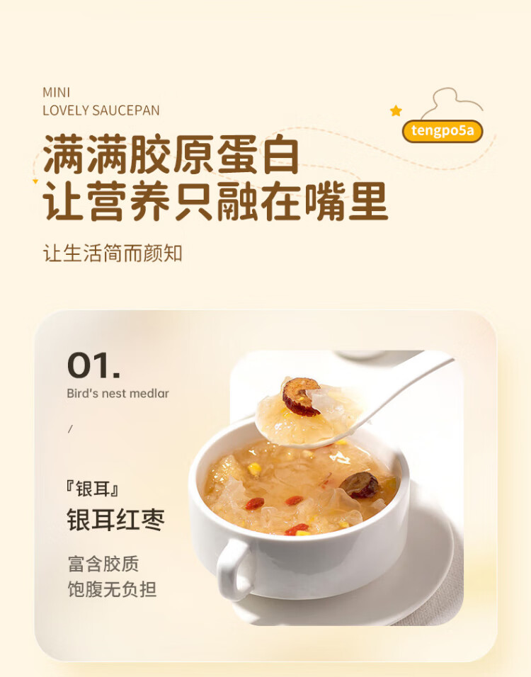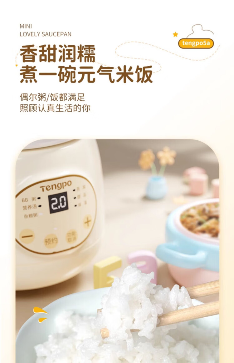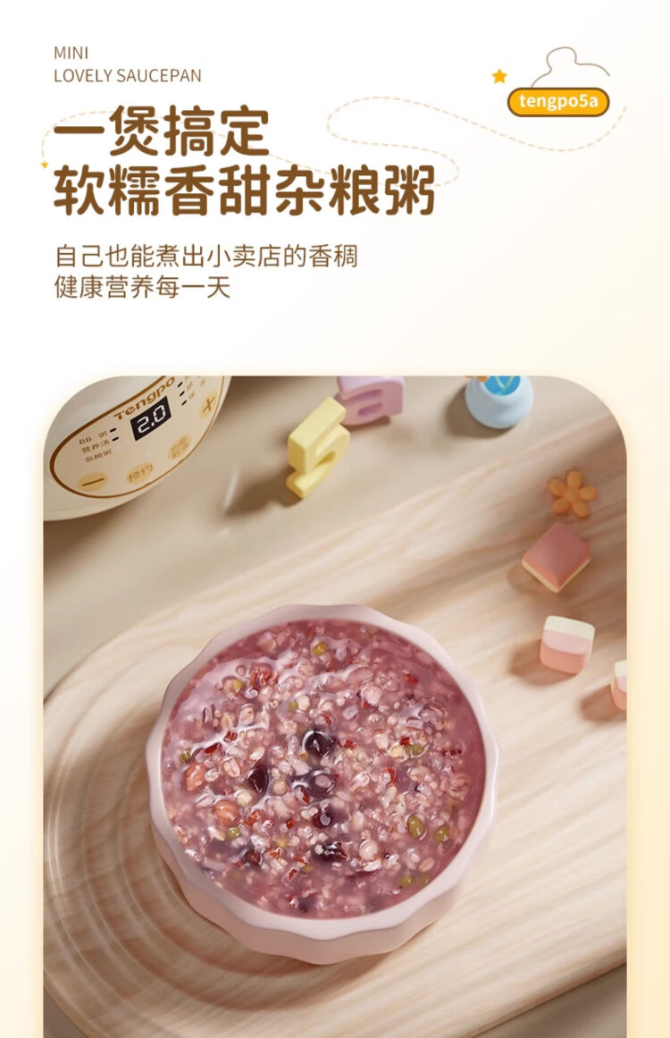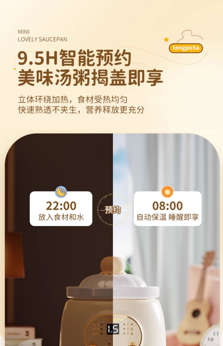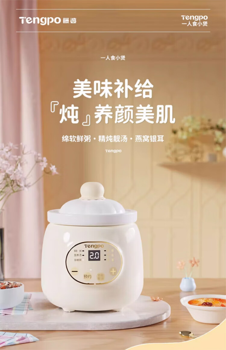 Tengpo (tengpo) mini electric stew pot, electric stew pot, one-person pot, ceramic bird's nest, small porridge cooker, one-person health care household soup pot 0.5L small capacity fully automatic electric pot, six functions, suitable for one person 0.5L