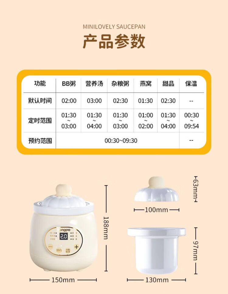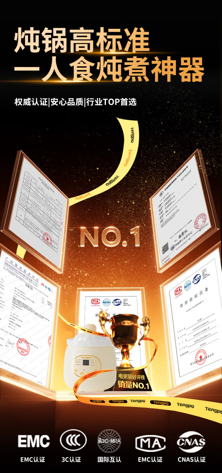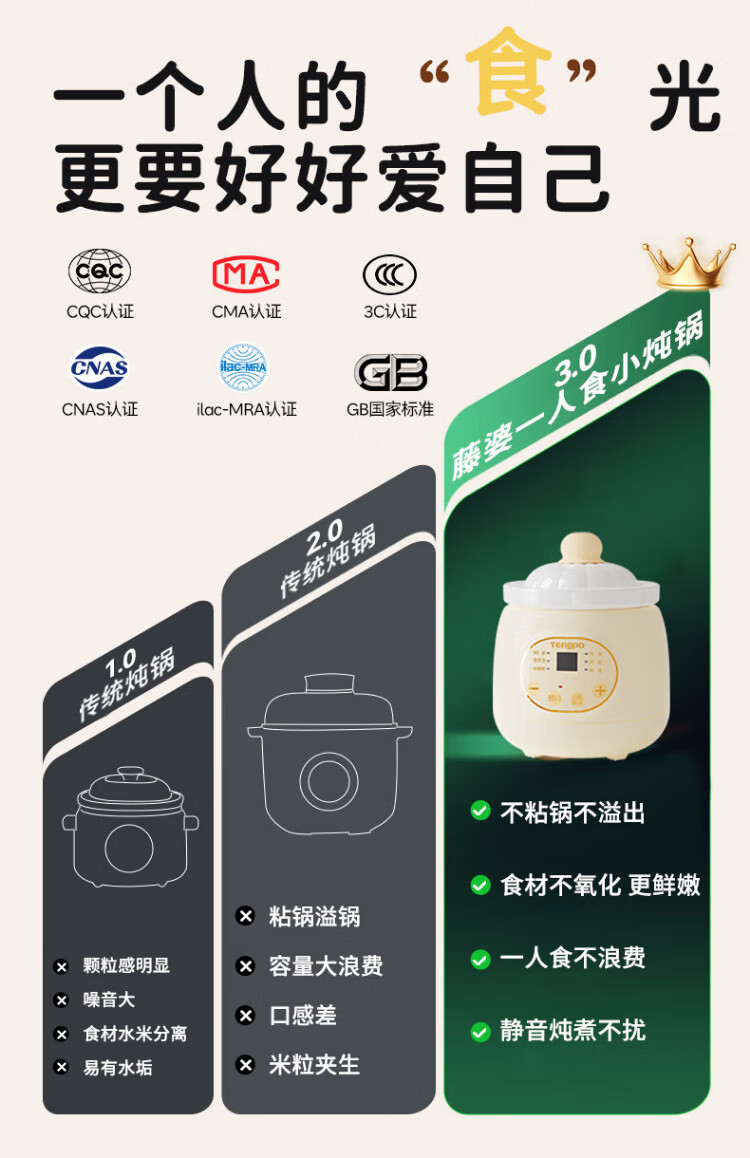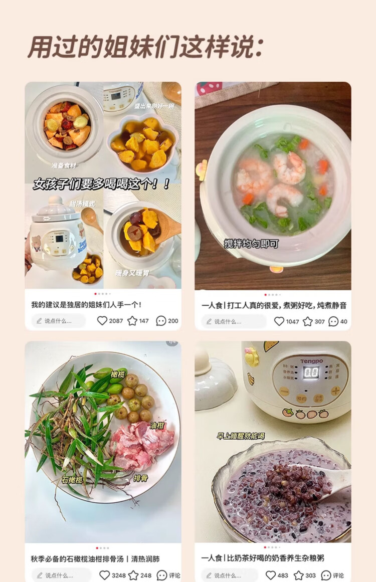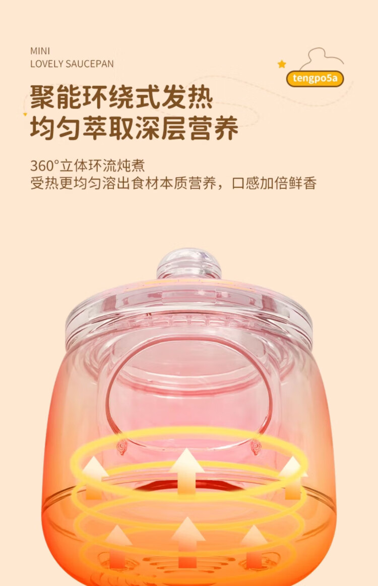 Tengpo (tengpo) mini electric stew pot, electric stew pot, one-person pot, ceramic bird's nest, small porridge cooker, one-person health care household soup pot 0.5L small capacity fully automatic electric pot, six functions, suitable for one person 0.5L