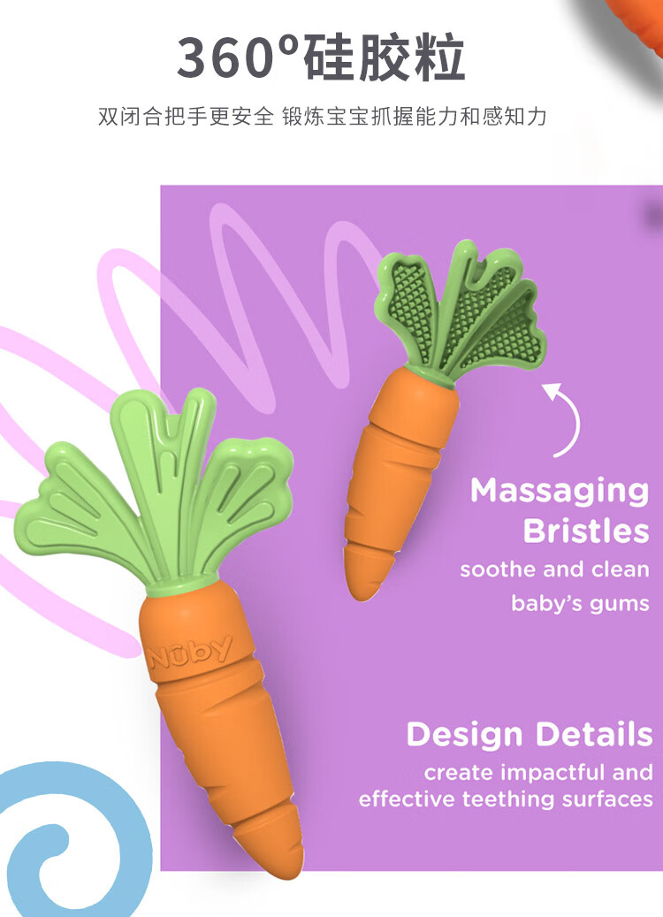 Nuby feeding supplies baby teether, baby teeth soothing teether set 3/6 months, chewable and boilable