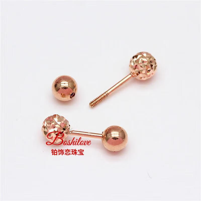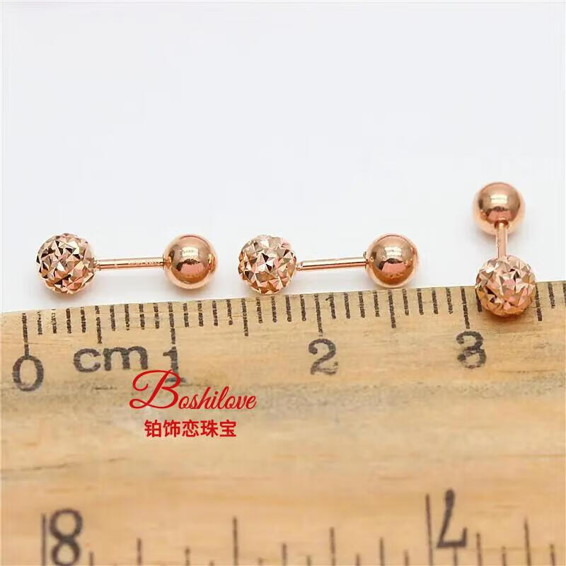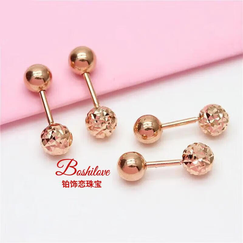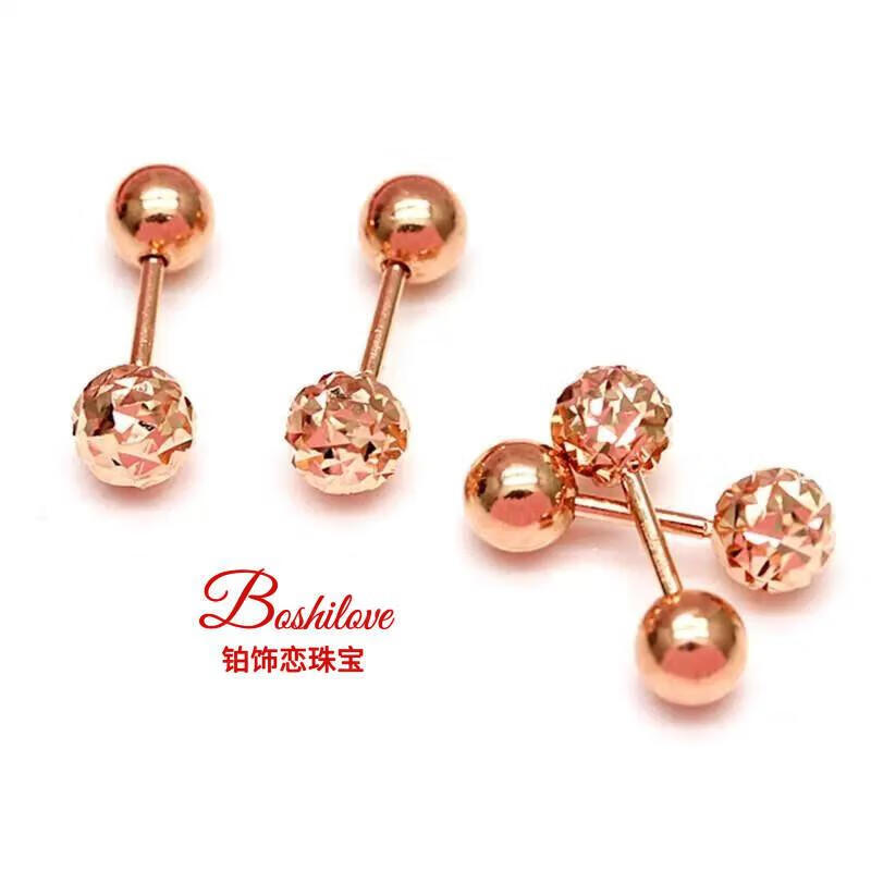 DL 1998 Fat Donglai same style purple gold earrings Kamathana Russian 585 simple glossy bean plated 14K color gold screw bean earrings (pair of rose gold)