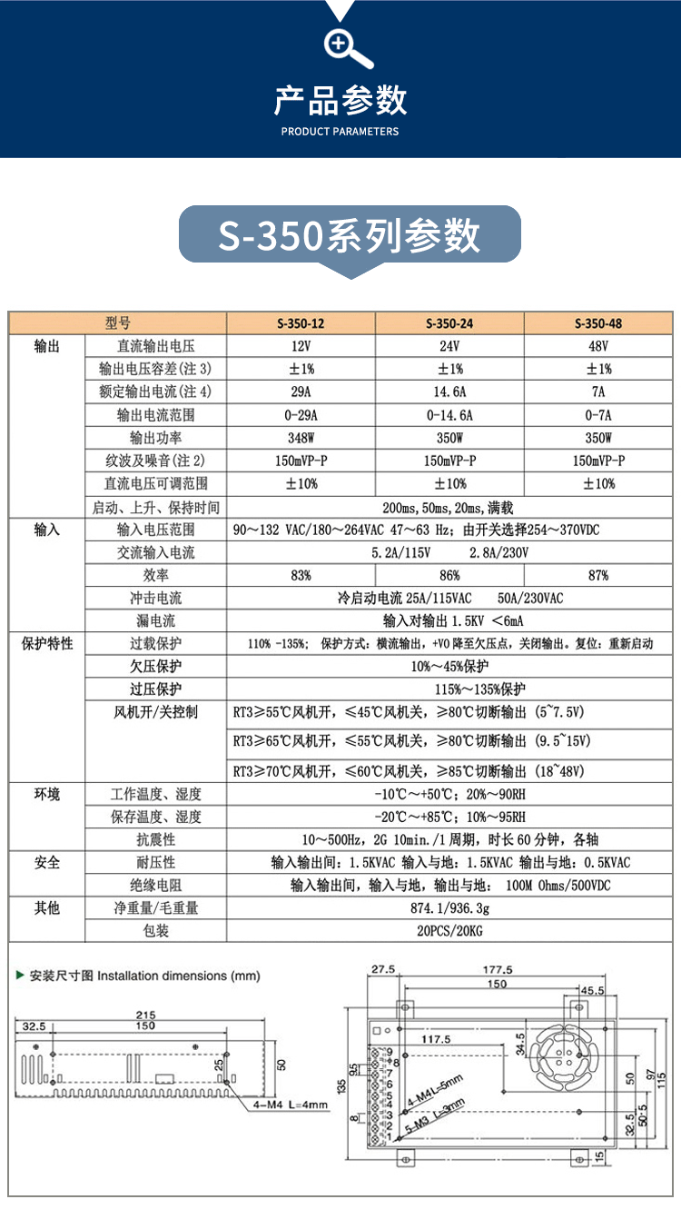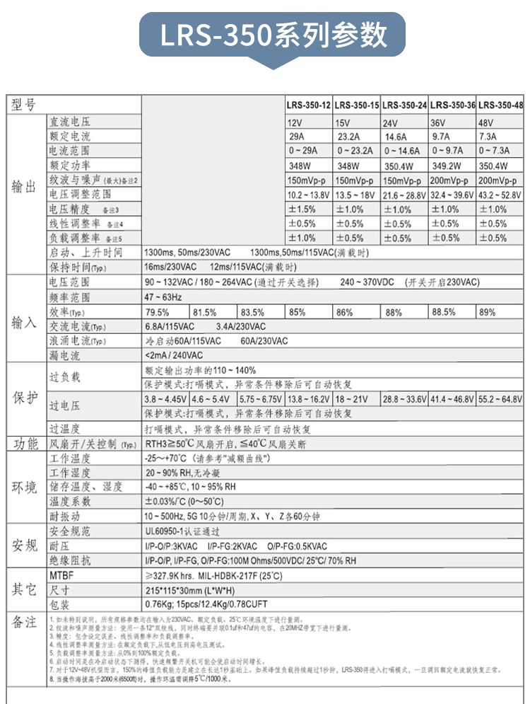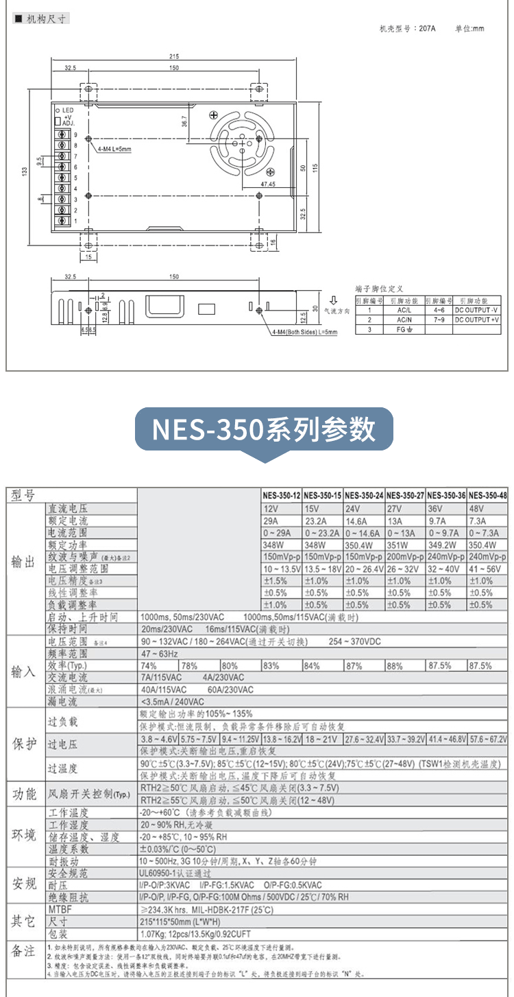 350W switching power supply LRS NES S-350-24V14.6A 5V12V15V27V36V S-350-12 12V/29A