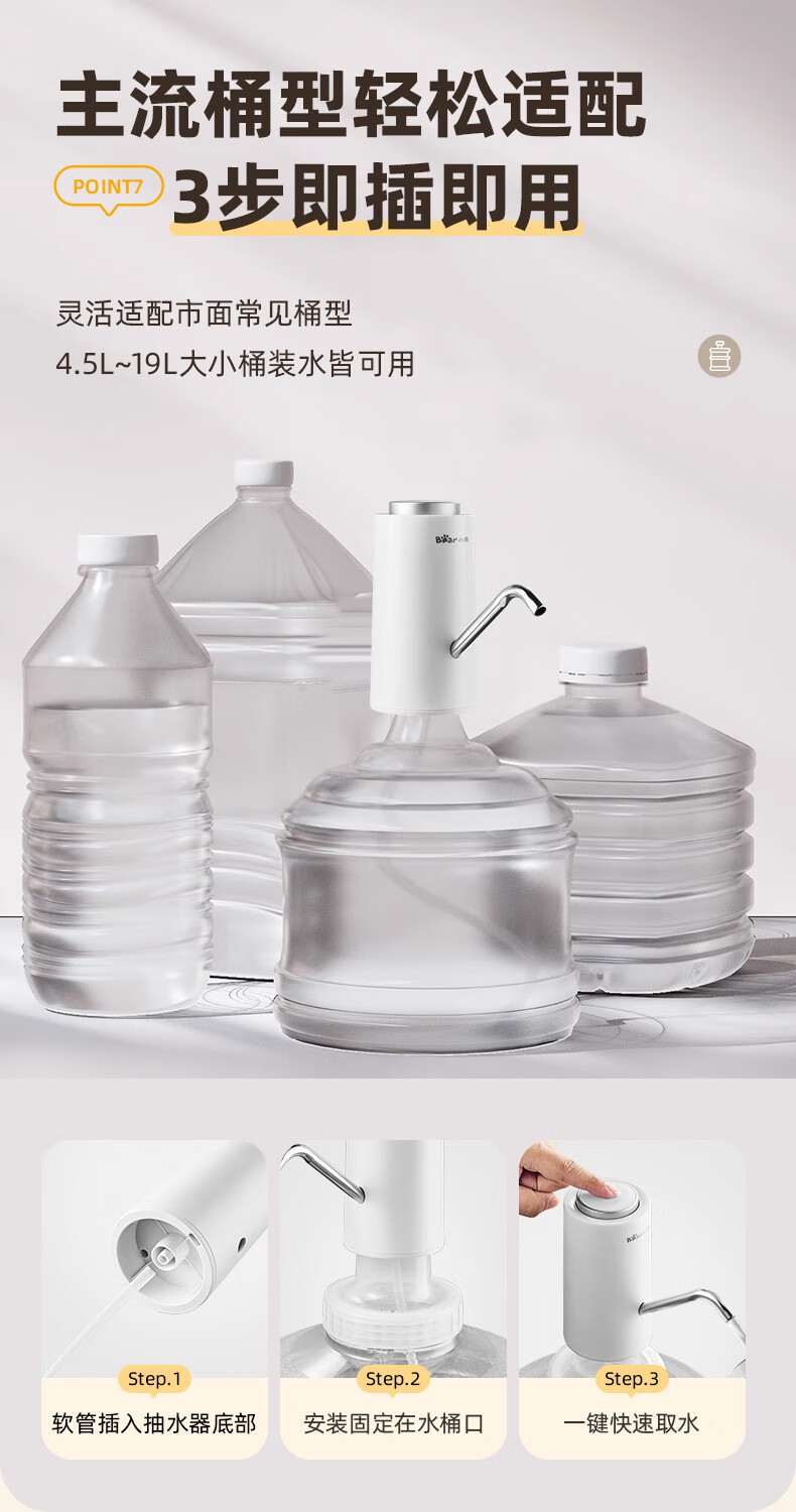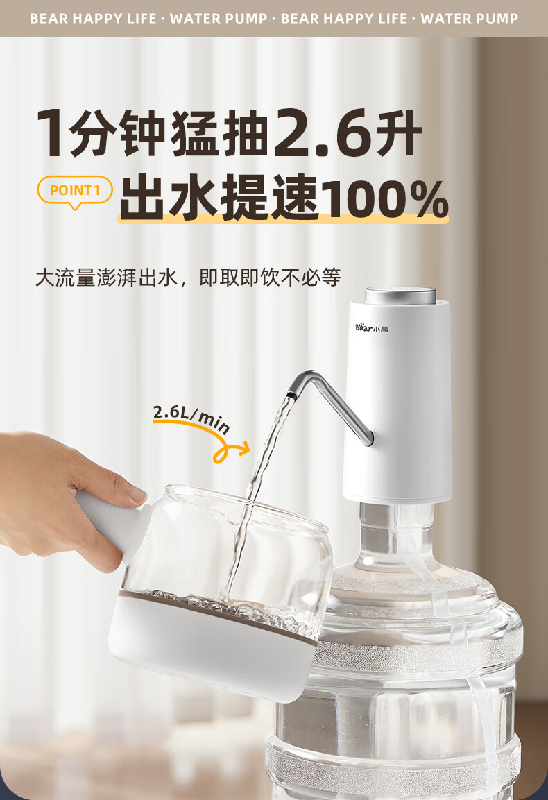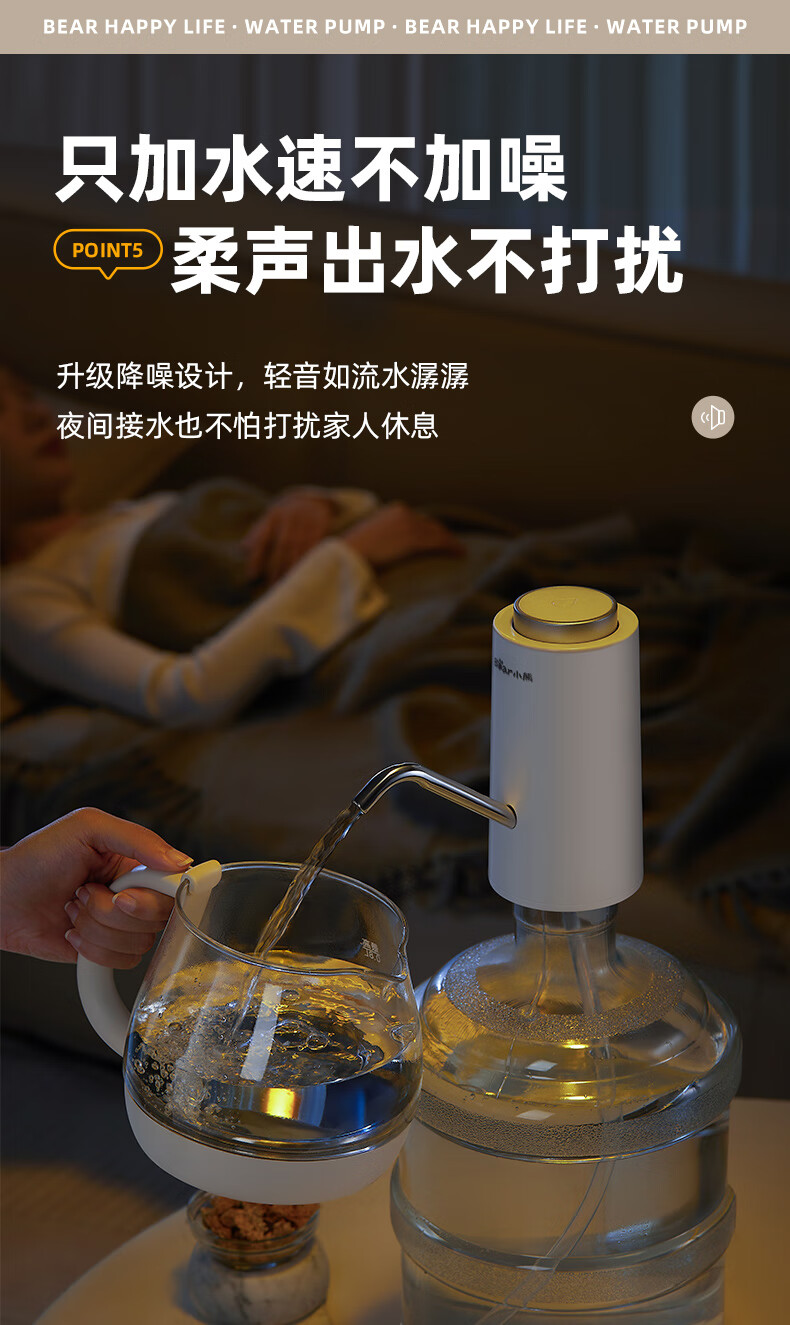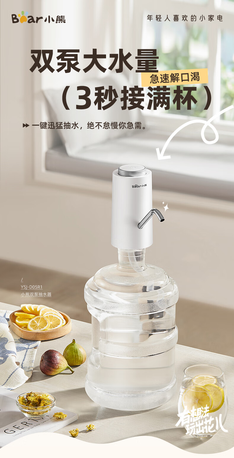 Bear Electric Bottled Water Pump Double Pump Powerful Pumping Pure Drinking Water Automatic Water Filler Pressure Water Dispenser Water Pump Official Direct Sales 316 Stainless Steel YSJ-D05R1