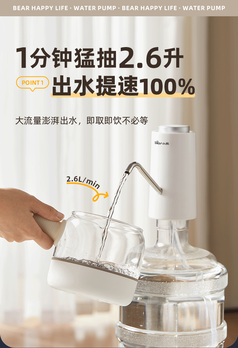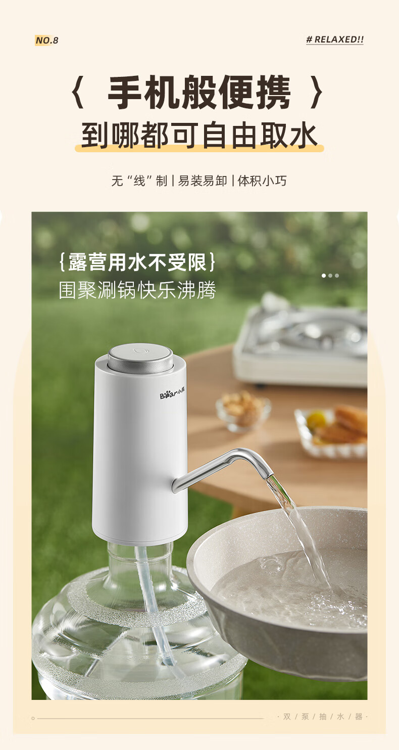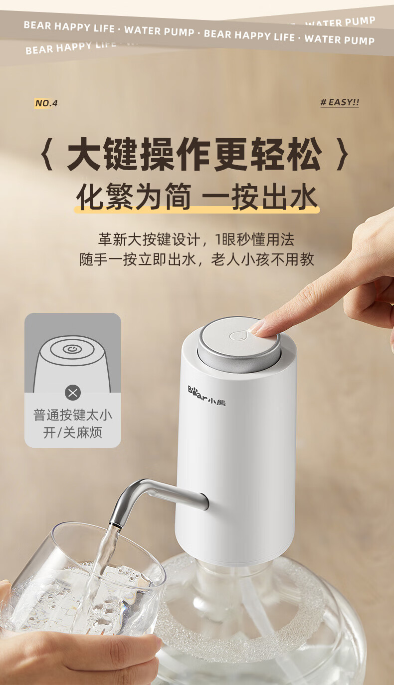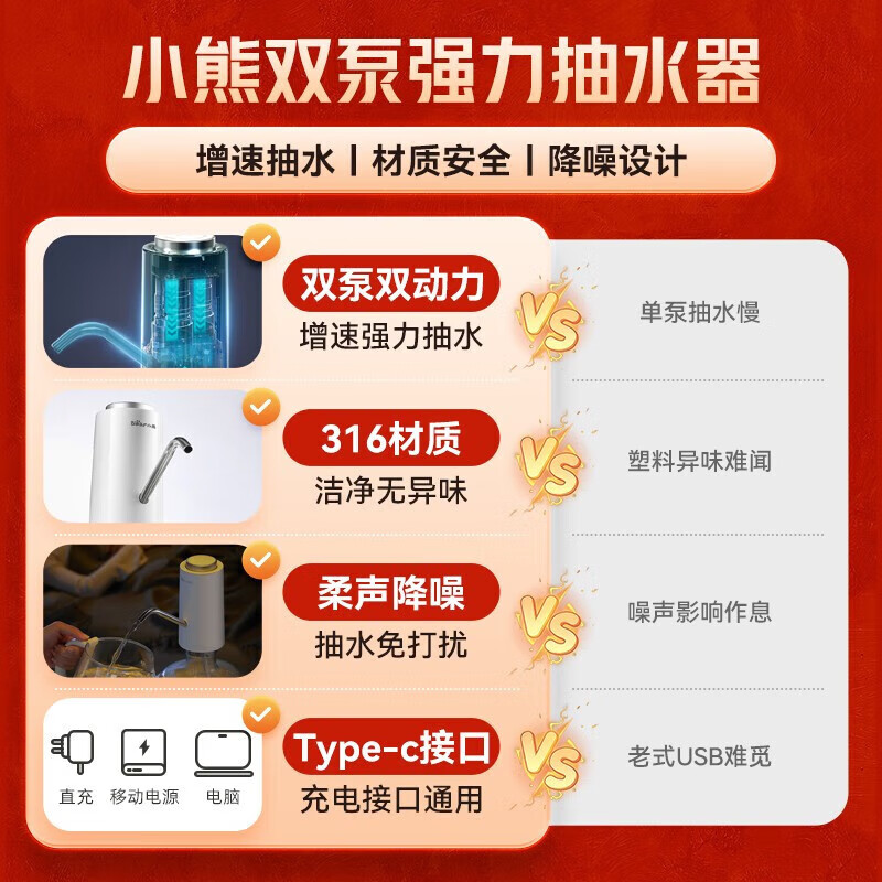 Bear Electric Bottled Water Pump Double Pump Powerful Pumping Pure Drinking Water Automatic Water Filler Pressure Water Dispenser Water Pump Official Direct Sales 316 Stainless Steel YSJ-D05R1