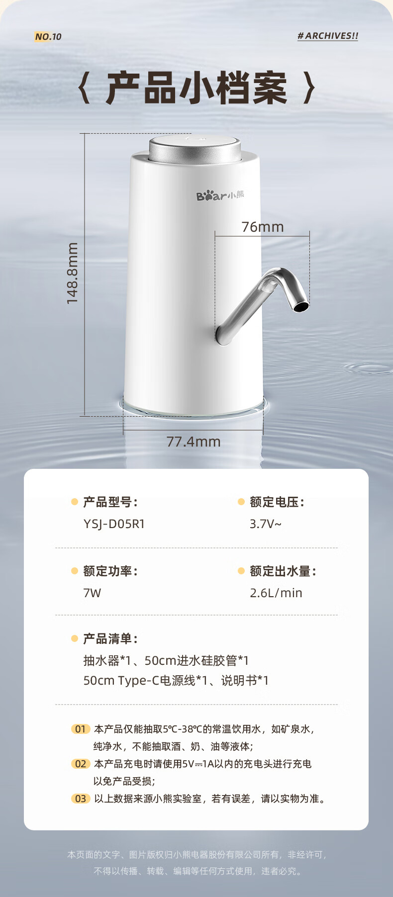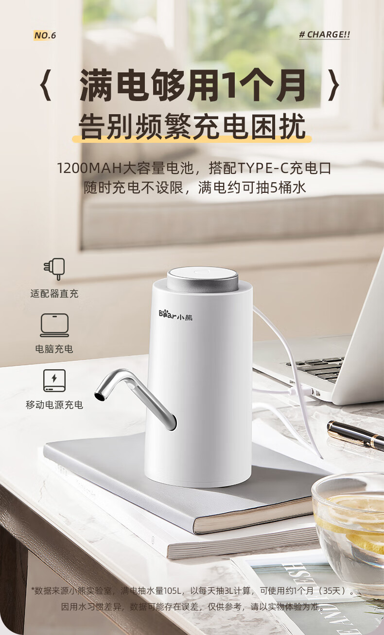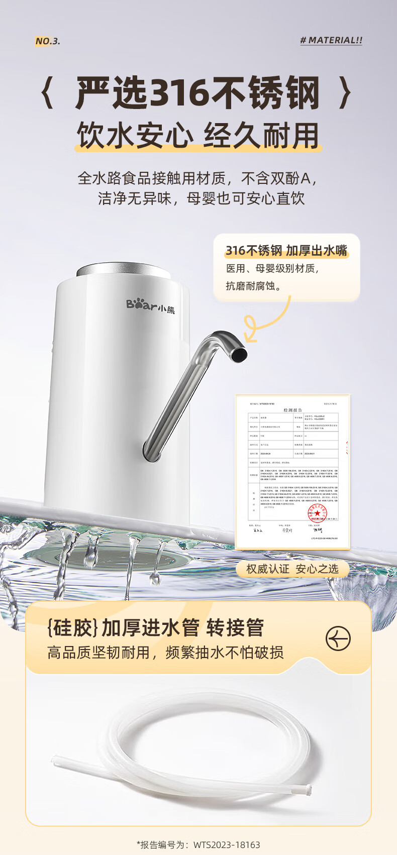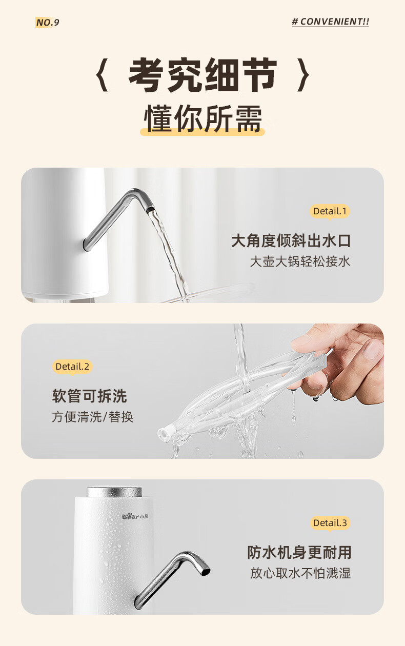 Bear Electric Bottled Water Pump Double Pump Powerful Pumping Pure Drinking Water Automatic Water Filler Pressure Water Dispenser Water Pump Official Direct Sales 316 Stainless Steel YSJ-D05R1
