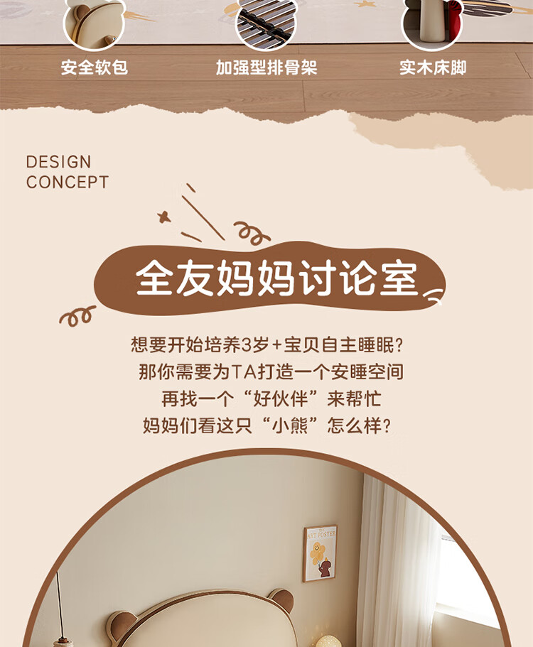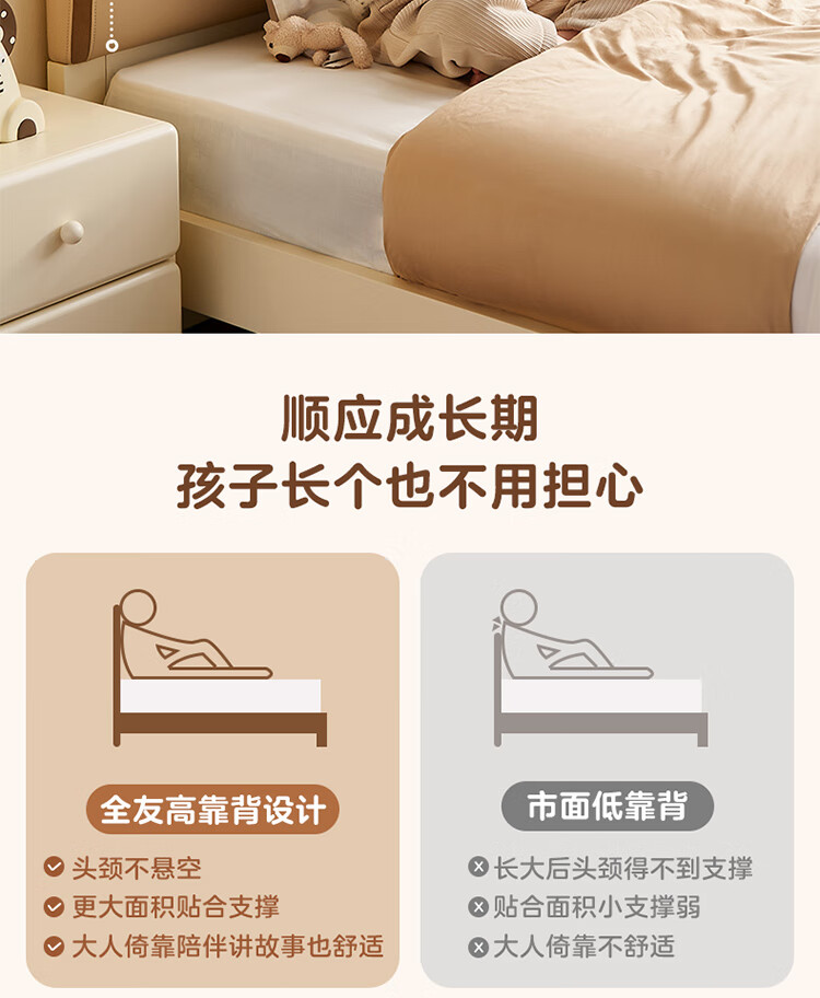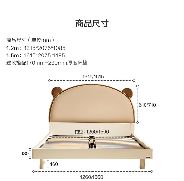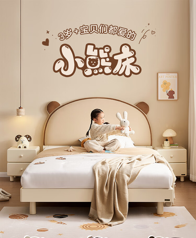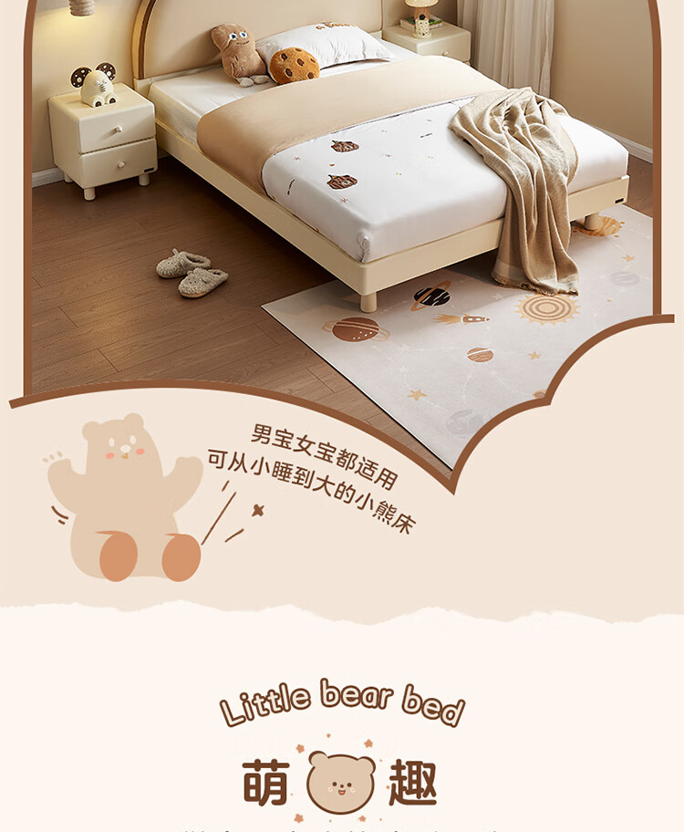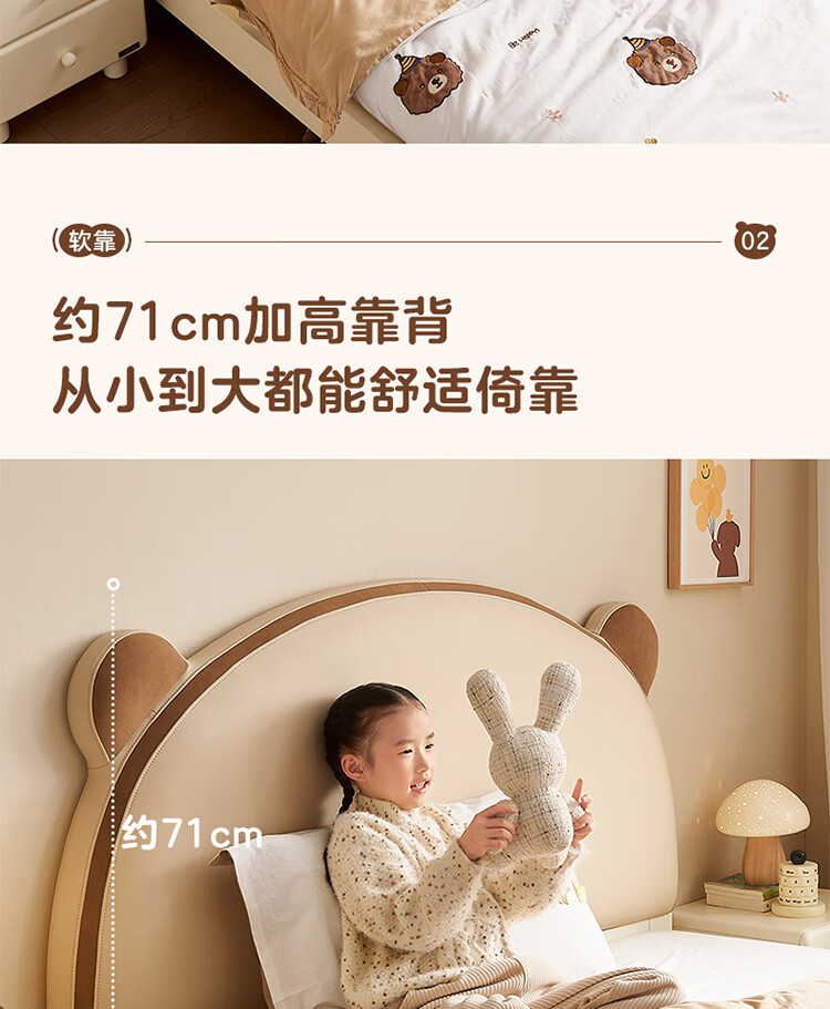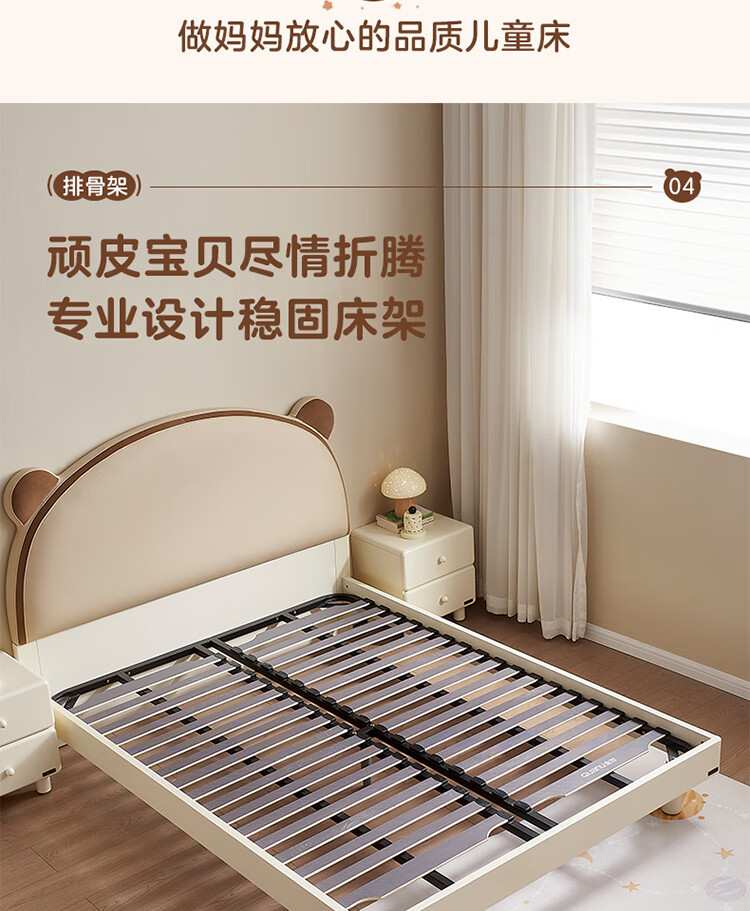 Quanyou Home Leather Art Soft Bed for Children's Room 1.2x2m Boys and Girls Solid Wood Leg Single Small Bed Secondary Bedroom Furniture 1.5m Children's Bed