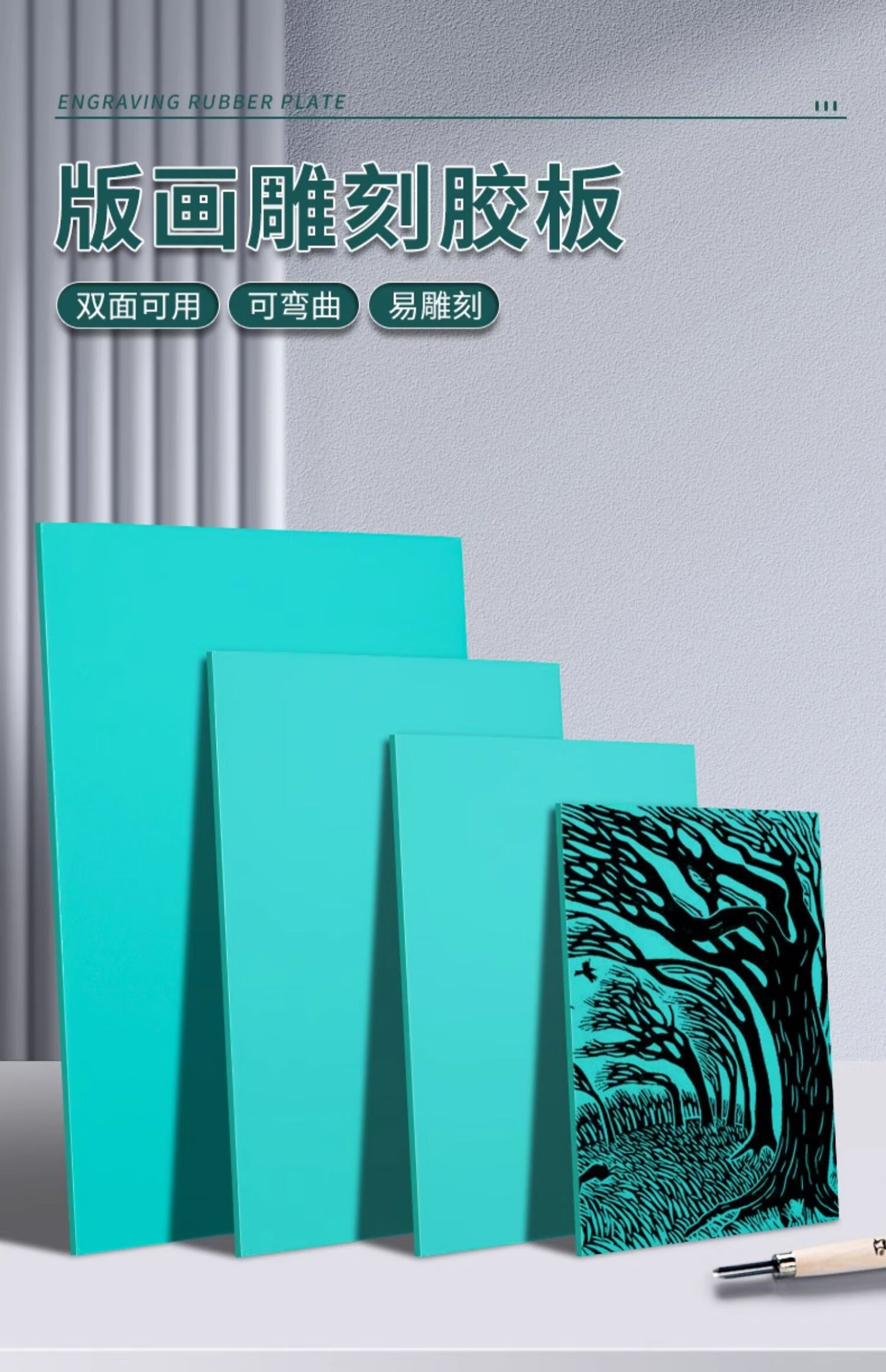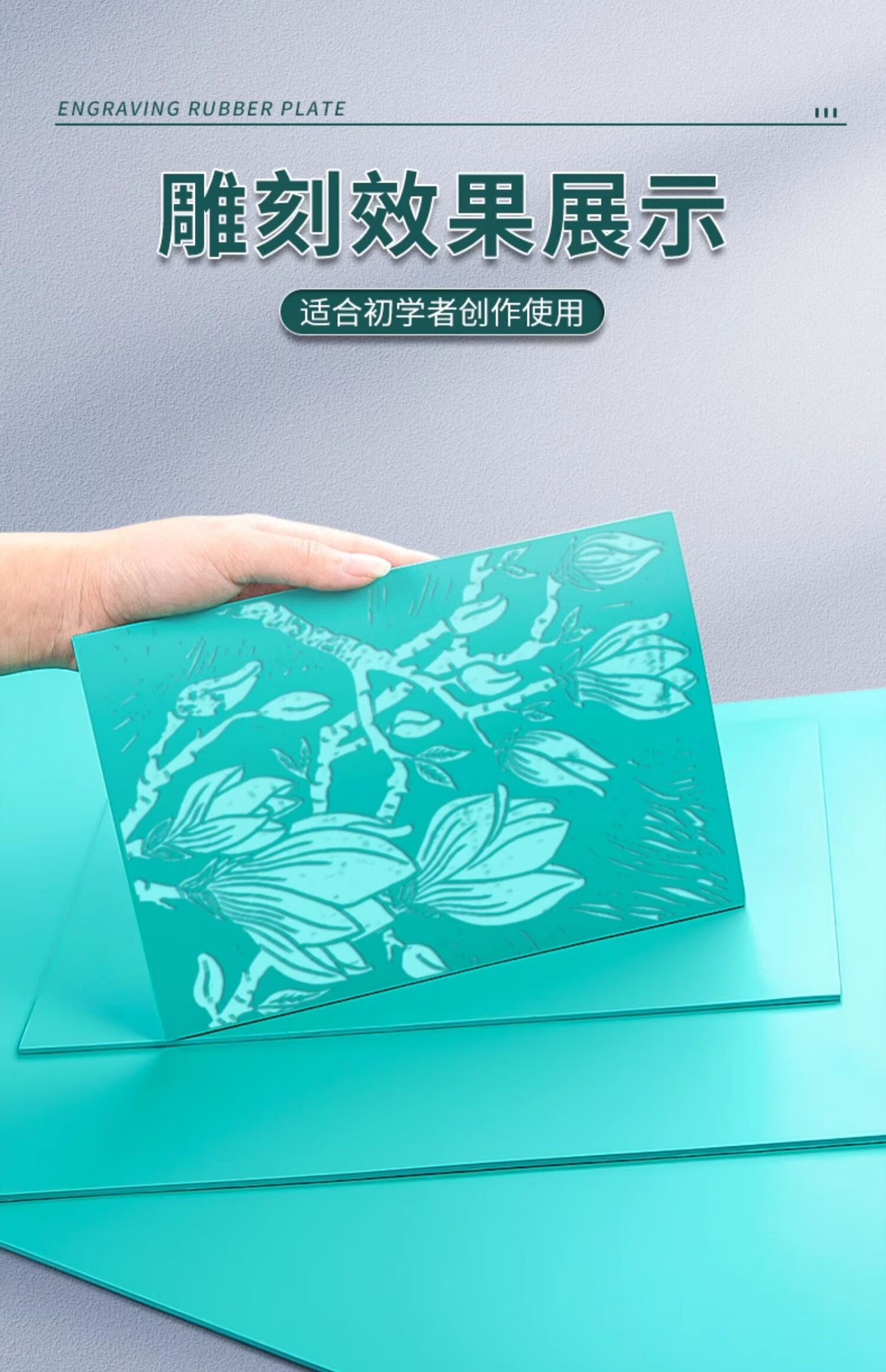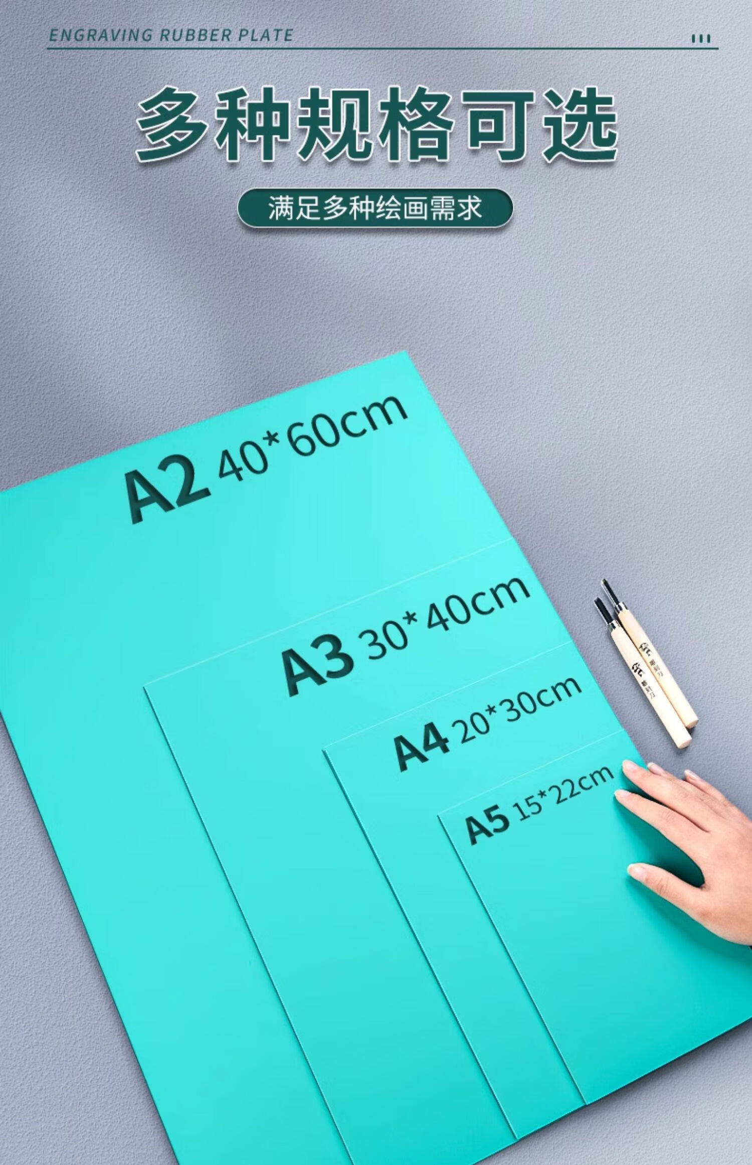 Printmaking offset plate A4 green pvc soft rubber plate A5 engraving plate handmade carving knife carving tool woodworking carving knife DIY model wood carving knife printmaking tool set Printmaking offset plate A5+A4 2-piece set