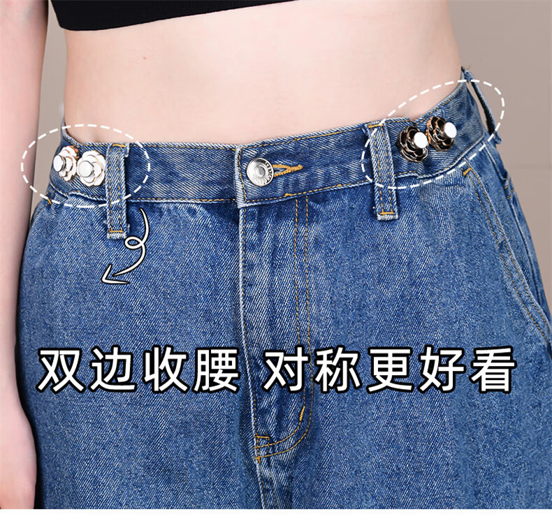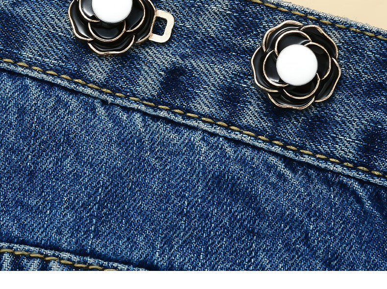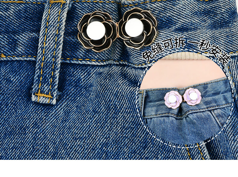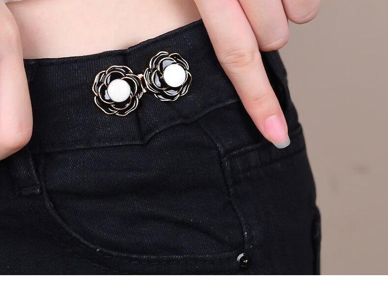 Zhuo Keke Camellia Waist Buckle, Seam-free Adjustable Buckle, Waist Tightening Magic Device, Fixed Button Big to Small, Invisible Buckle, Black + Off-White, 2 Pairs