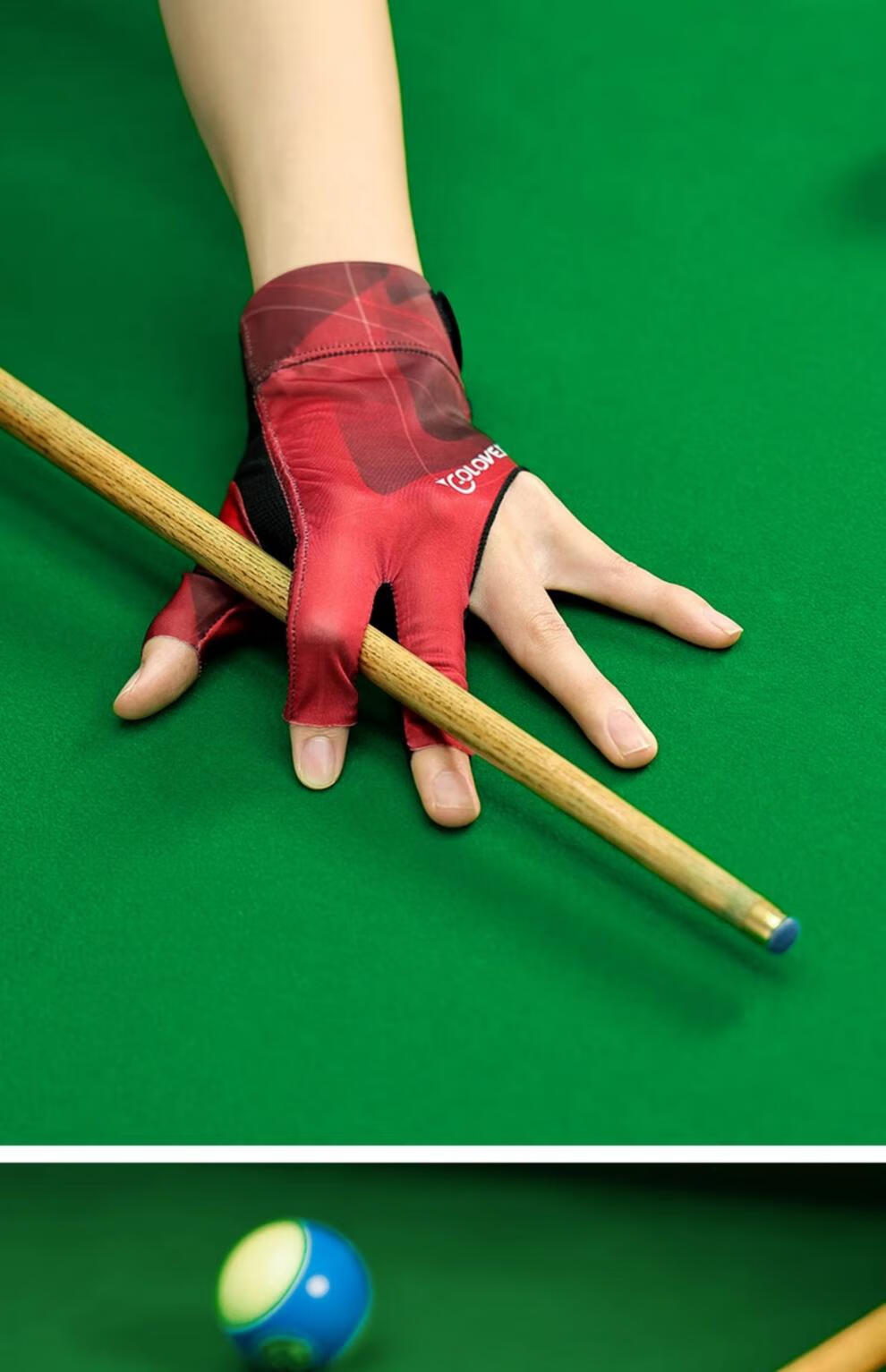 BABUDI Professional Billiards Gloves Thin Three Finger Breathable Anti-Slip Fingerless Table Tennis Gloves for Men Cherry Red (Single Left Hand) One Size