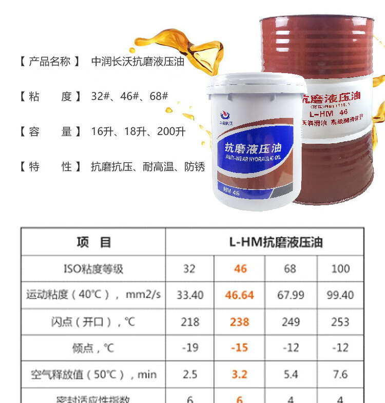 Anti-wear hydraulic oil high pressure HD No. 46 32# forklift excavator dry Jin Jin equal to 0.5 kg top forklift 68# large barrel 18 liters 46# hydraulic oil ordinary 200 liters
