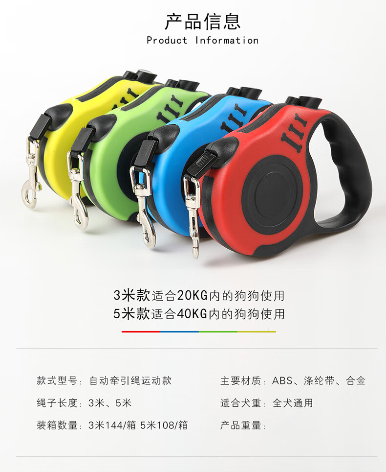 JD Logistics Automatic Leash Dog Leash Automatic Retractable Rope Small and Medium-sized Dogs Non-Legging Pets 5M Random Colors OPP Bag Packaging