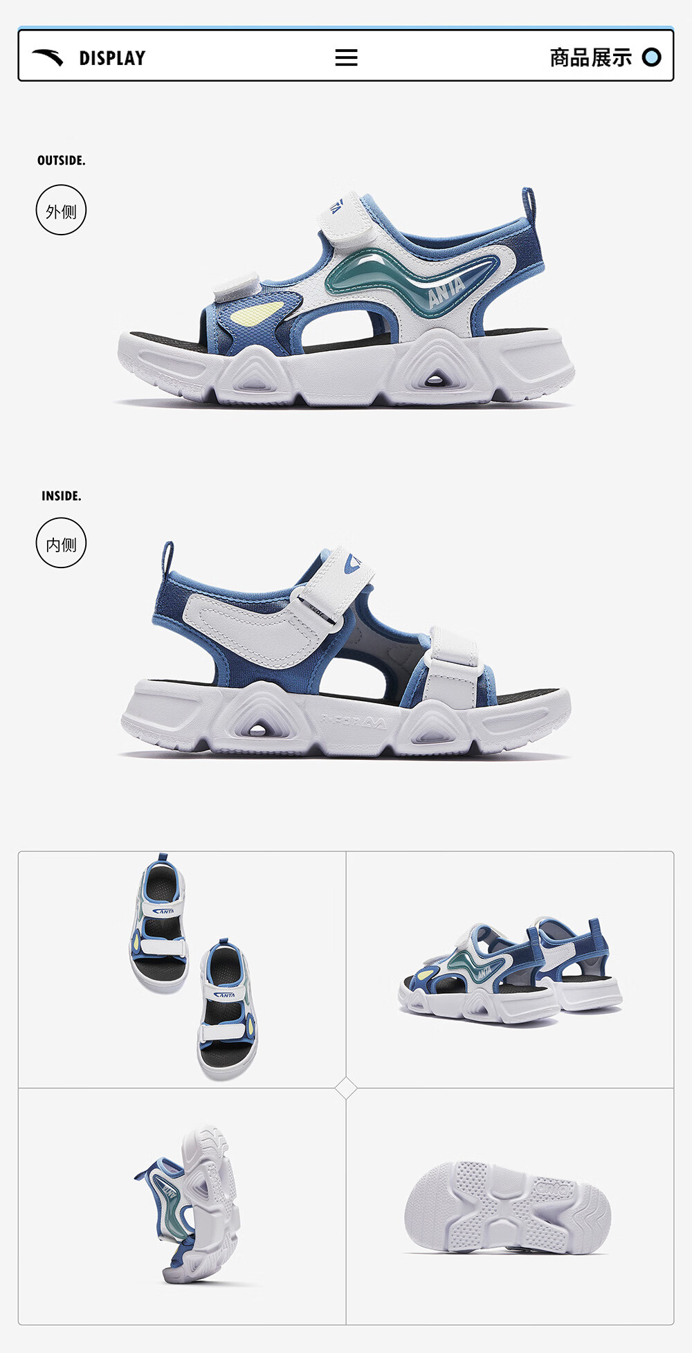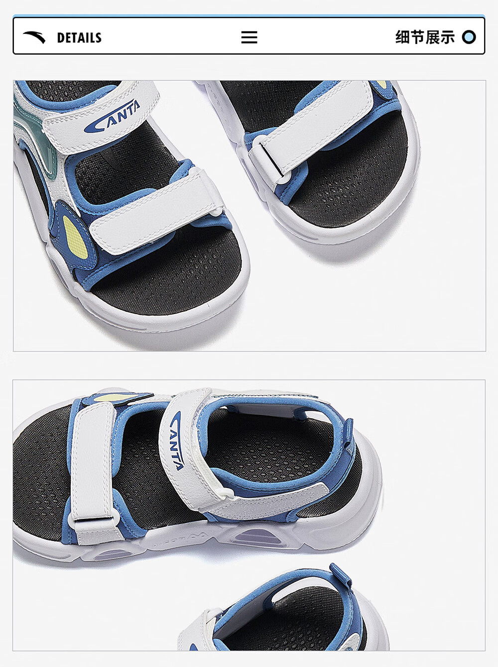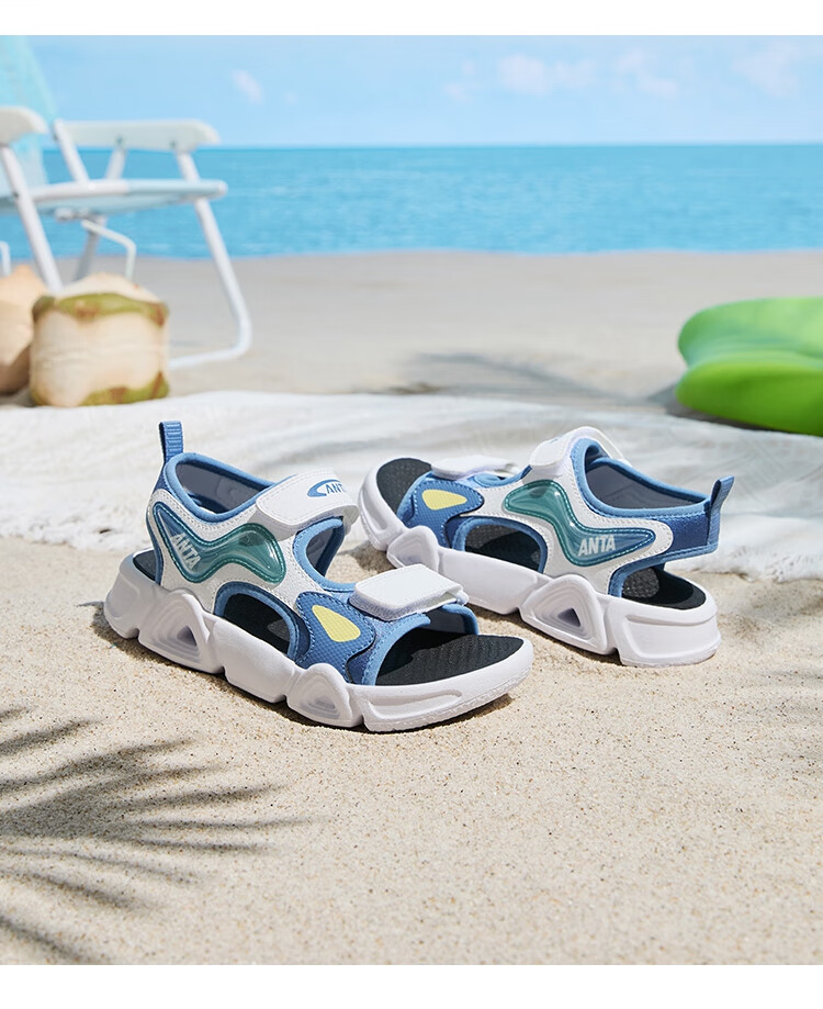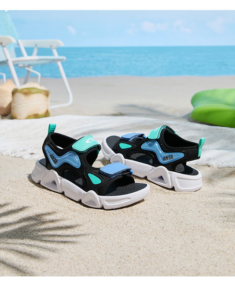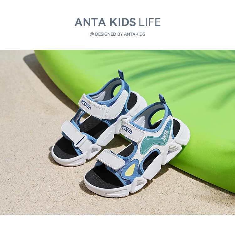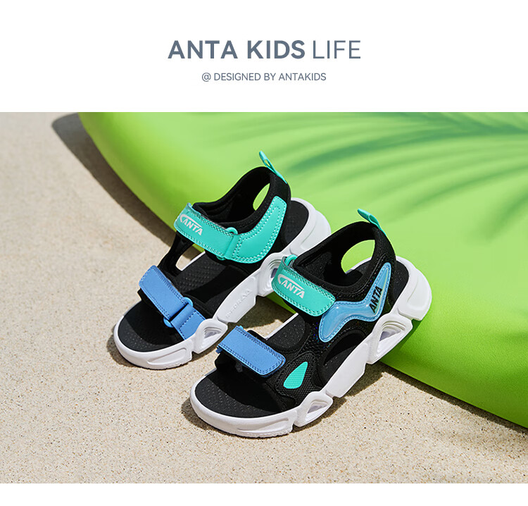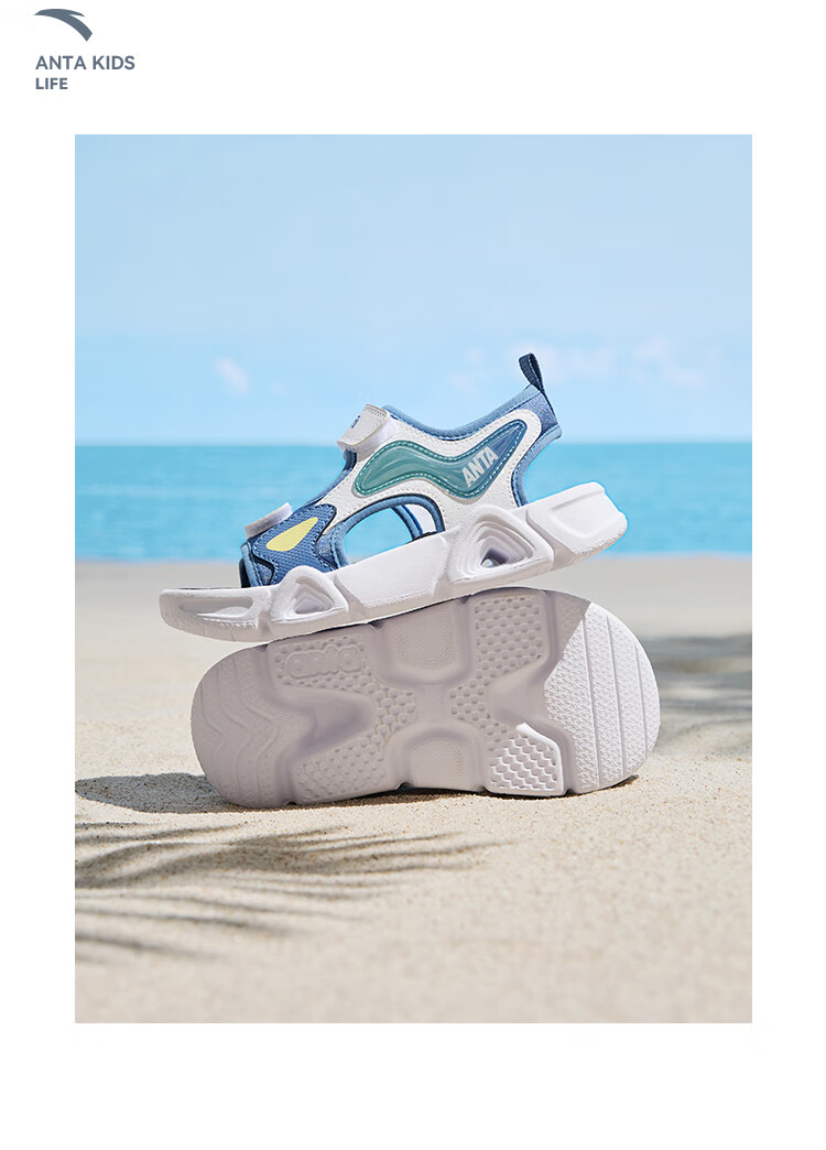 ANTA children's sandals for boys and girls, summer open-toe soft-soled sports comfortable arch sandals, women's white/light fog purple/black-1 29 shoe inner length 18cm
