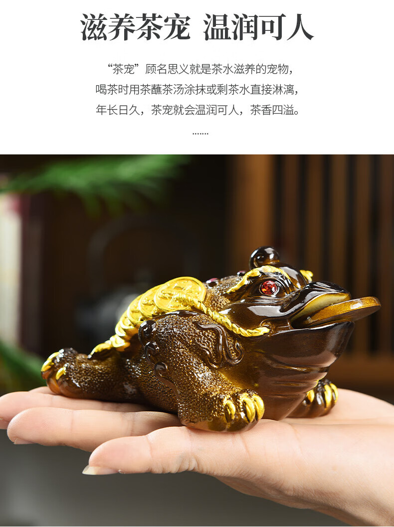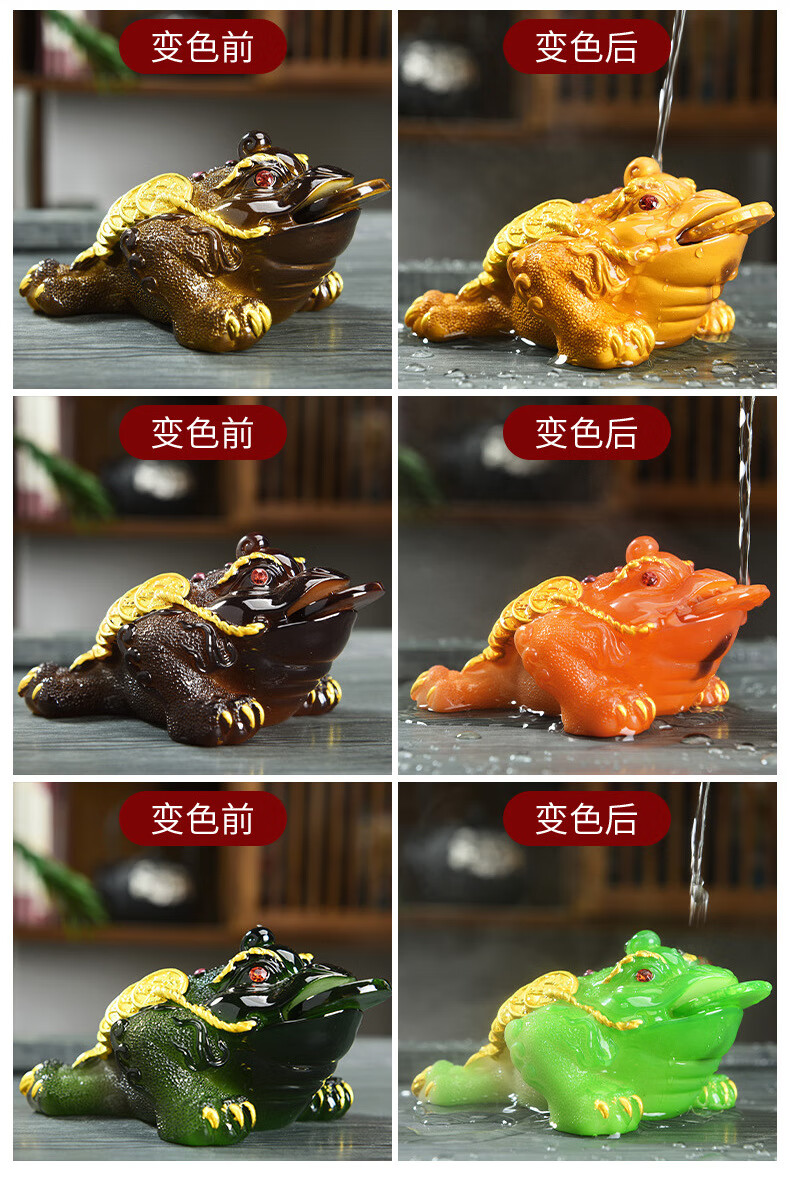 Qingtianwenyue creative tea pet ornaments to attract wealth, color-changing golden toad, three-legged color-changing tea set, tea table, tea tray, tea ceremony accessories, tea toy, solid, solid large golden toad (turns golden, about 13cm long)