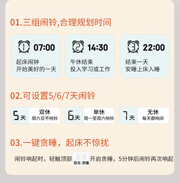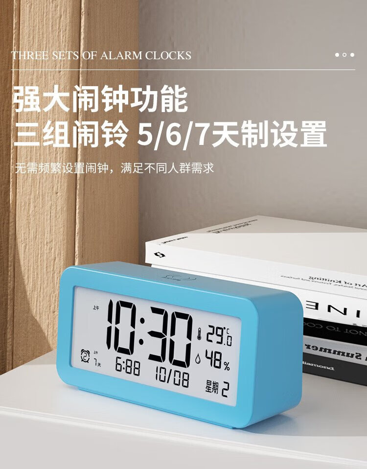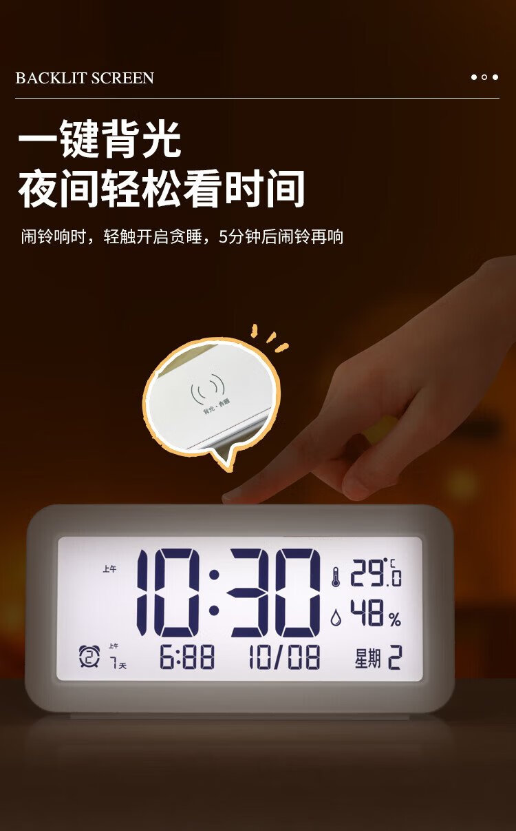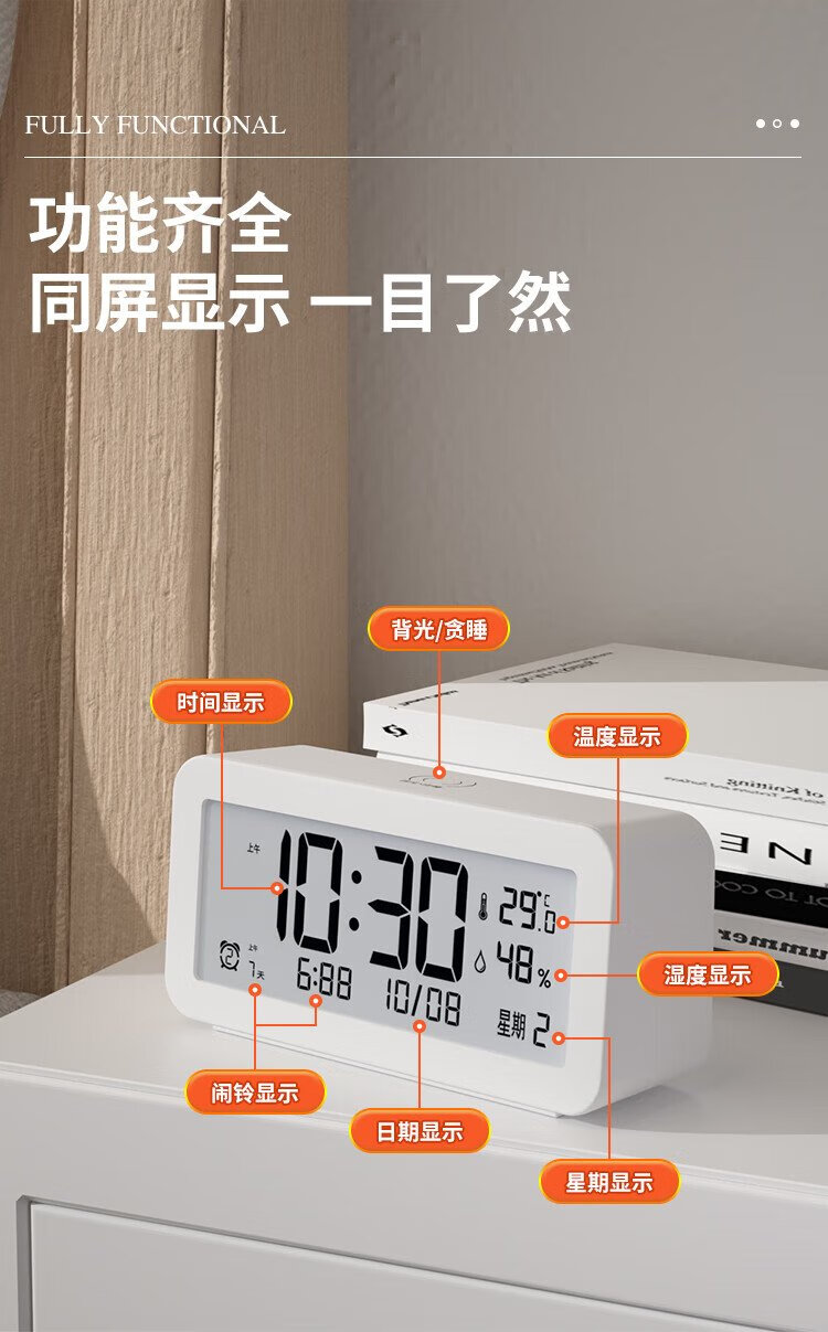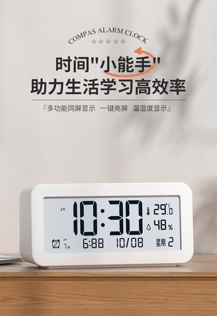 Compas electronic alarm clock multifunctional student special wake-up artifact electronic clock student and children alarm clock YQ2301 white