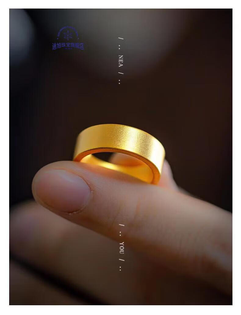 Fat Donglai's same style gold-plated silver ring plain ring ring for men safe and sound ancient method wide face golden female couple ring 7 mm wide face single No. 9 equal to Hong Kong number 18-20