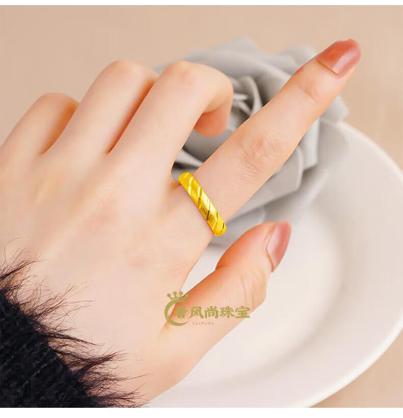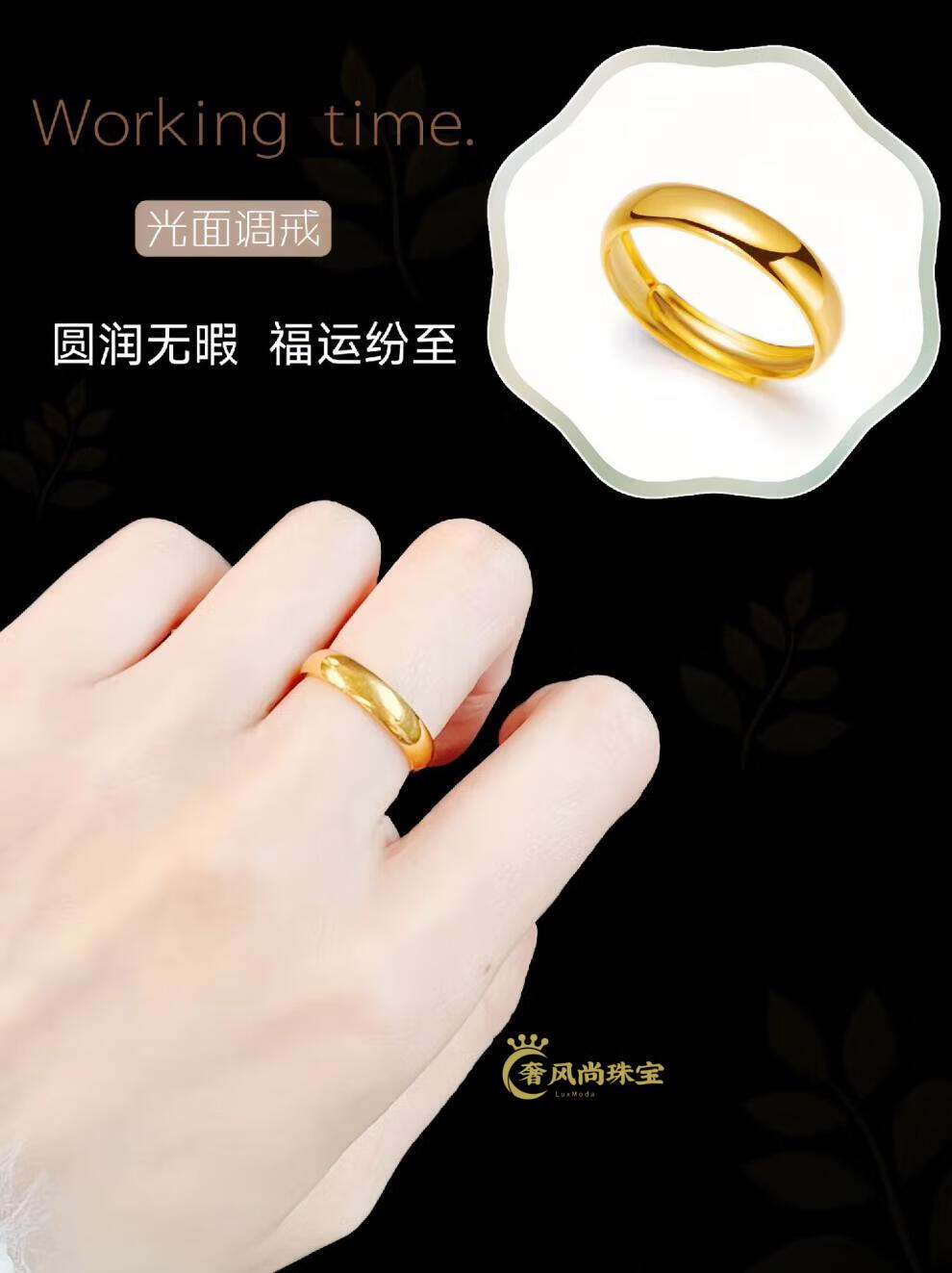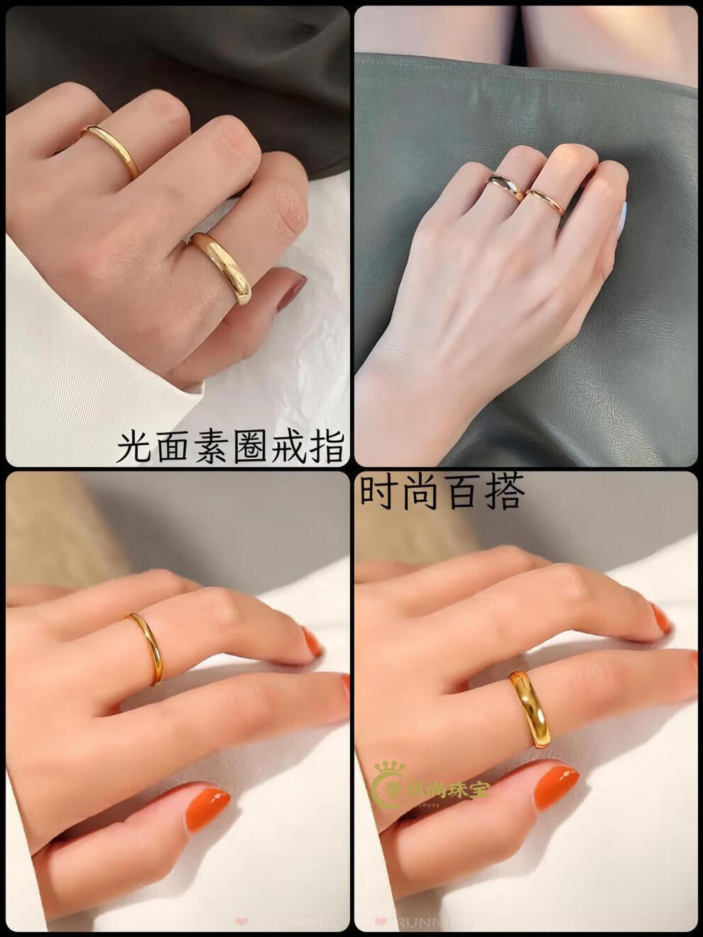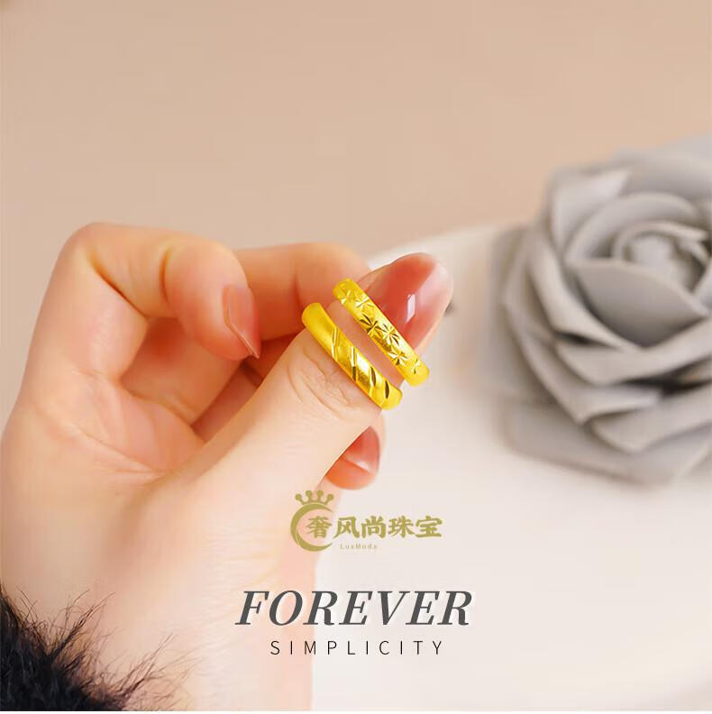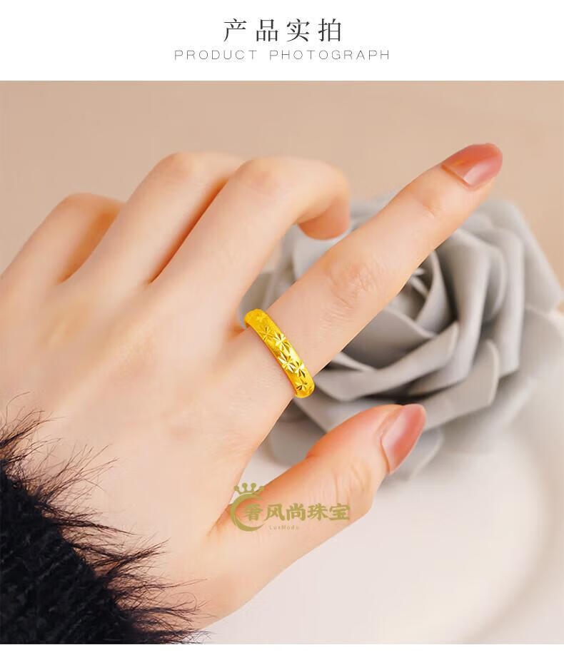 Fat Donglai same style 18k gold ring men's gold store same style gold women's ring live mouth 9999 gold couple glossy meteor shower ring (buy one + one)