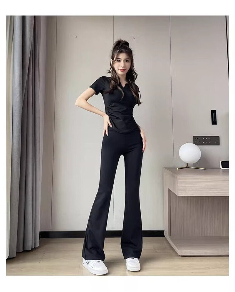 Cote du Lan brand 2024 summer professional yoga wear Pilates training wear with chest pad quick-drying breathable sports suit for women black top + black trousers M