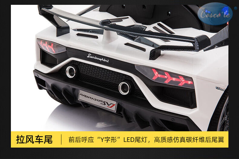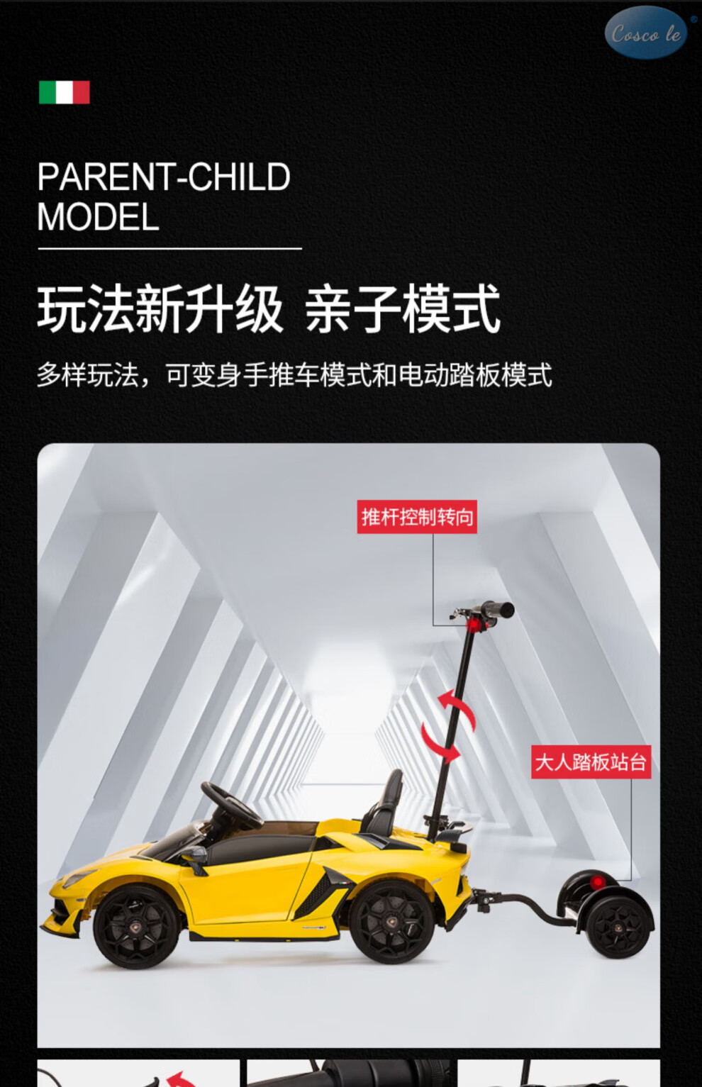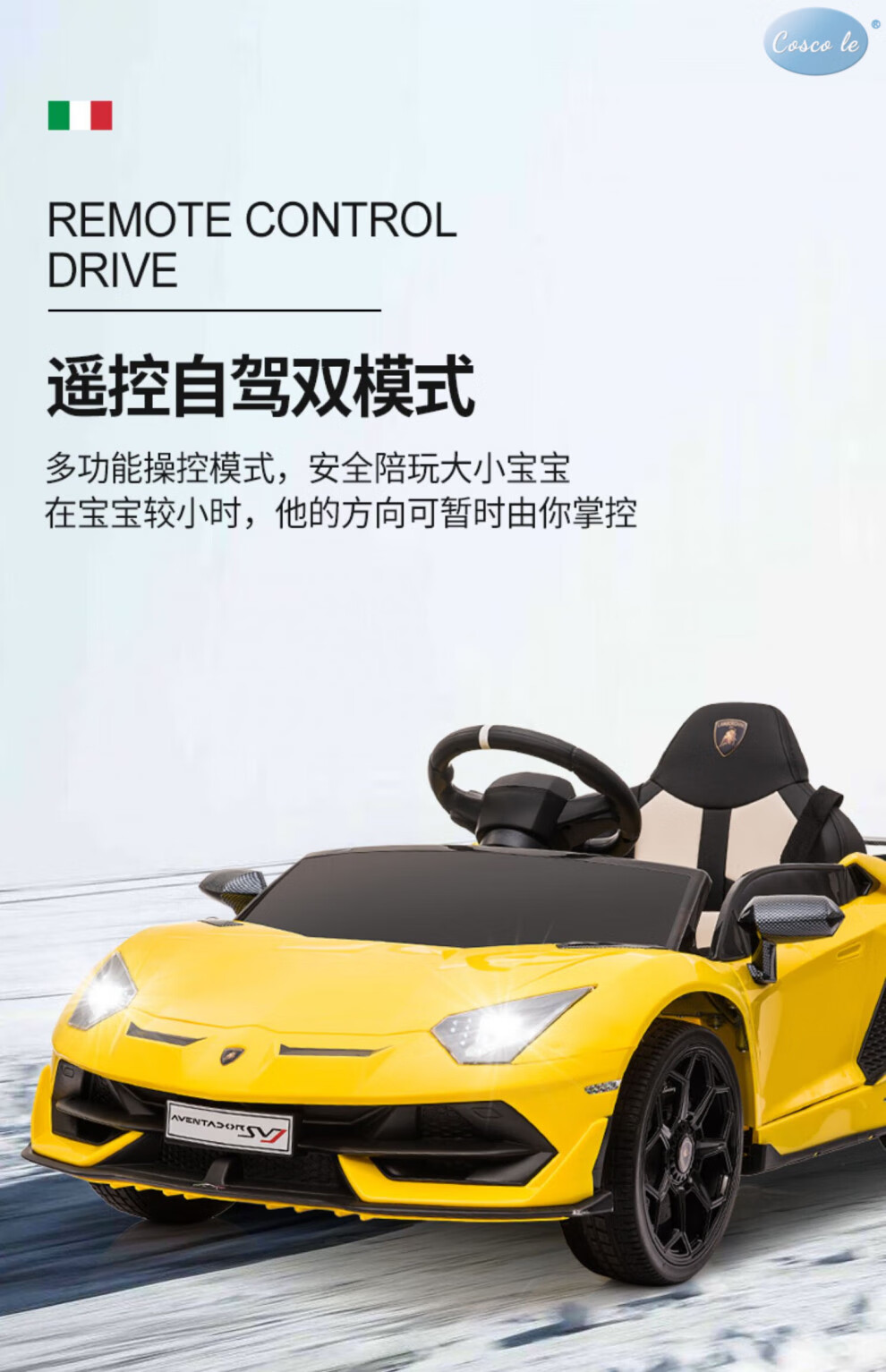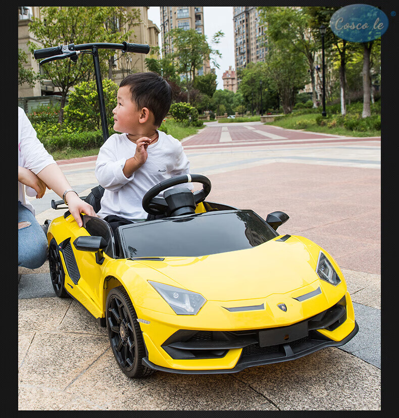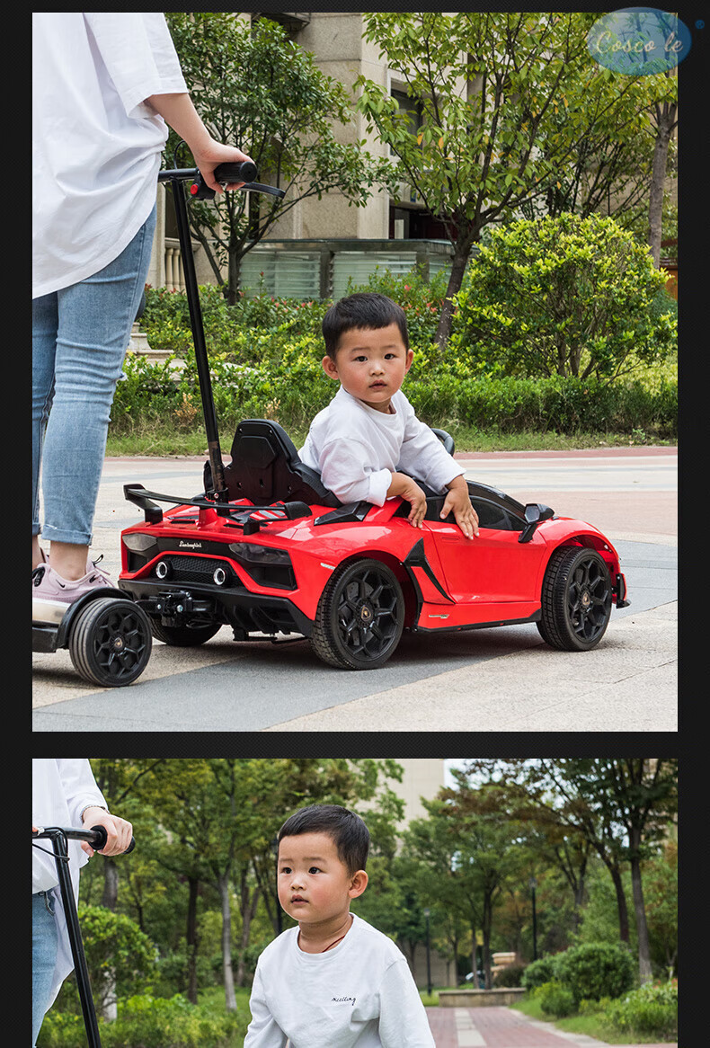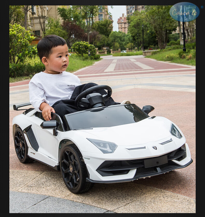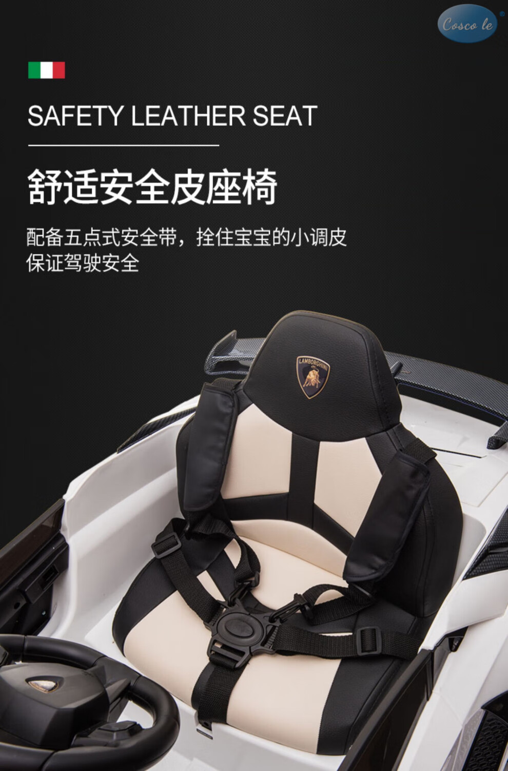 COSCO JUVENI LE children's electric car Lamborghini parent-child car four-wheeled, can stand, adults can sit on it remotely, give baby a birthday gift, white, super power + parent-child interactive pedal