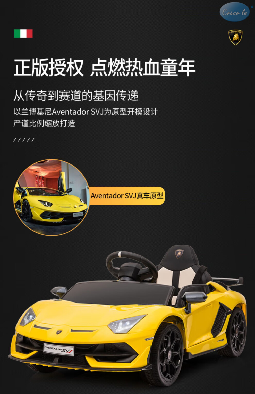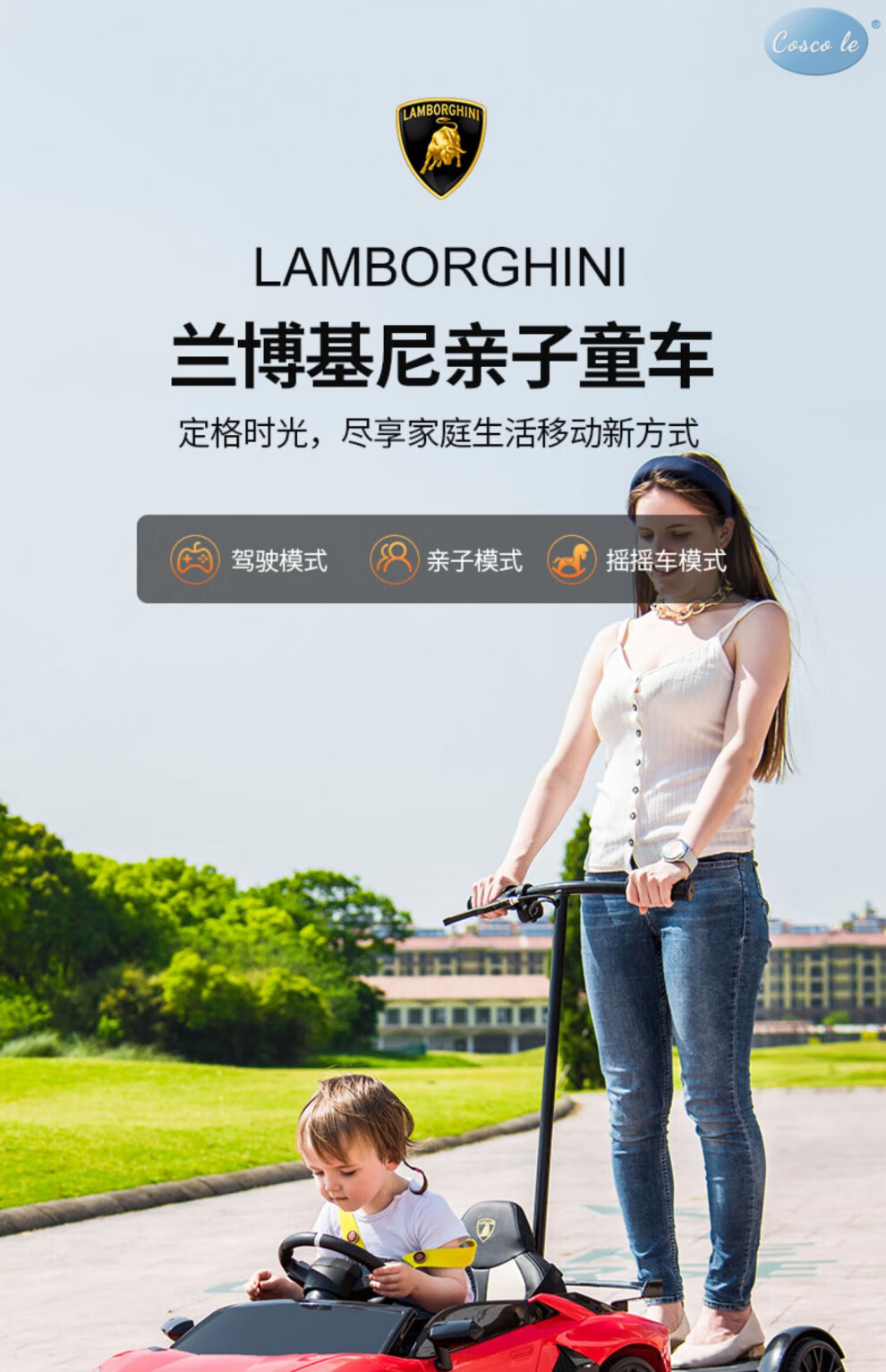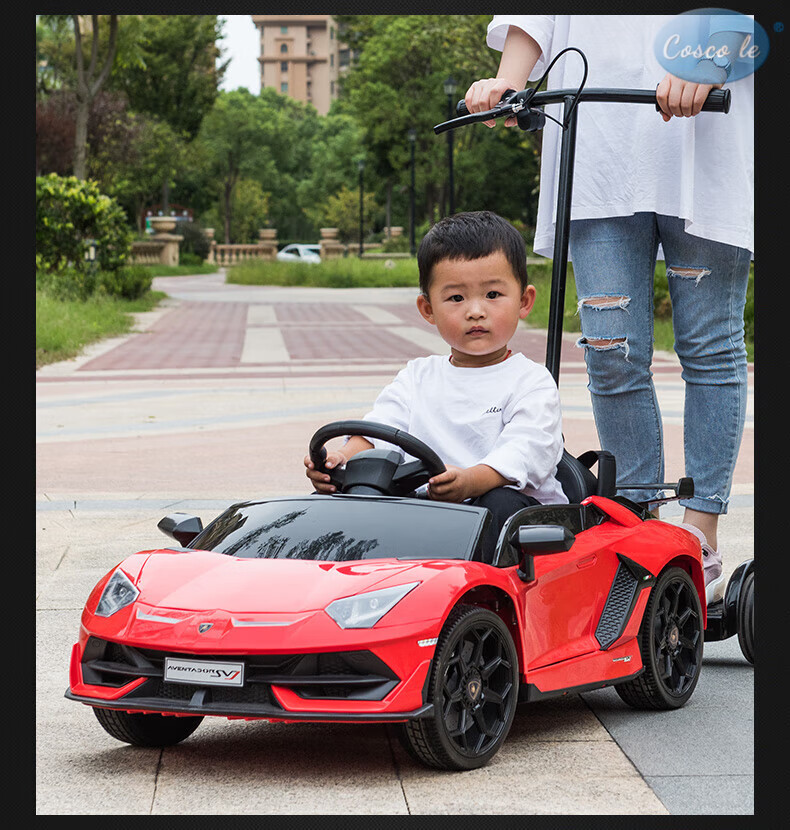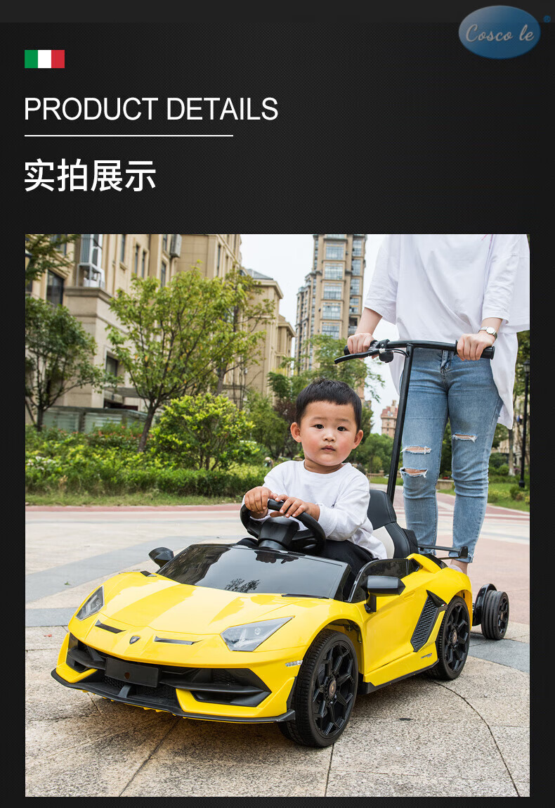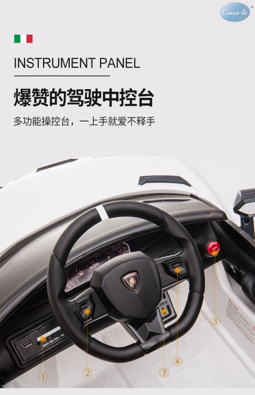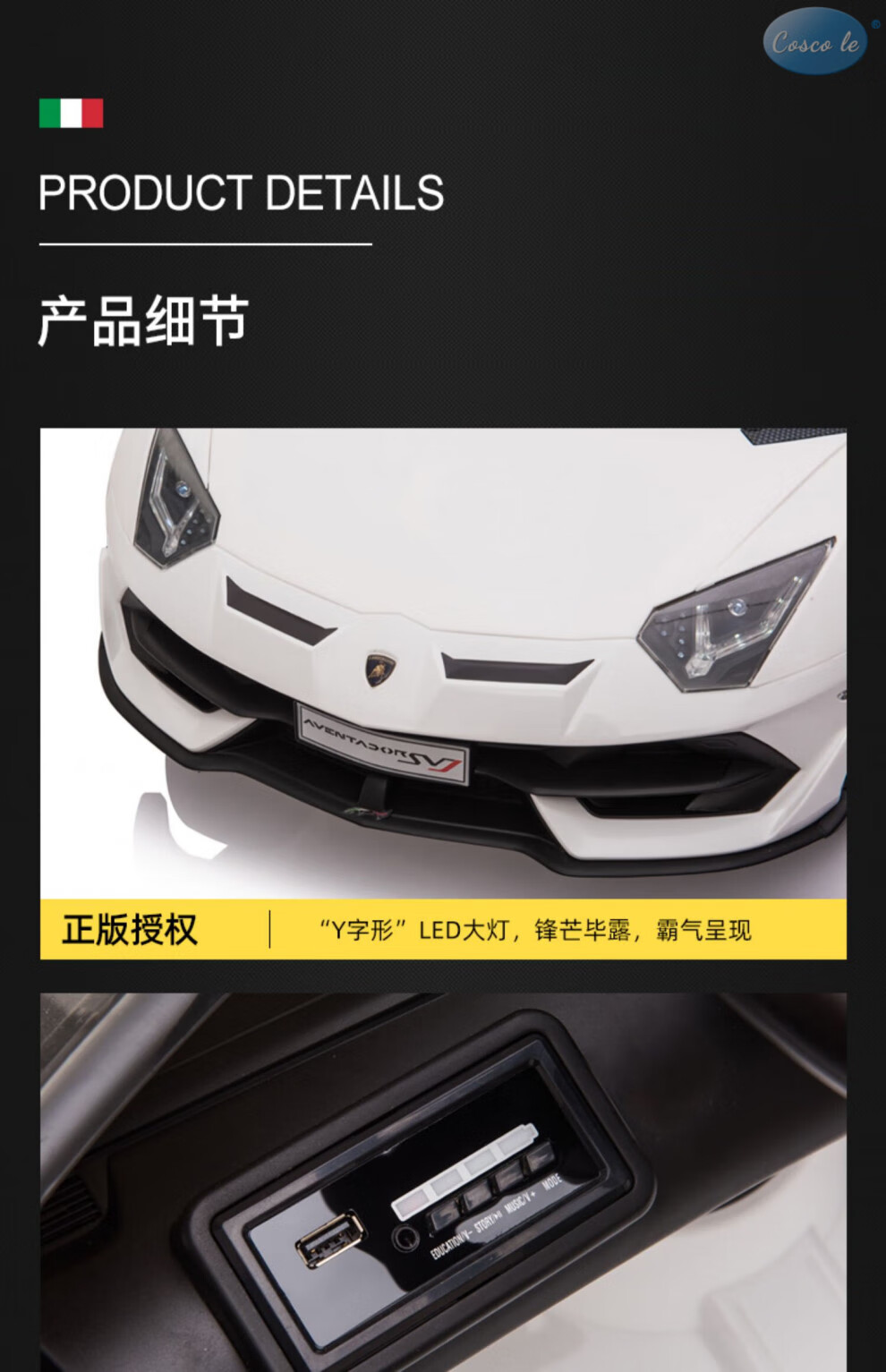 COSCO JUVENI LE children's electric car Lamborghini parent-child car four-wheeled, can stand, adults can sit on it remotely, give baby a birthday gift, white, super power + parent-child interactive pedal