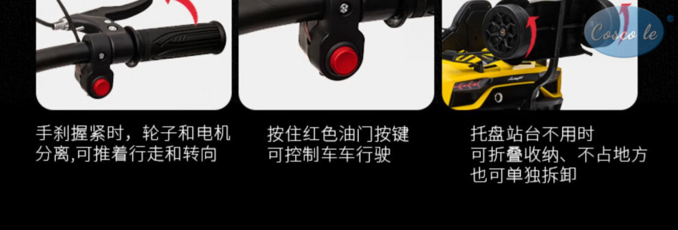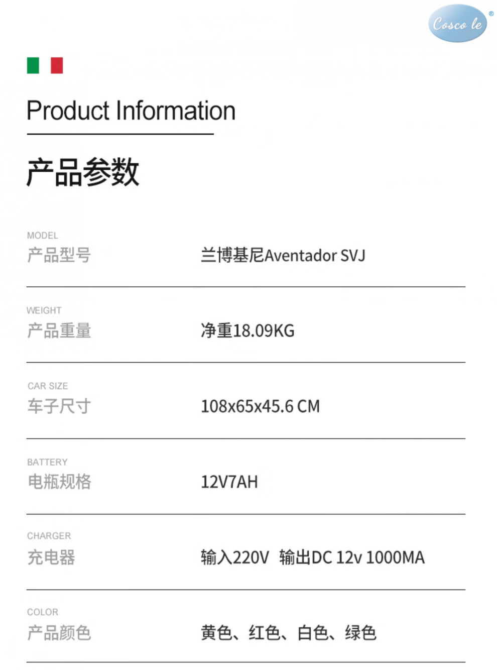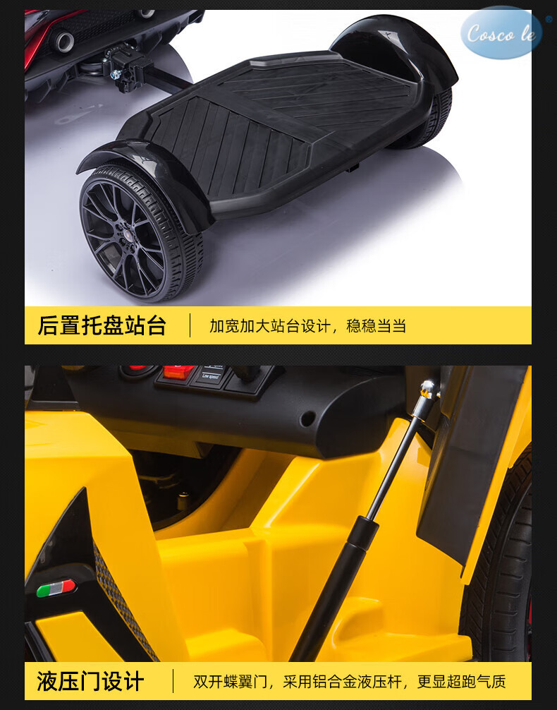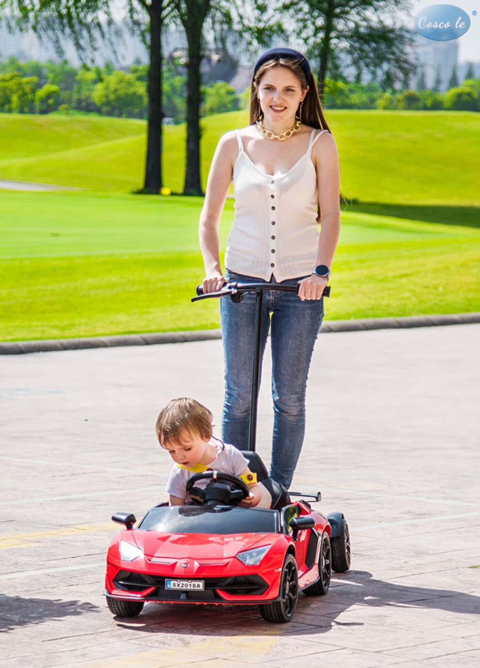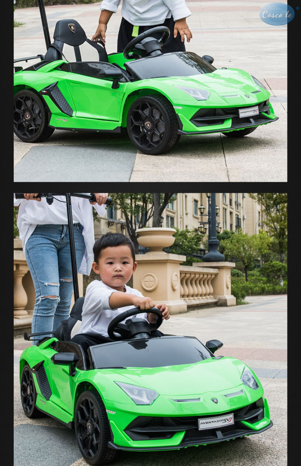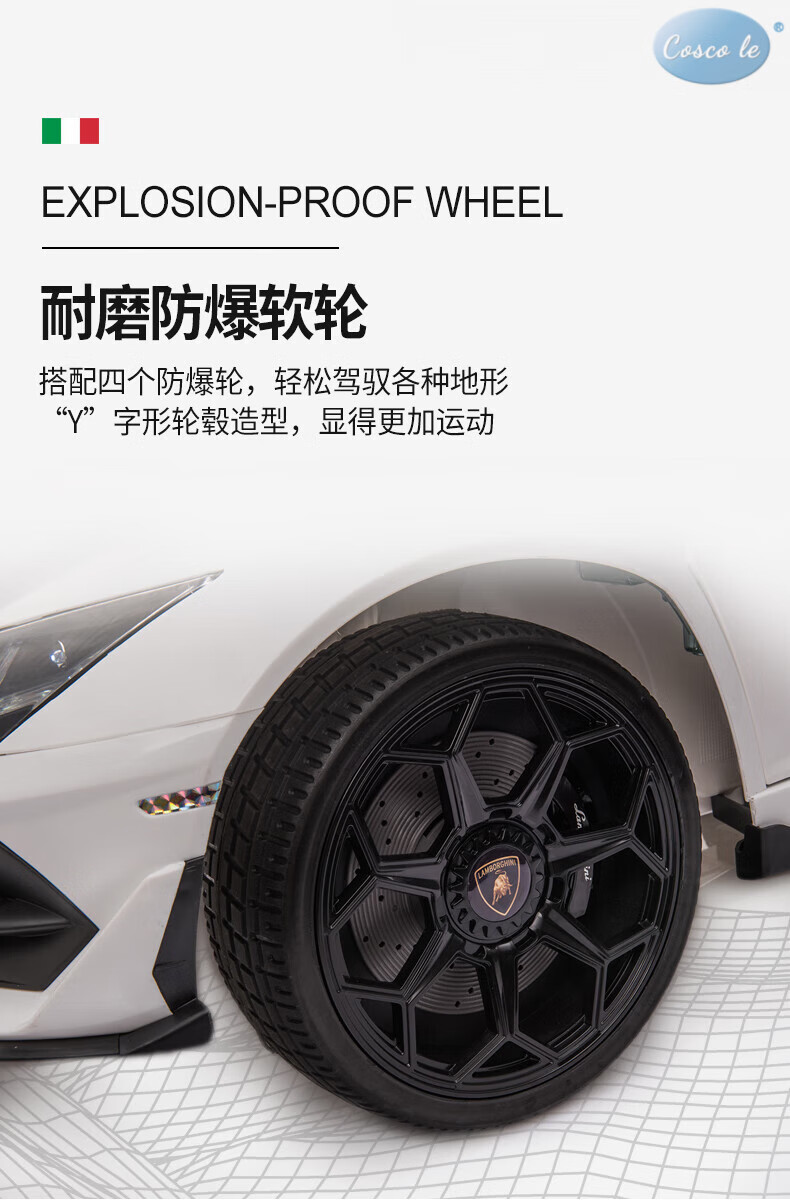 COSCO JUVENI LE children's electric car Lamborghini parent-child car four-wheeled, can stand, adults can sit on it remotely, give baby a birthday gift, white, super power + parent-child interactive pedal