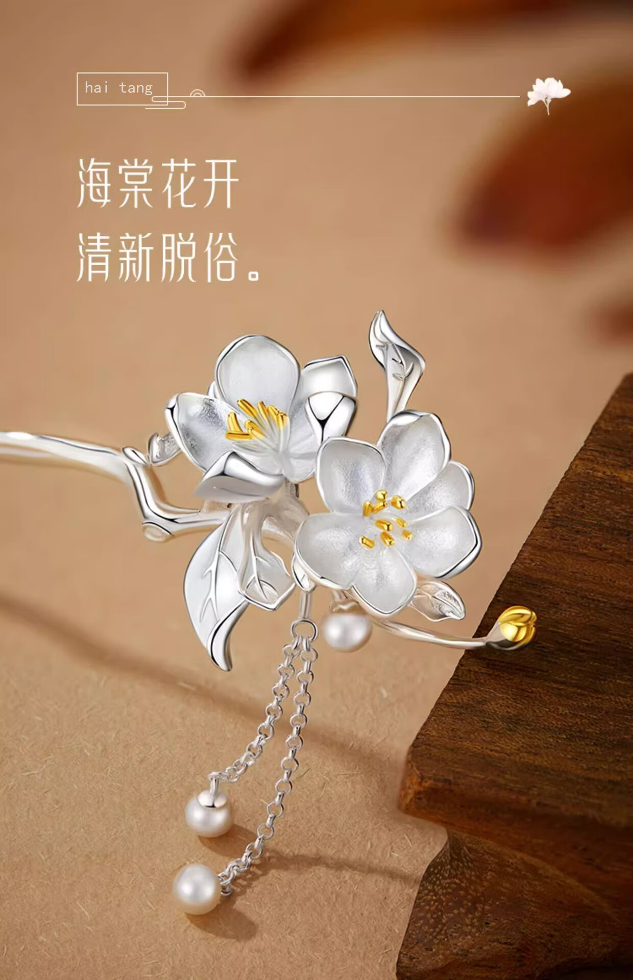 Meng Junchen New Chinese Style Begonia Flower Hairpin Women's Ancient Style Hairpin High-end Hanfu Horse Face Skirt Hair Accessory Gift for Girlfriend Begonia Spring Hairpin
