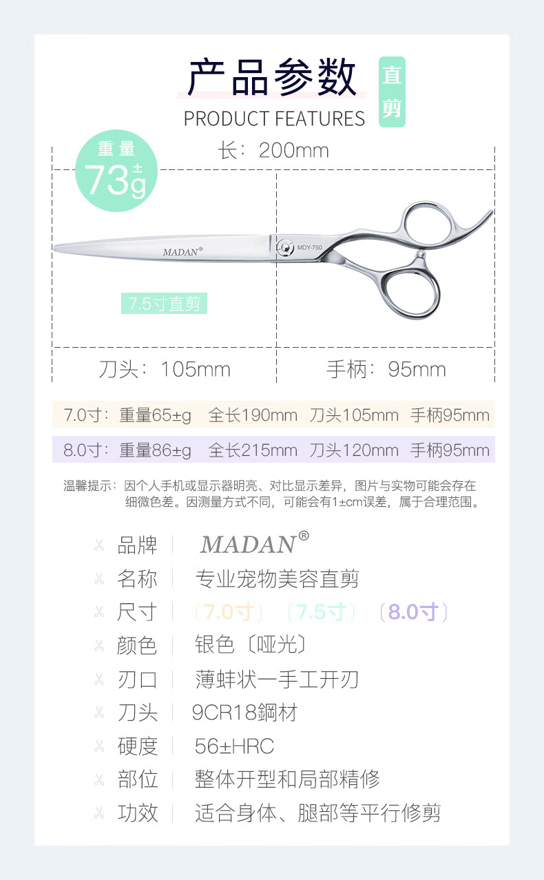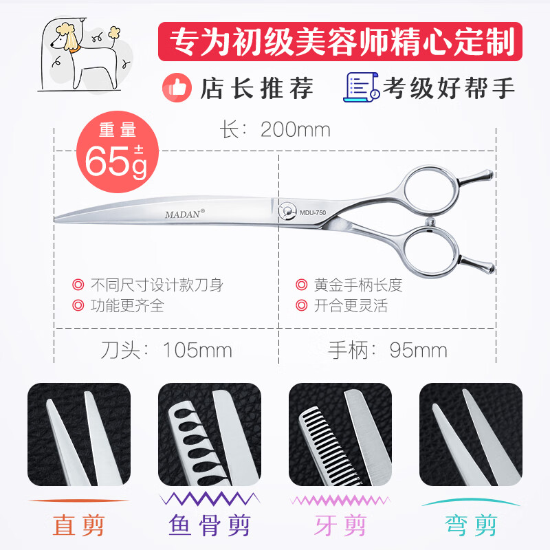 MADAN Professional Pet Grooming Scissors Teddy Dog Pet Shop Special Novice Advanced Scissors Package Starter Five-piece Set