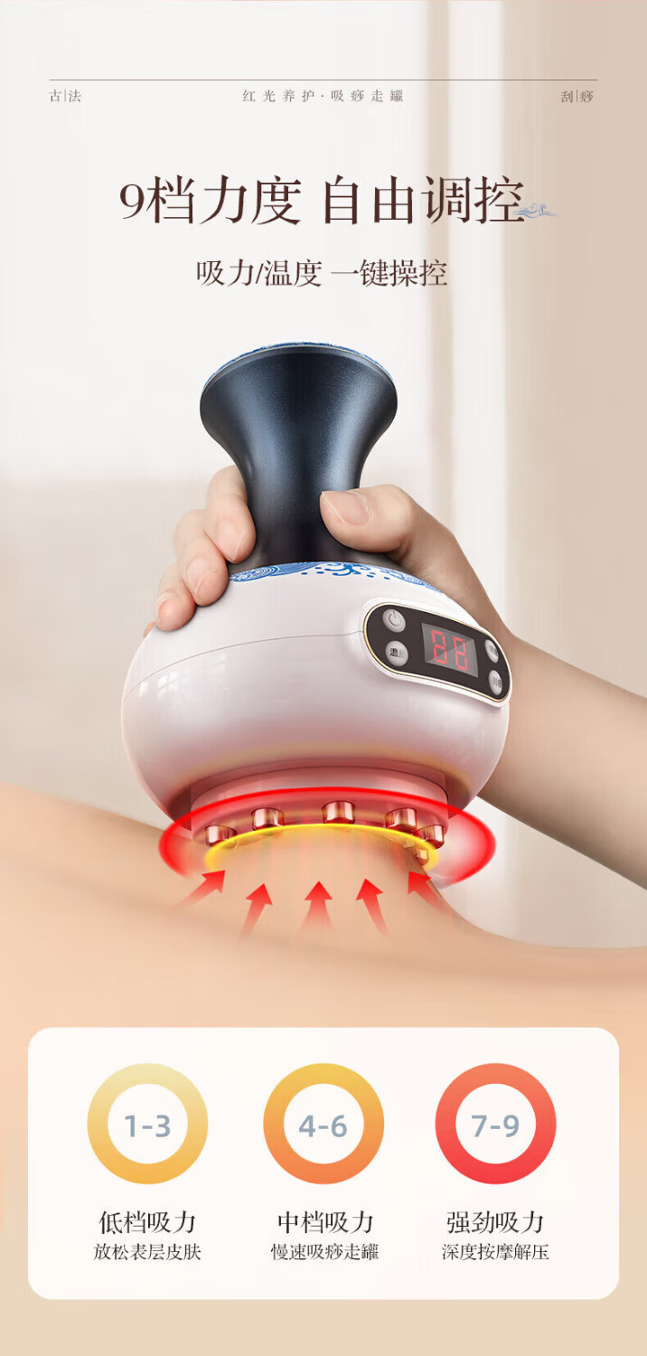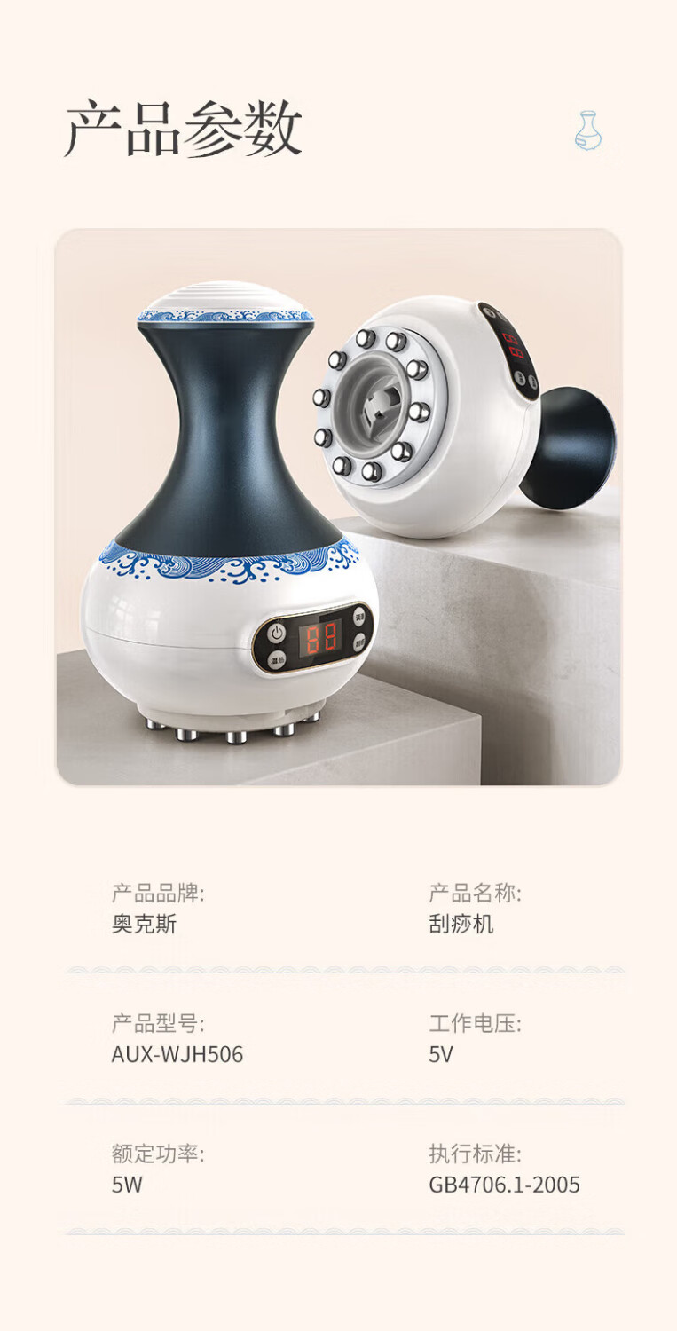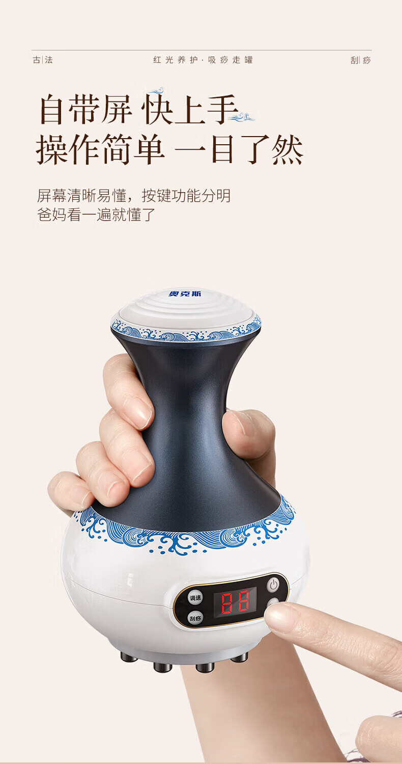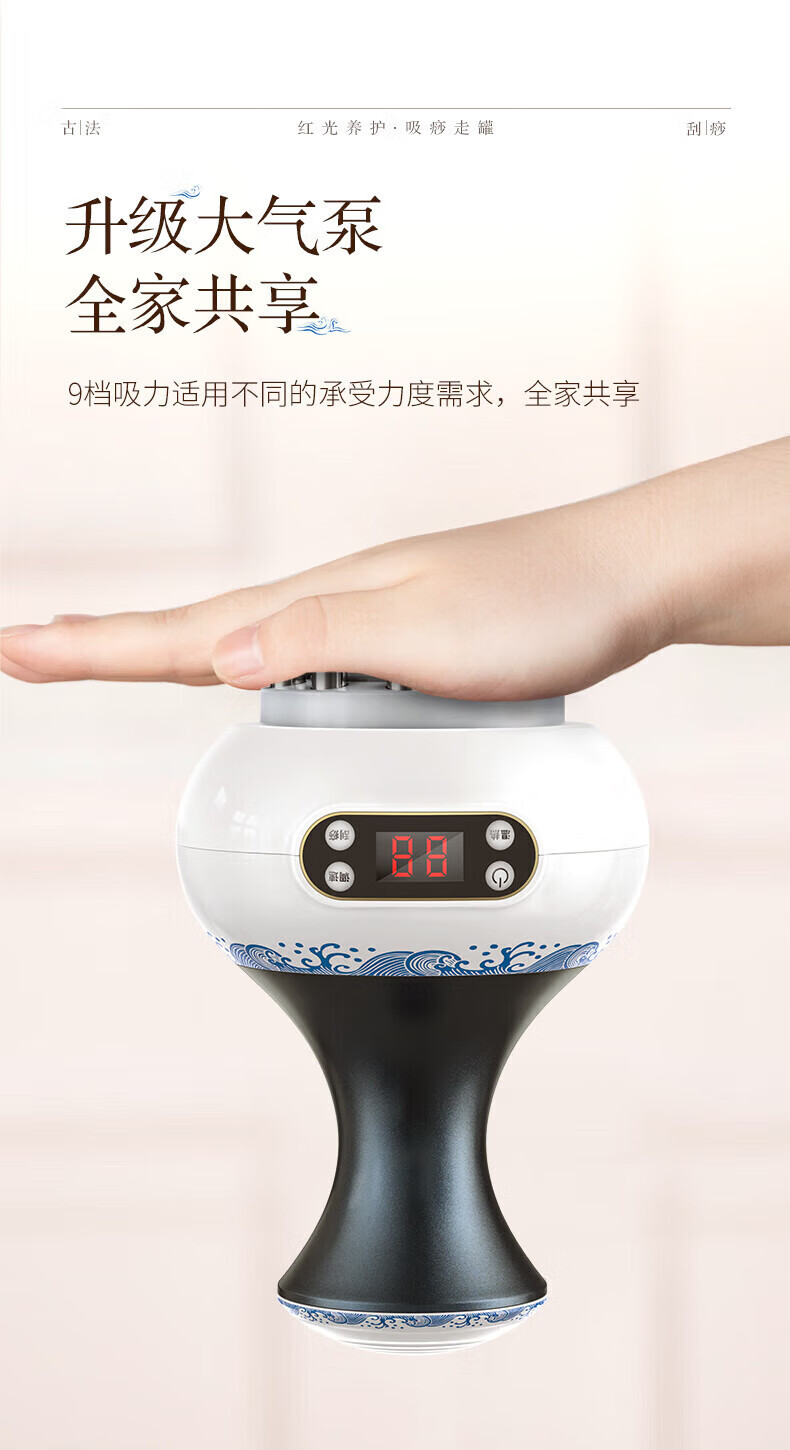 Oaks Gua Sha Instrument Electric Gua Sha Instrument Cupping Device Home Gua Sha Artifact Gua Sha Brush Negative Pressure Cupping Instrument Dredges Meridians and Dehumidifies Whole Body Practical New Year Gift for Parents Blue and White Porcelain 9-speed Adjustment + Top Ten Rigid Magnetic Heads + Deep Magnetic Wave Care