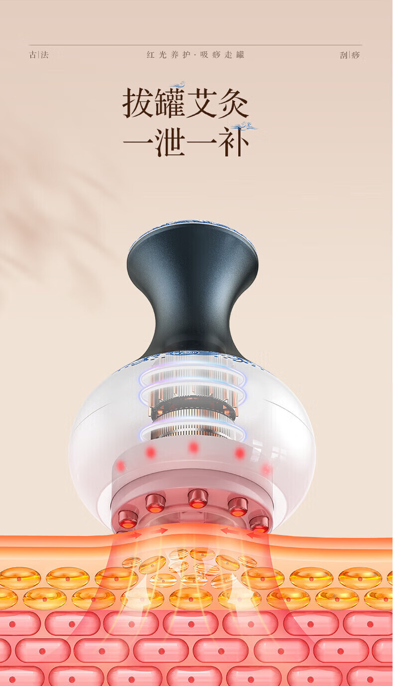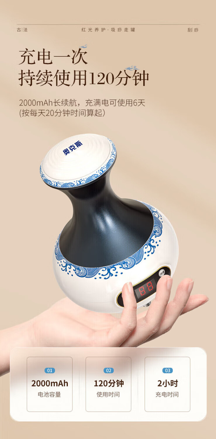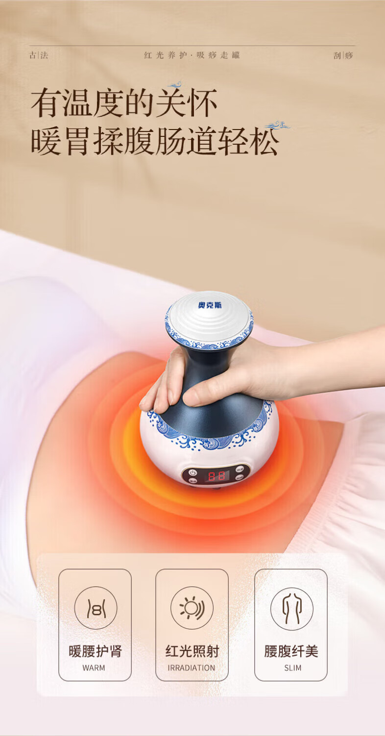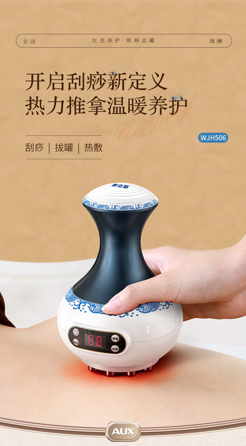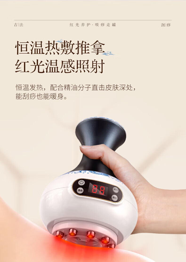 Oaks Gua Sha Instrument Electric Gua Sha Instrument Cupping Device Home Gua Sha Artifact Gua Sha Brush Negative Pressure Cupping Instrument Dredges Meridians and Dehumidifies Whole Body Practical New Year Gift for Parents Blue and White Porcelain 9-speed Adjustment + Top Ten Rigid Magnetic Heads + Deep Magnetic Wave Care