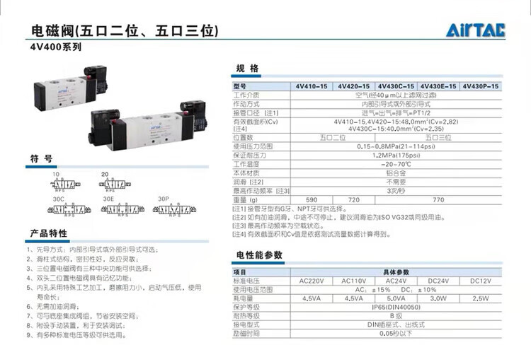 AIRTAC two-position five-way solenoid valve 4V110/4V210-08/4V310-08/4V310-10/4V410-15 4V210-08A voltage AC220V